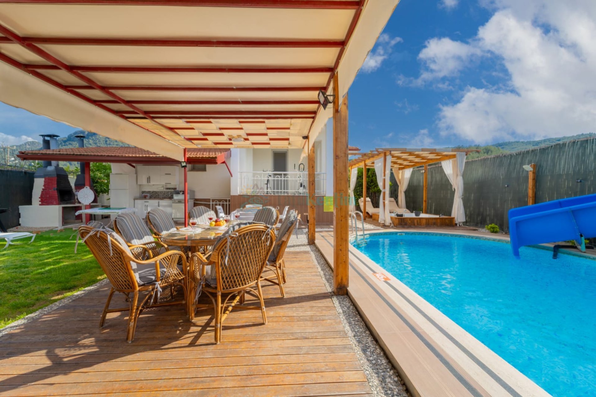 Villa Kızılbella 1, Fethiye Yeşil Üzümlü Bölgesinde, Özel Havuzlu, Korunaklı, 6 Kişilik Kiralık Tatil Villası