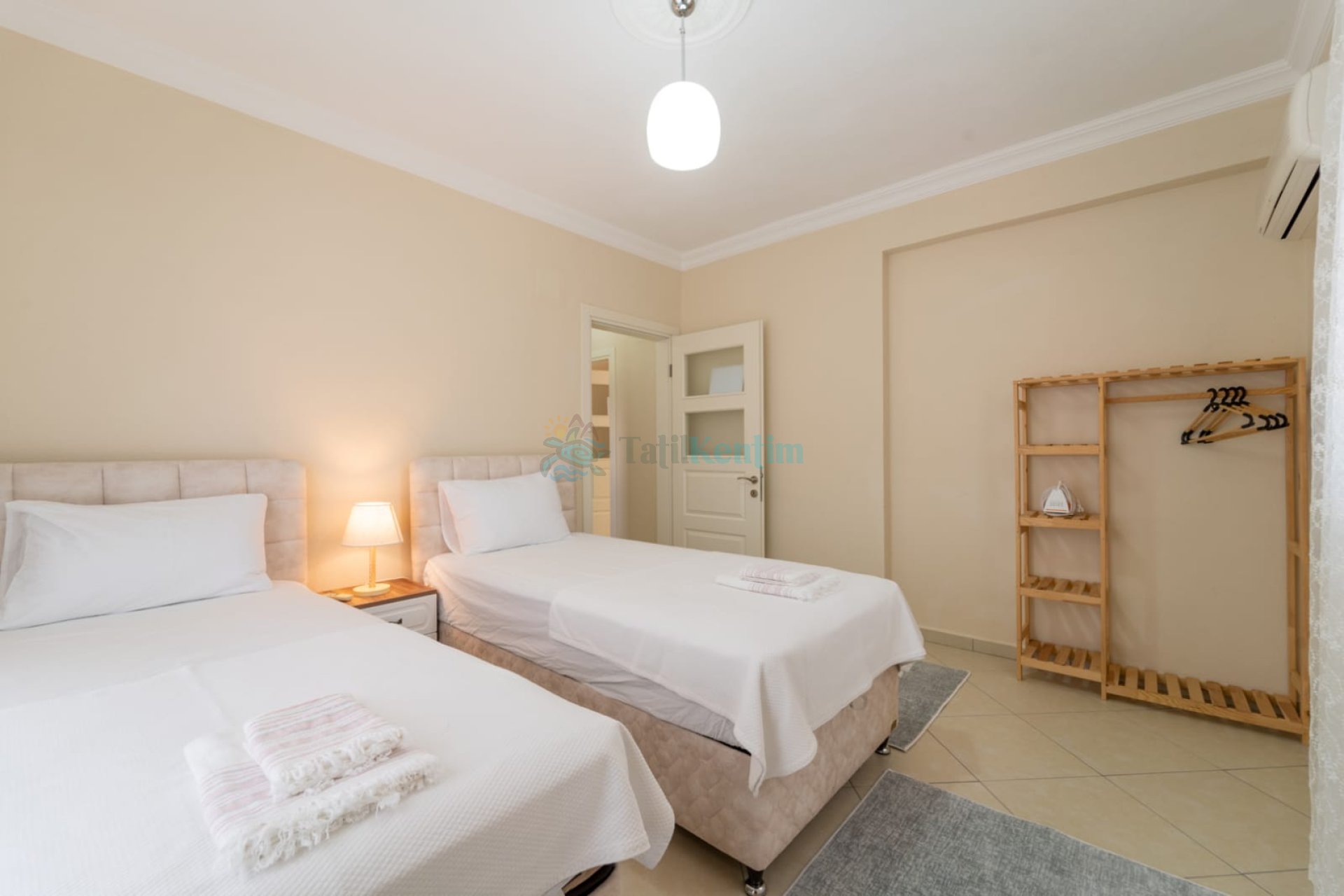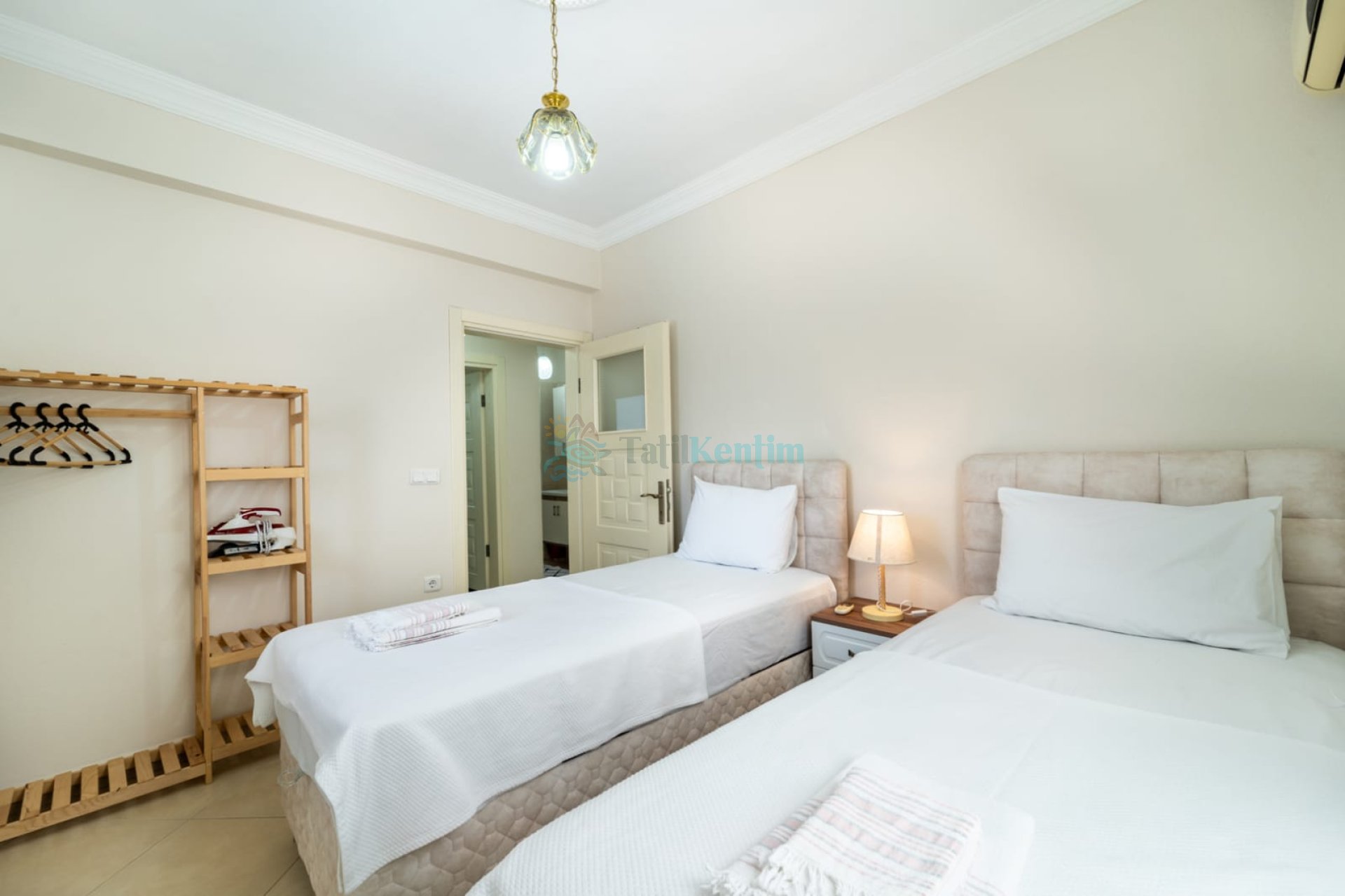Bu yatak odası içerinde ise 2 adet tek kişilik yatak, klima, elbise dolabı, komodin, makyaj masası, banyo, ve tuvalet bulunmaktadır.