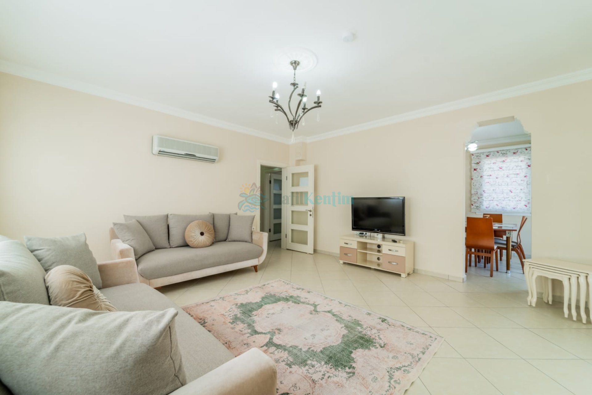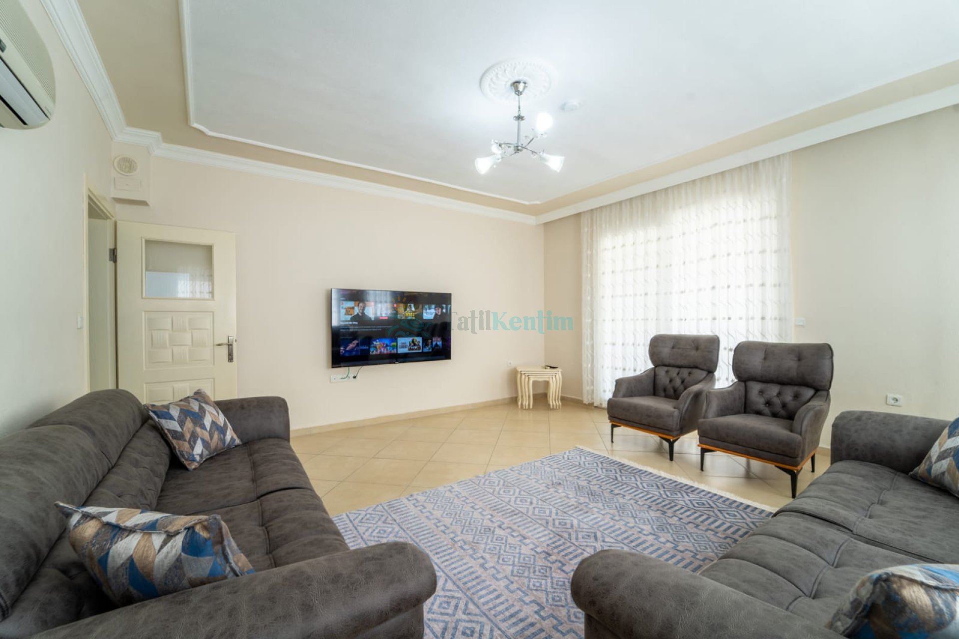 Villamızın salonu içerisinde, koltuk takımı, orta sehpa, TV, TV ünitesi, klima, uydu alıcısı yer almaktadır.