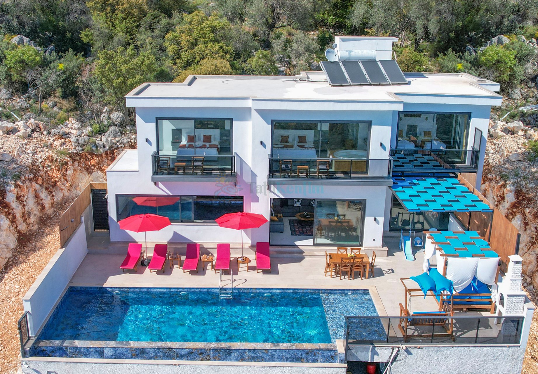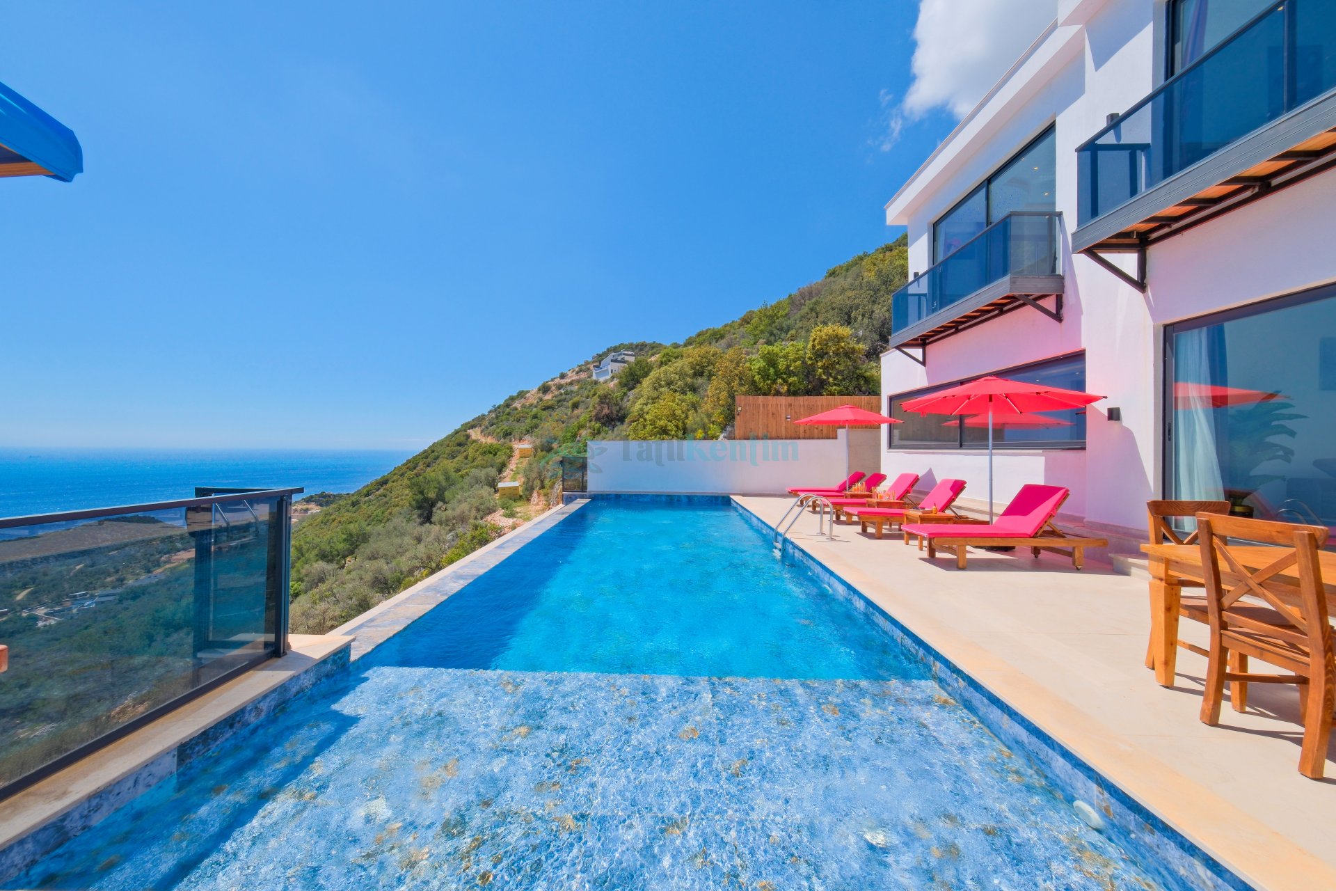Kaş Kalkan Bölgesinde 10 Kişilik Konaklama Kapasitesine Sahip Sonsuzluk Havuzuna Sahip Kiralık Tatil Villası