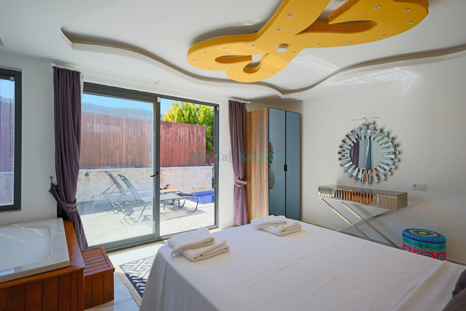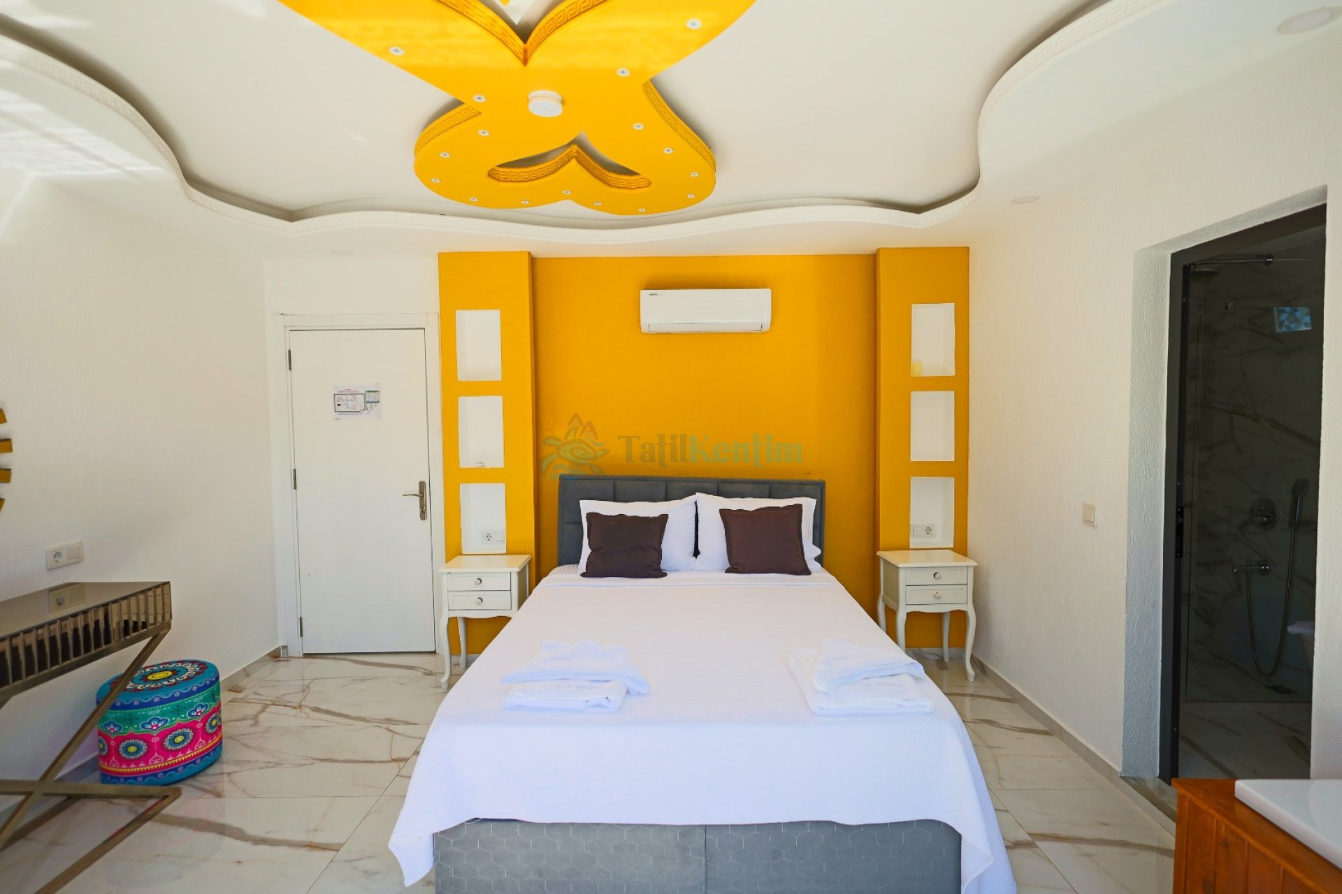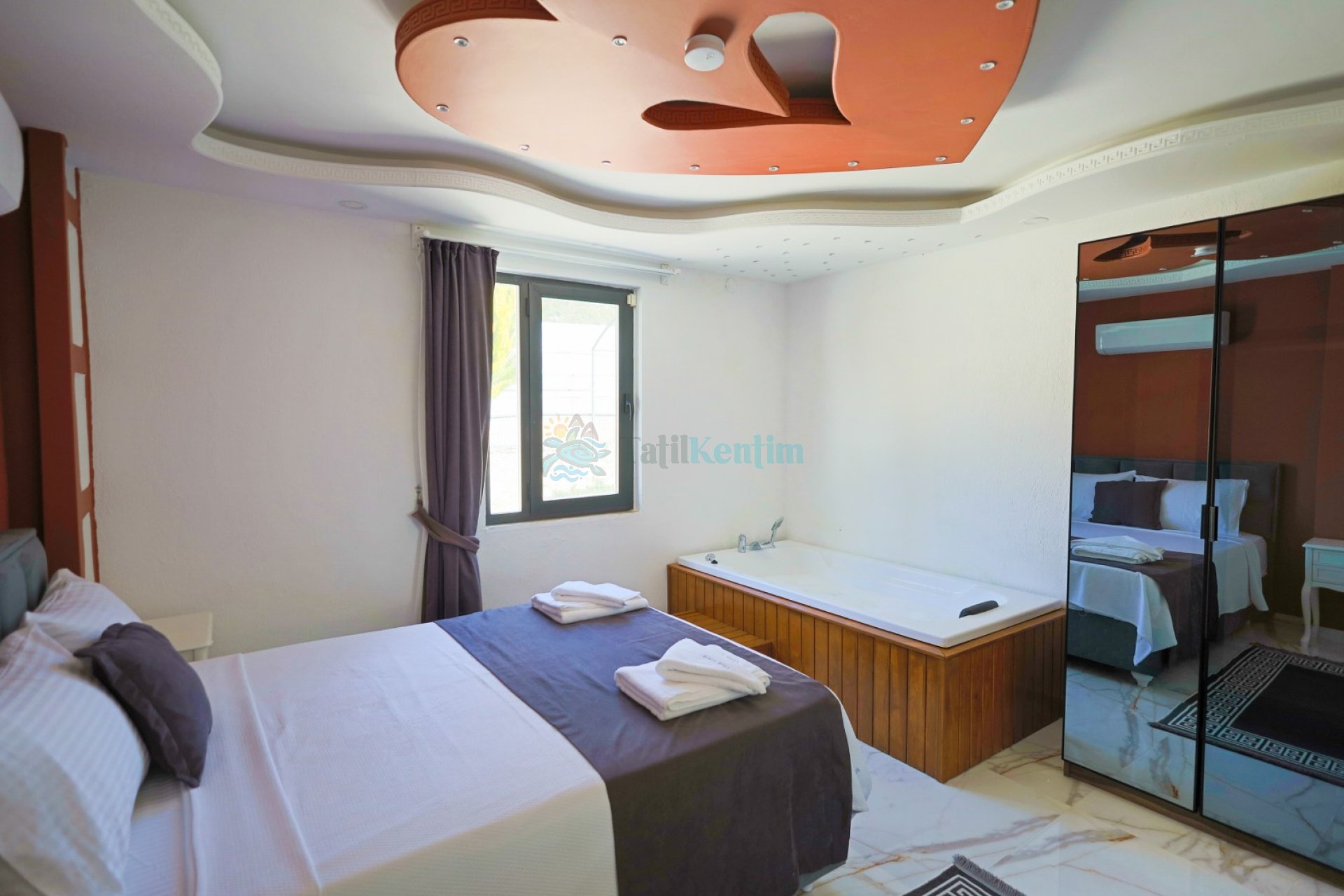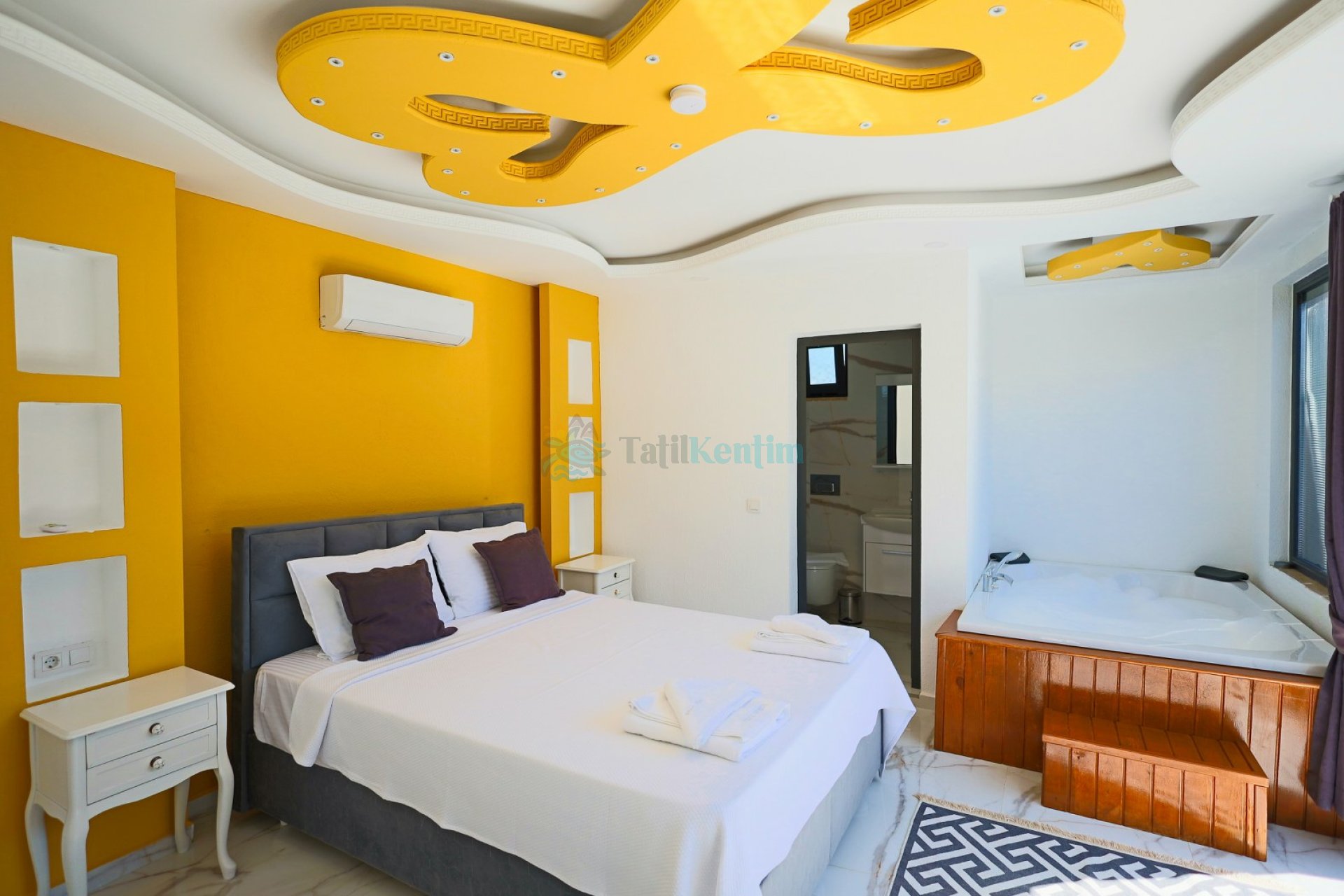 2.Yatak Odası: 1 Adet çift kişilik yatak, komodin, jakuzi, elbise dolabı, klima, makyaj masası, banyo ve tuvalet bulunmaktadır.
