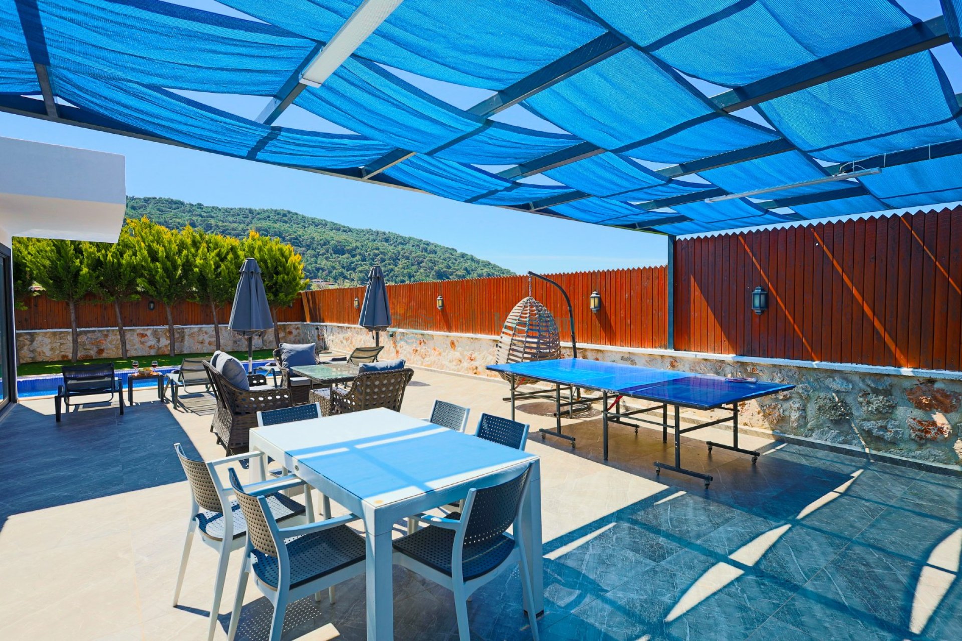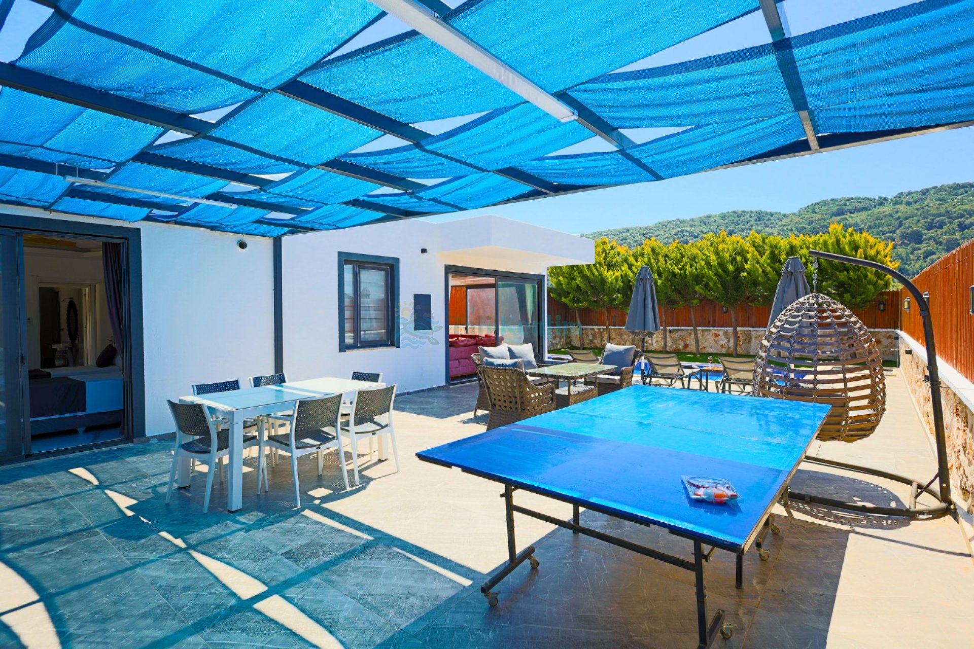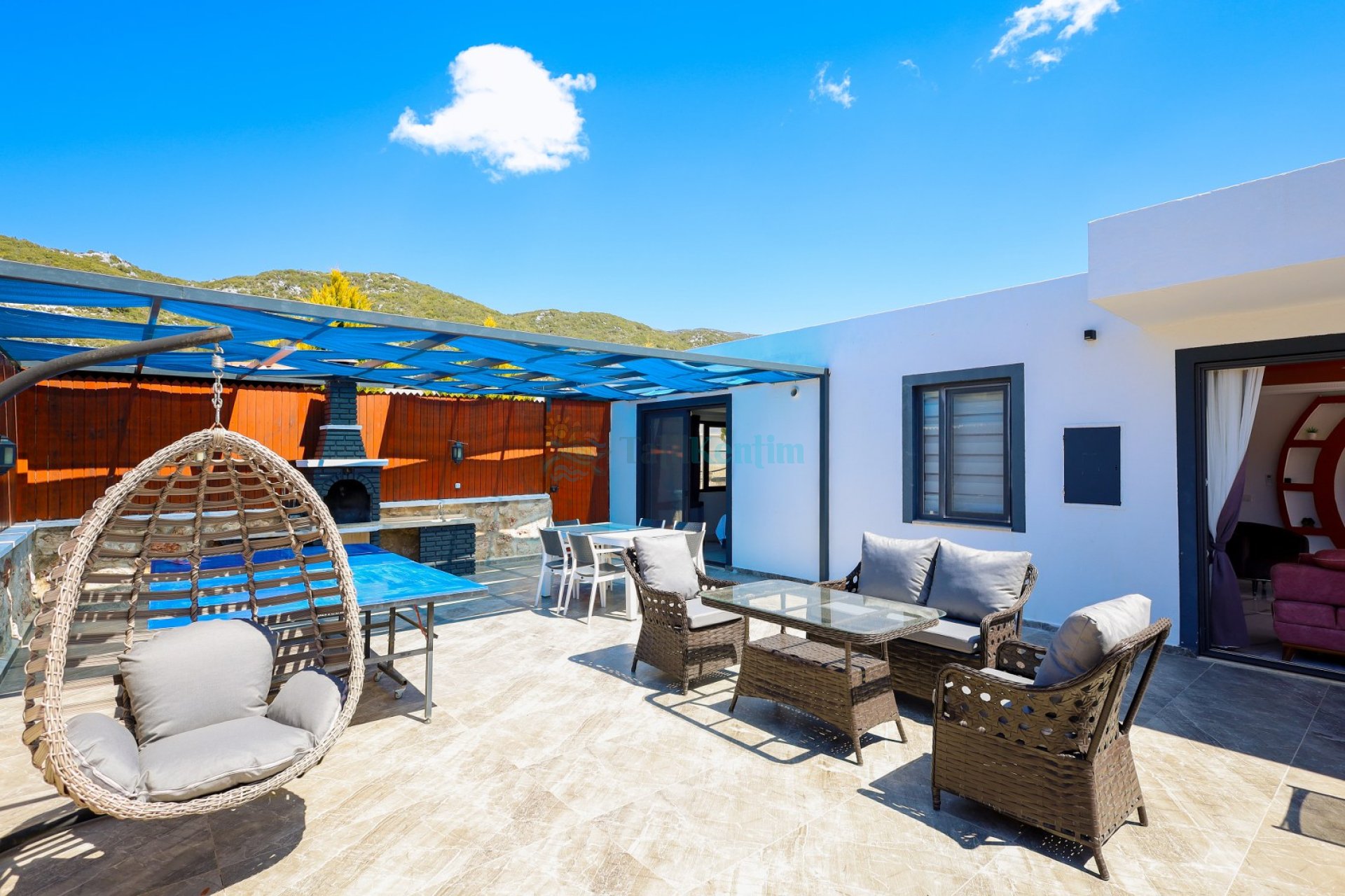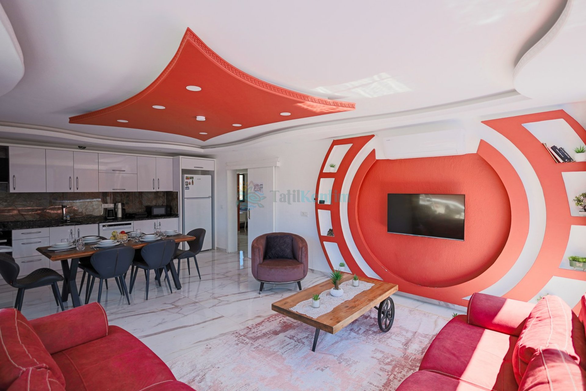 Salon: Oturma grubu, televizyon, klima ve havuz terasına çıkış bulunmaktadır.