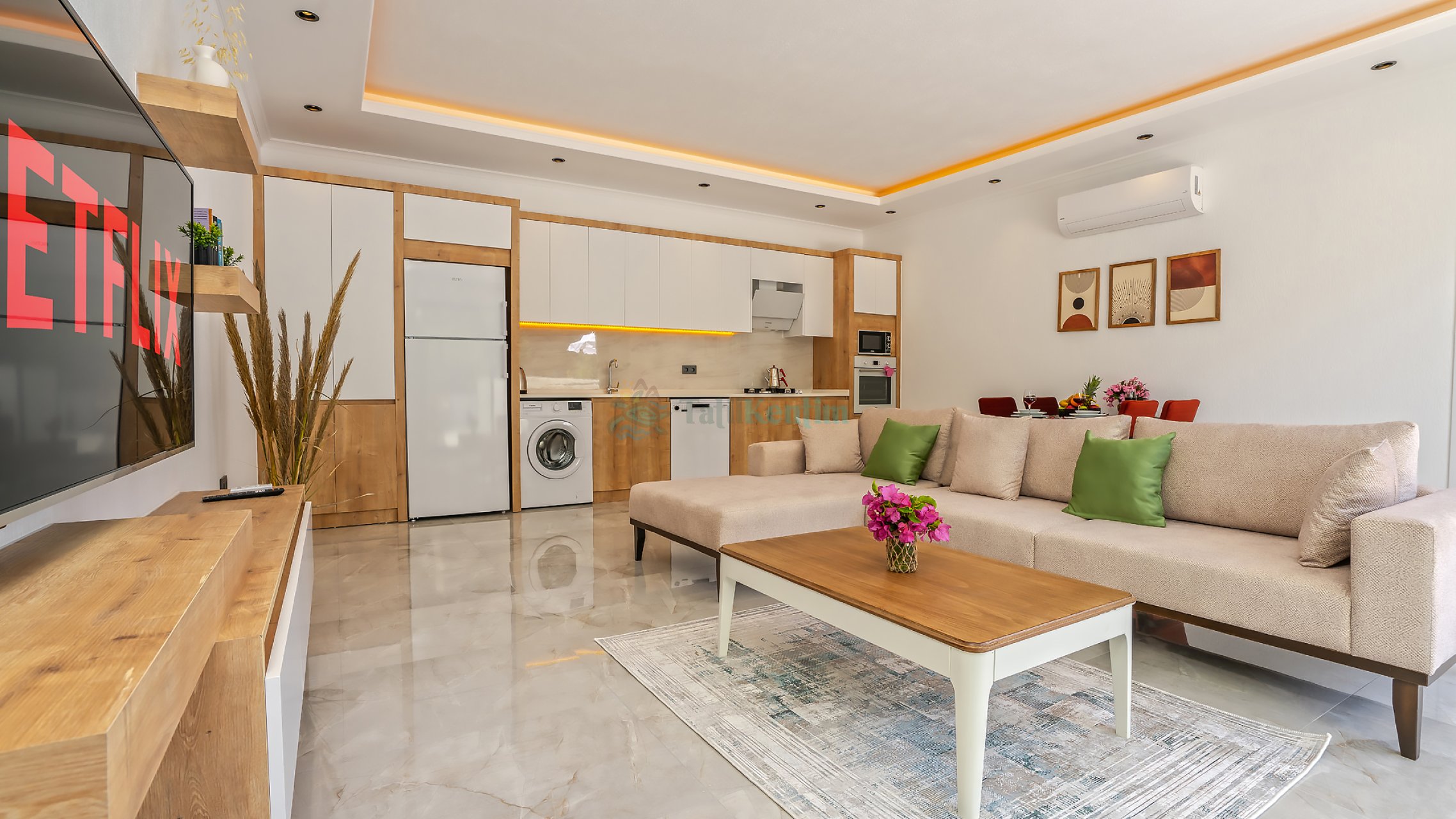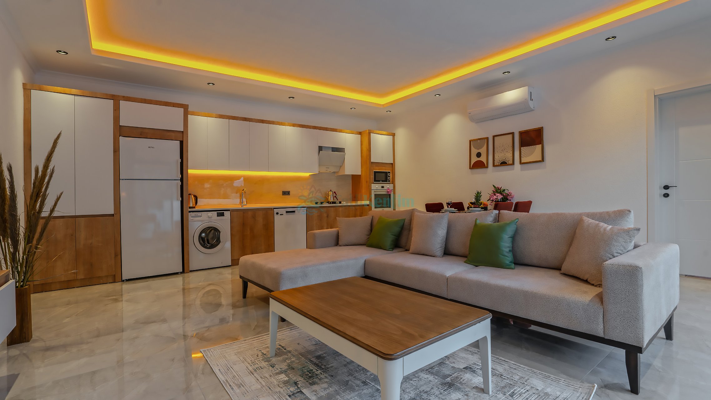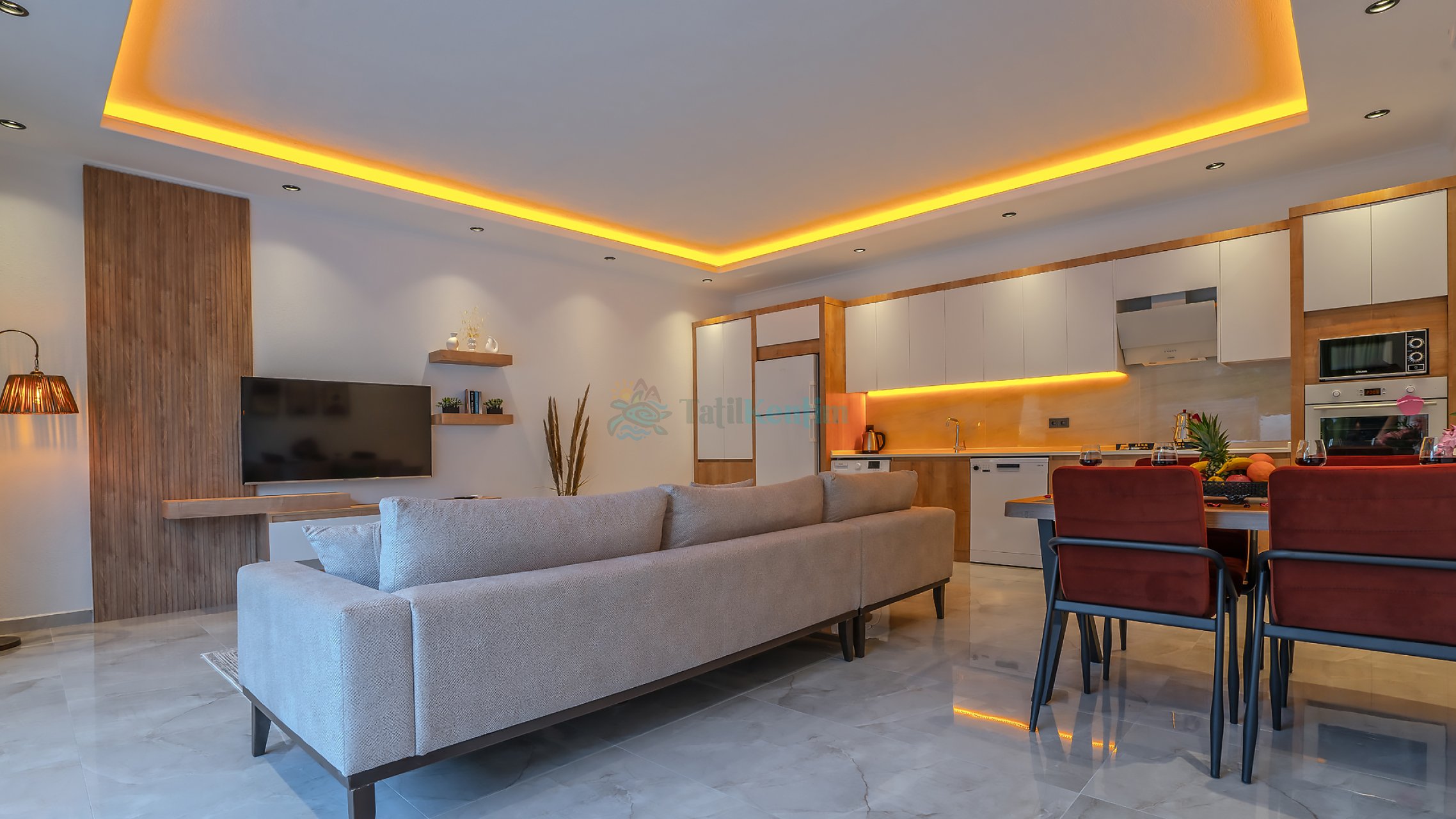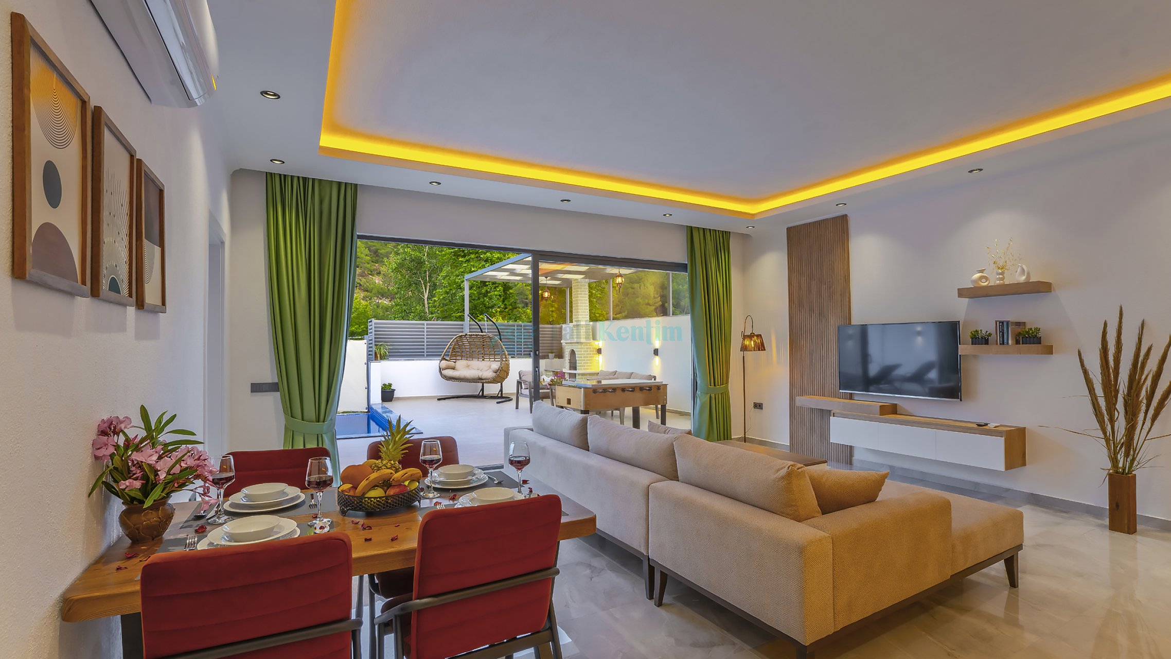 Villamızın salonu içerisinde, koltuk takımı, orta sehpa, TV, TV ünitesi, klima, uydu alıcısı yer almaktadır.