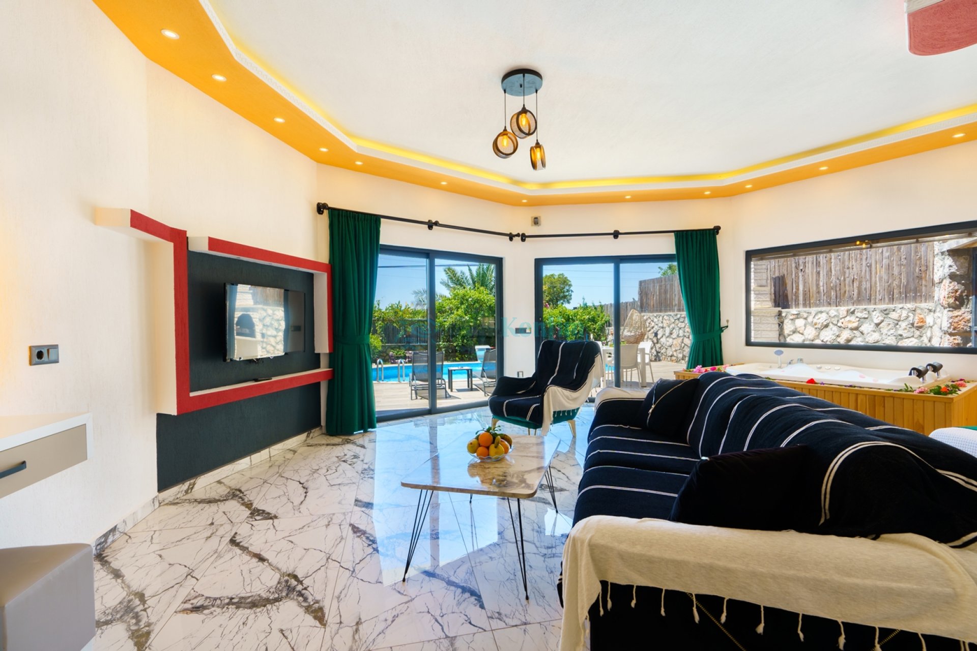 Villamızın salonu içerisinde, koltuk takımı, orta sehpa, TV, TV ünitesi, klima, uydu alıcısı yer almaktadır.