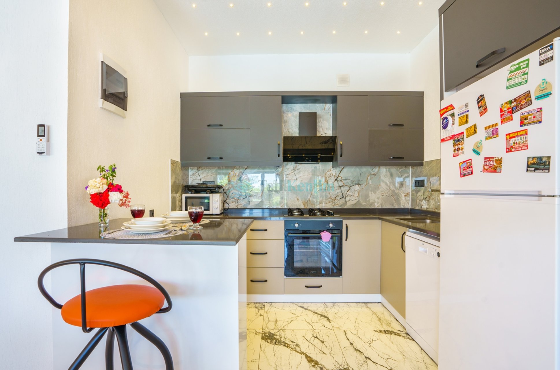 Amerikan mutfak içerisinde, buzdolabı, bulaşık makinası, çamaşır makinası, yemek masası, yemek takımı, ankastre fırın, tost makinası, ankastre ocak, çaydanlık, su ısıtıcısı, tava, tencere takımı ve gerekli olan tüm mutfak gereçleri yer almaktadır.