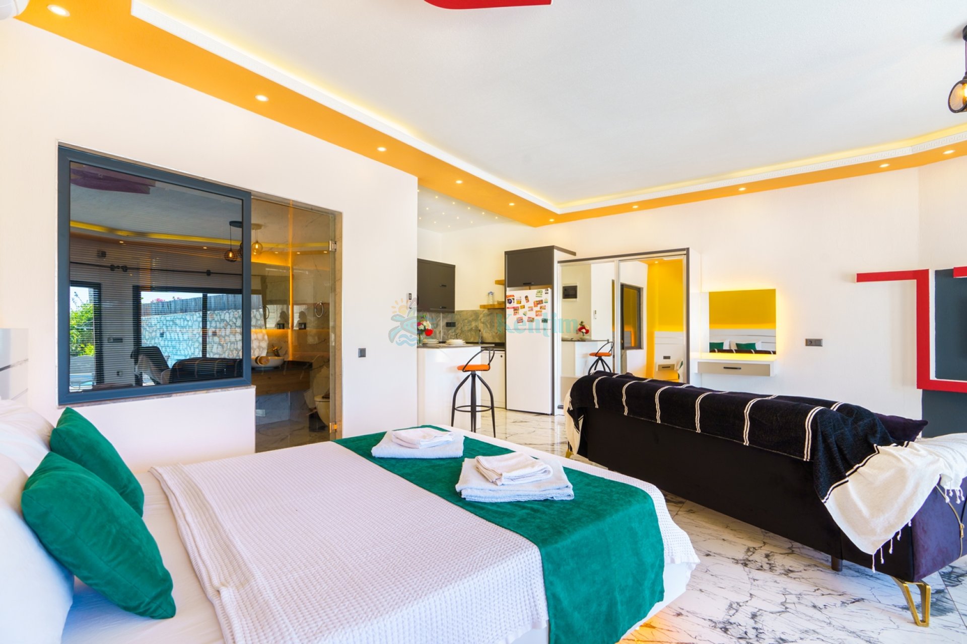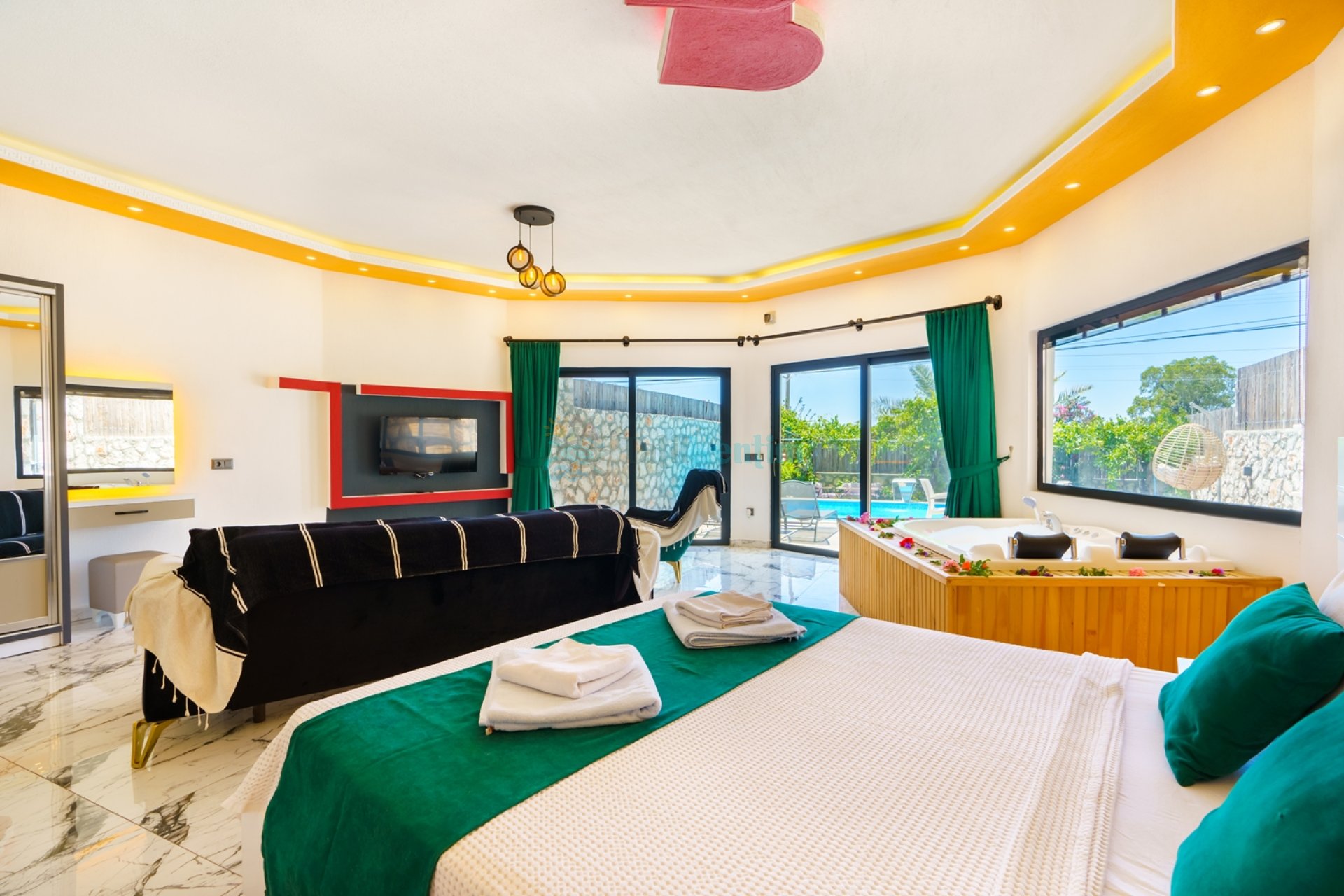 Yatak odası içerisinde, 1 adet çift kişilik yatak, klima, elbise dolabı, komodin, makyaj masası, jakuzi, banyo ve tuvalet yer almaktadır.