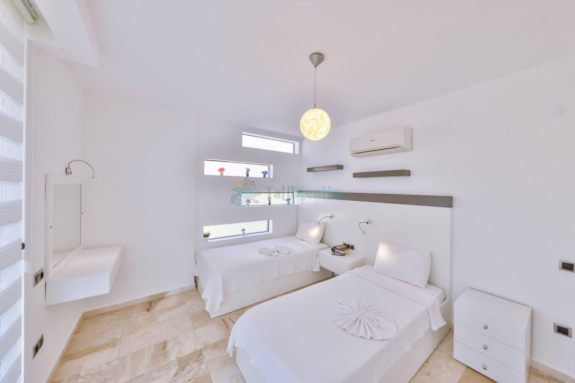 5.Yatak Odası: 2 Adet tek kişilik yatak, komodin, klima, elbise dolabı bulunmaktadır.