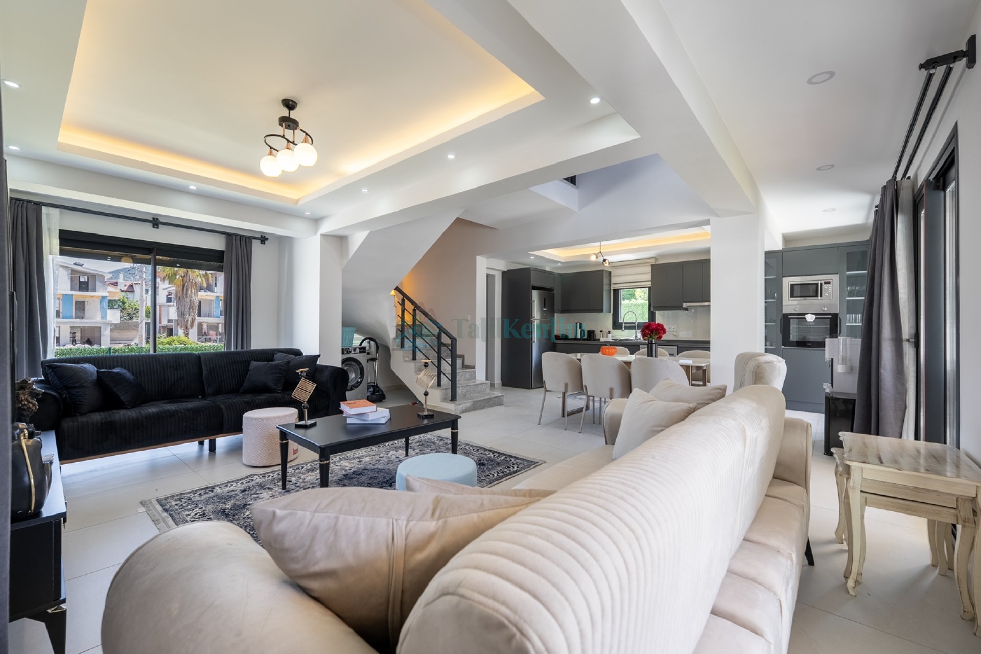 Villamızın salonu içerisinde, koltuk takımı, orta sehpa, TV, TV ünitesi, klima, uydu alıcısı yer almaktadır.