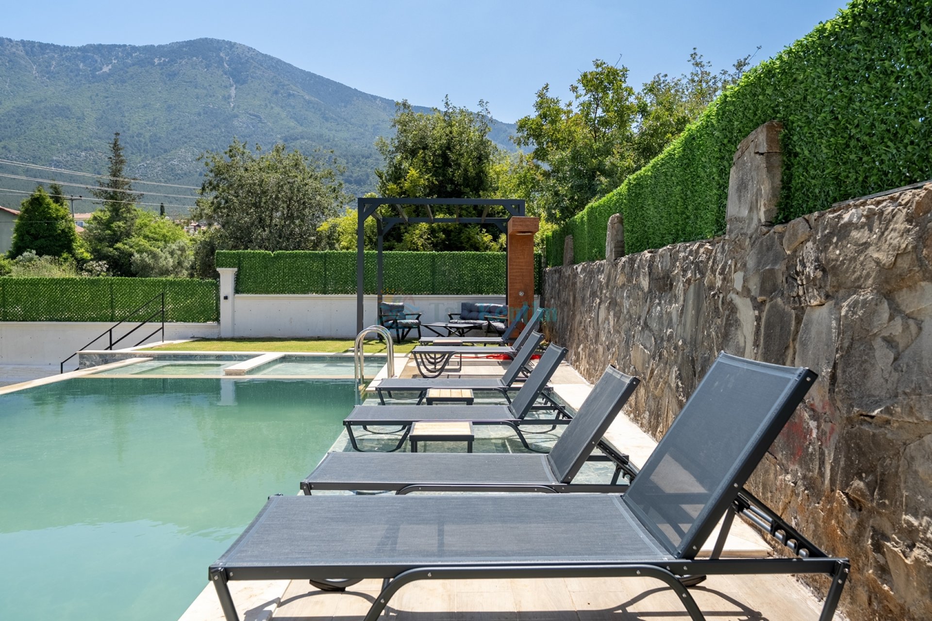 Villa Yiğit, Fethiye Ovacık Bölgesinde, Özel Havuzlu, Çift Jakuzili, Saunalı, Geniş Bahçeli, Isıtmalı Kapalı Havuzlu, 8 Kişilik Lüks Kiralık Tatil Villası