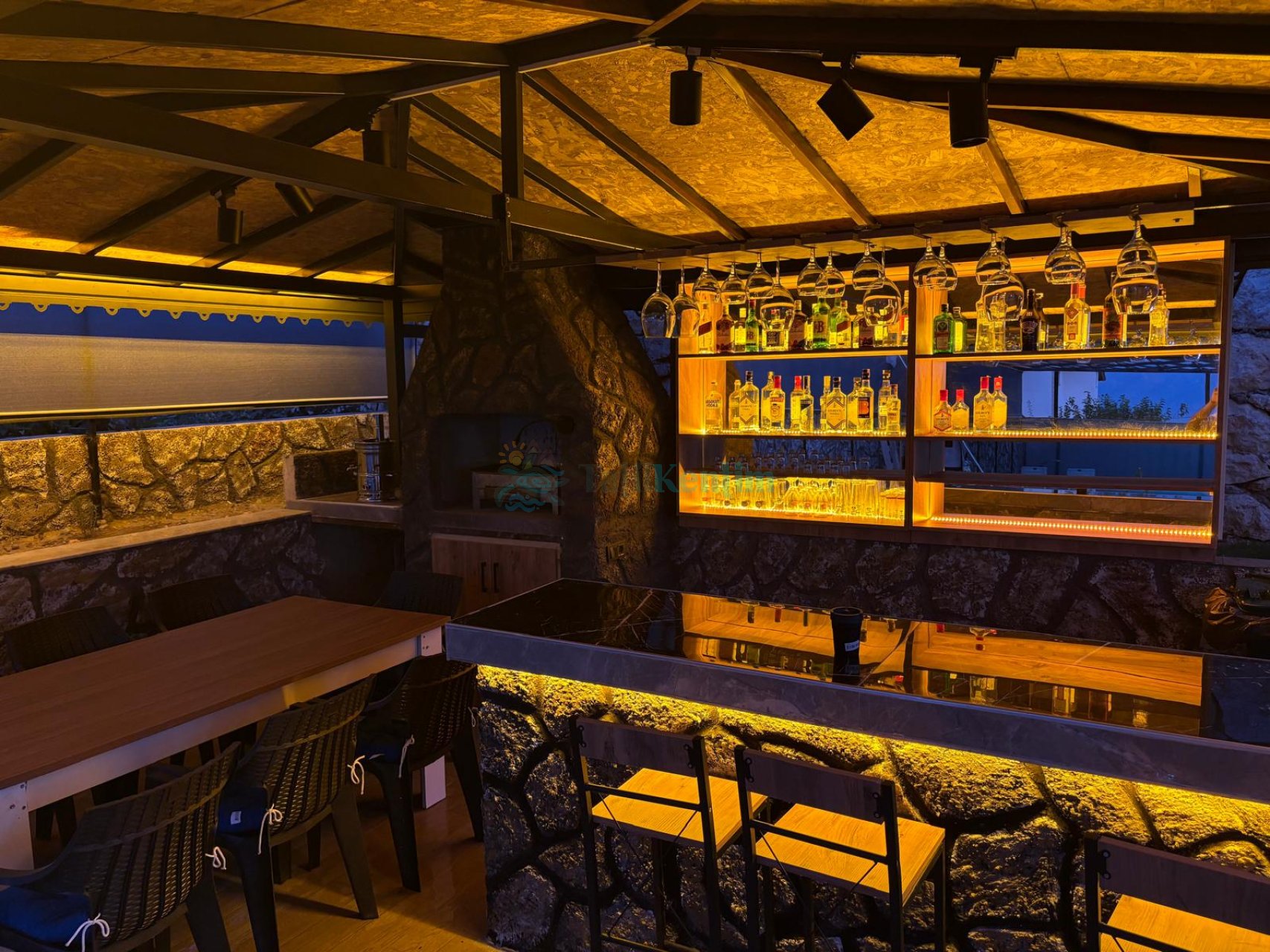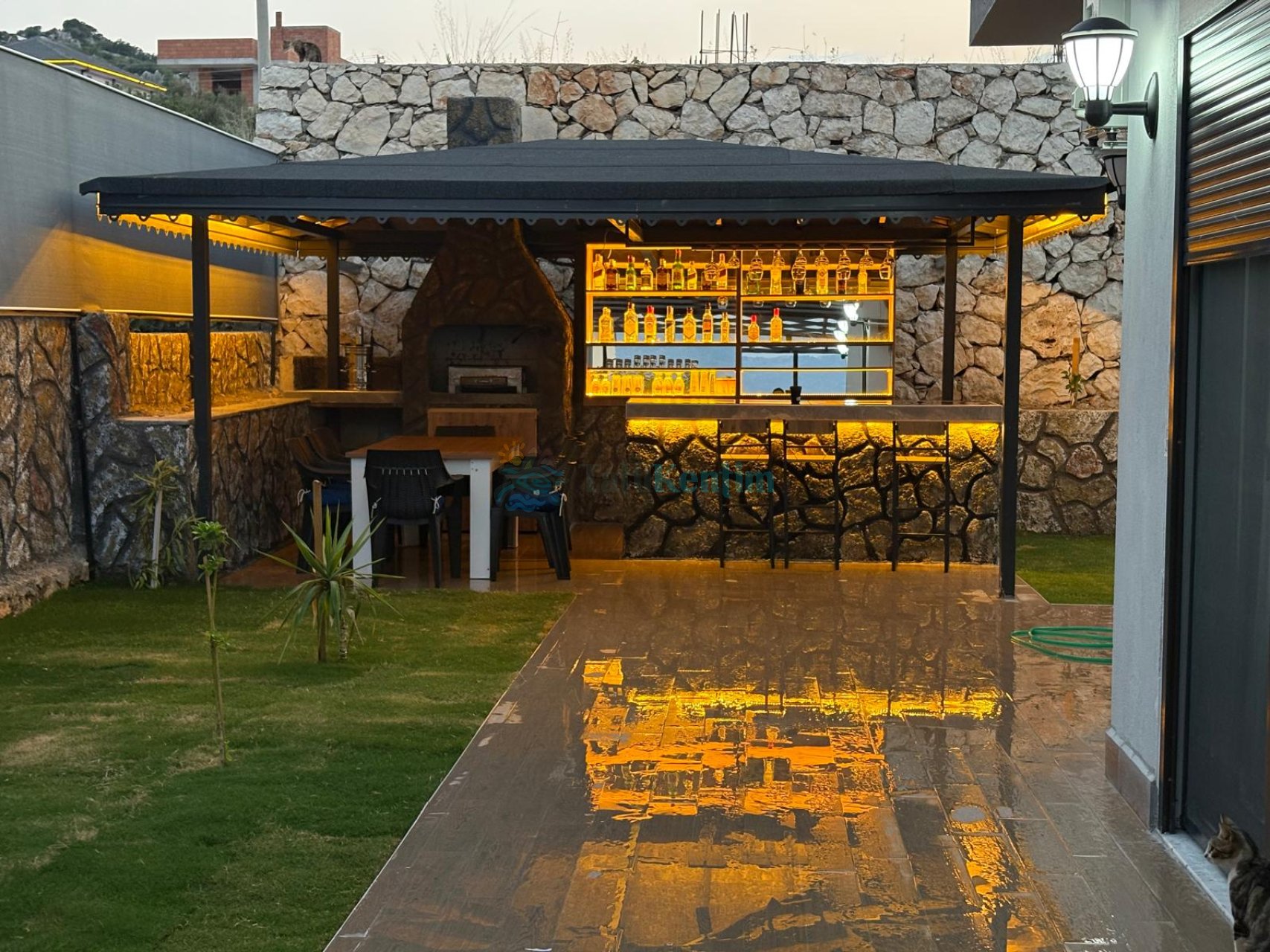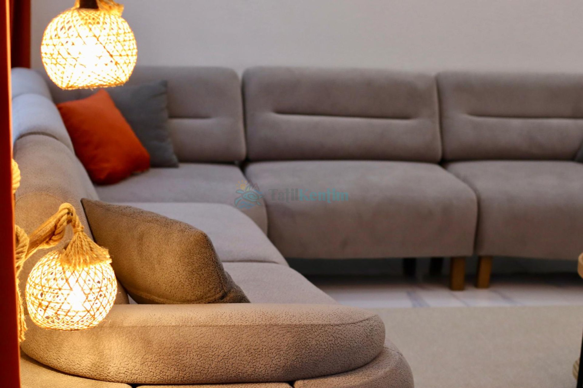 Mutfak ve geniş salonumuzda ise 110 ekran TV, sınırsız İnternet, köşem koltuk takımı 24 btü klima, servis sehpası, mutfakta ise; 8 kişilik yemek masası, bebek sandalyesi, airfry, çaycı, kahve makinesi, tost makinesi, su arıtıcı, fırın, 12 kişilik yemek takımı, 4 kişilik kahve köşesi, Dışarıda ise çimlendirilmesi yapılmış geniş bir kullanım alanı, barbekü, bar, çay semaveri, 8 kişilik yemek masası, ön varenda da 8 kişilik masası