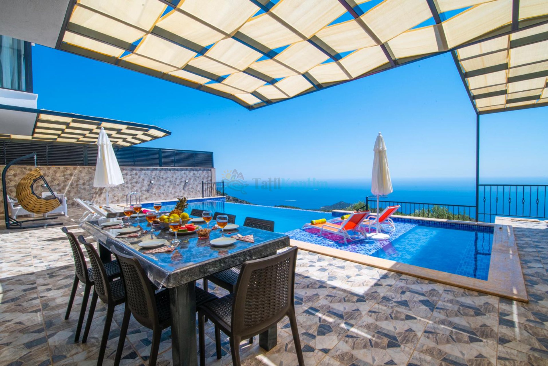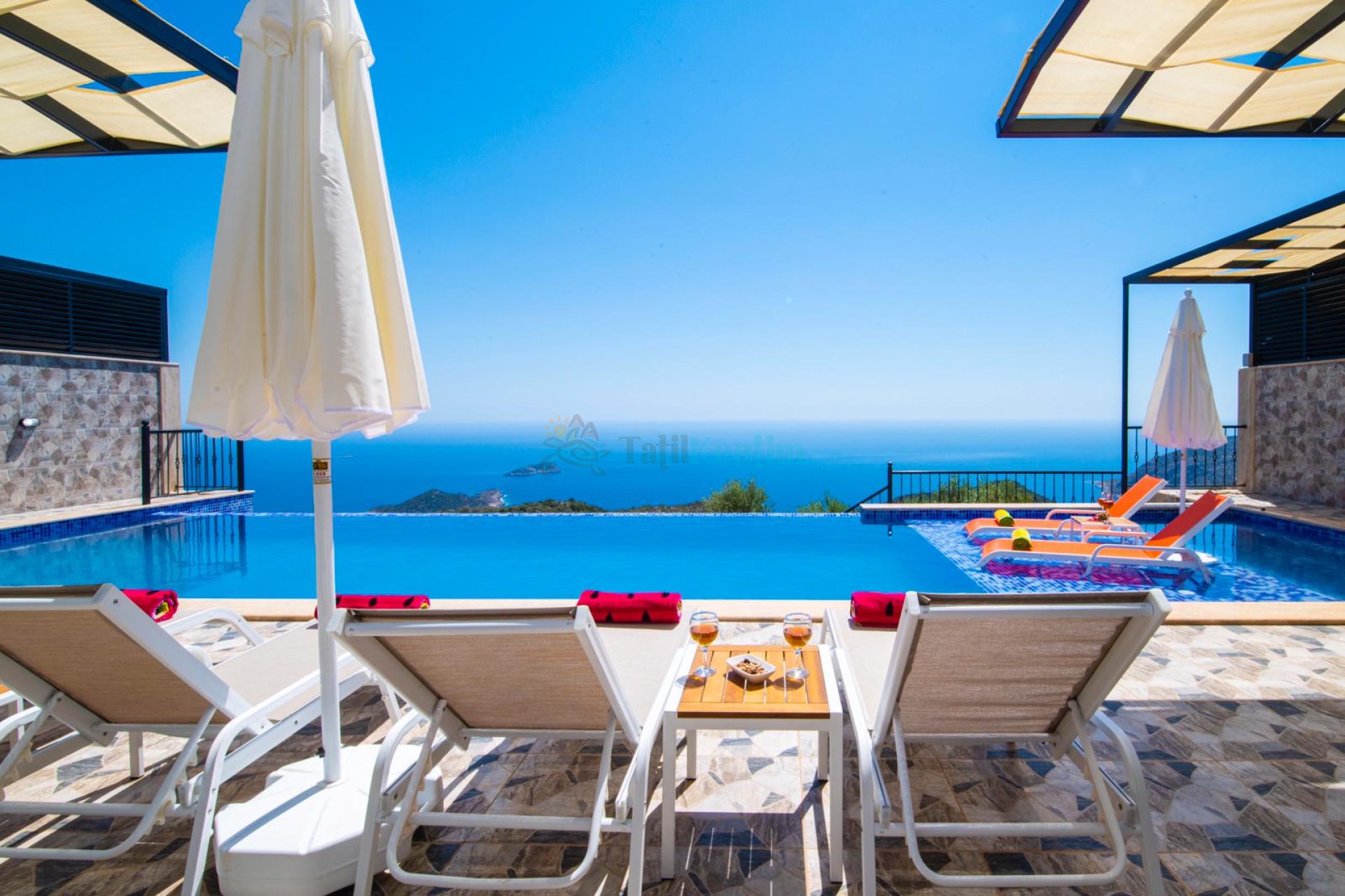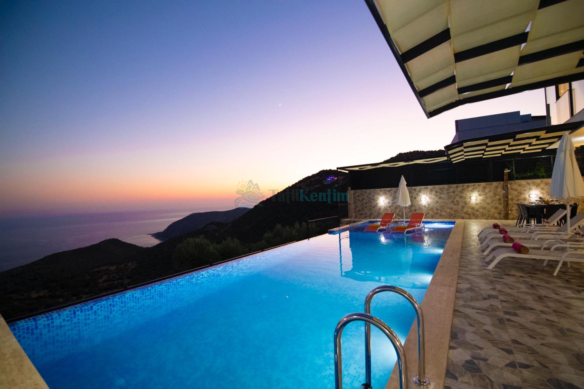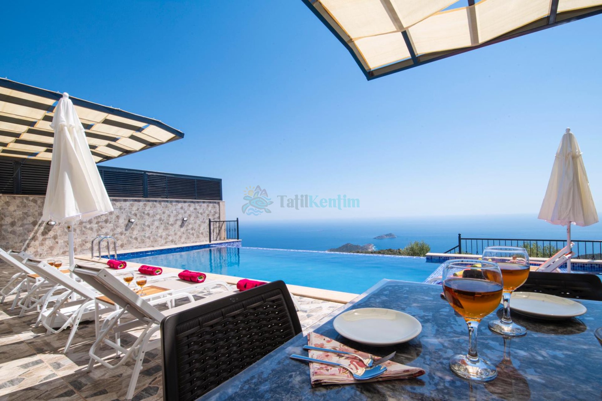 Kaş Kalkan Bölgesinde 10 Kişilik Konaklama Kapasitesine Sahip Sonsuzluk Havuzuna Sahip Kiralık Tatil Villası