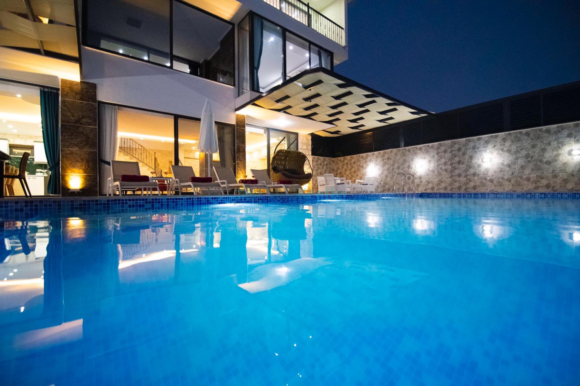 Villa İzo, Antalya Kaş Kalkan'ın Kördere mevkiinde konumlanmış, muazzam deniz manzarasına hakim, 4 yatak odası ile 8 kişi konaklama kapasitesine sahip olup, arkadaş grupları ve geniş ailelere hitap eden kiralık lüks tatil villasıdır. Bütün bir yılın stresini atabileceğiniz özel havuz, çift jakuzi, sauna ve hamam bulunmaktadır. Deniz manzaralı terasında barbekü keyfi ile tatilin tadını çıkarabilirsiniz. Kış ayalarında da konaklama yapabileceğiniz ısıtmalı kapalı havuzu bulunan villamız, modern ve şık dizaynı ile sizlere rahat ve konforlu bir tatil seçeneği sunmaktadır.