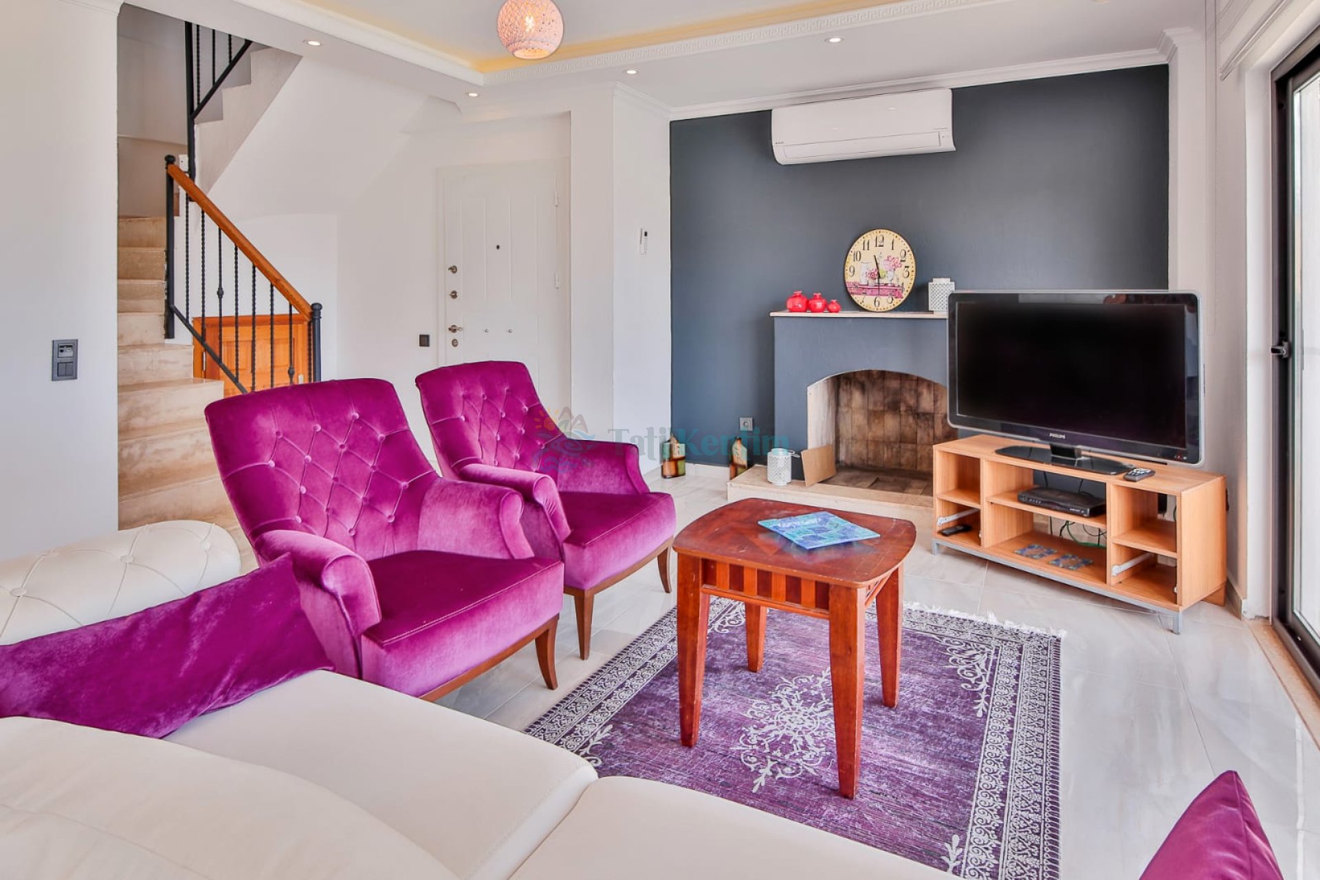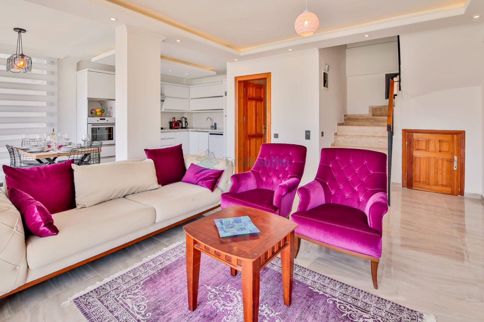 Salon: Koltuk takımı, orta sehpa, TV, TV ünitesi, klima, uydu alıcısı yer almaktadır.