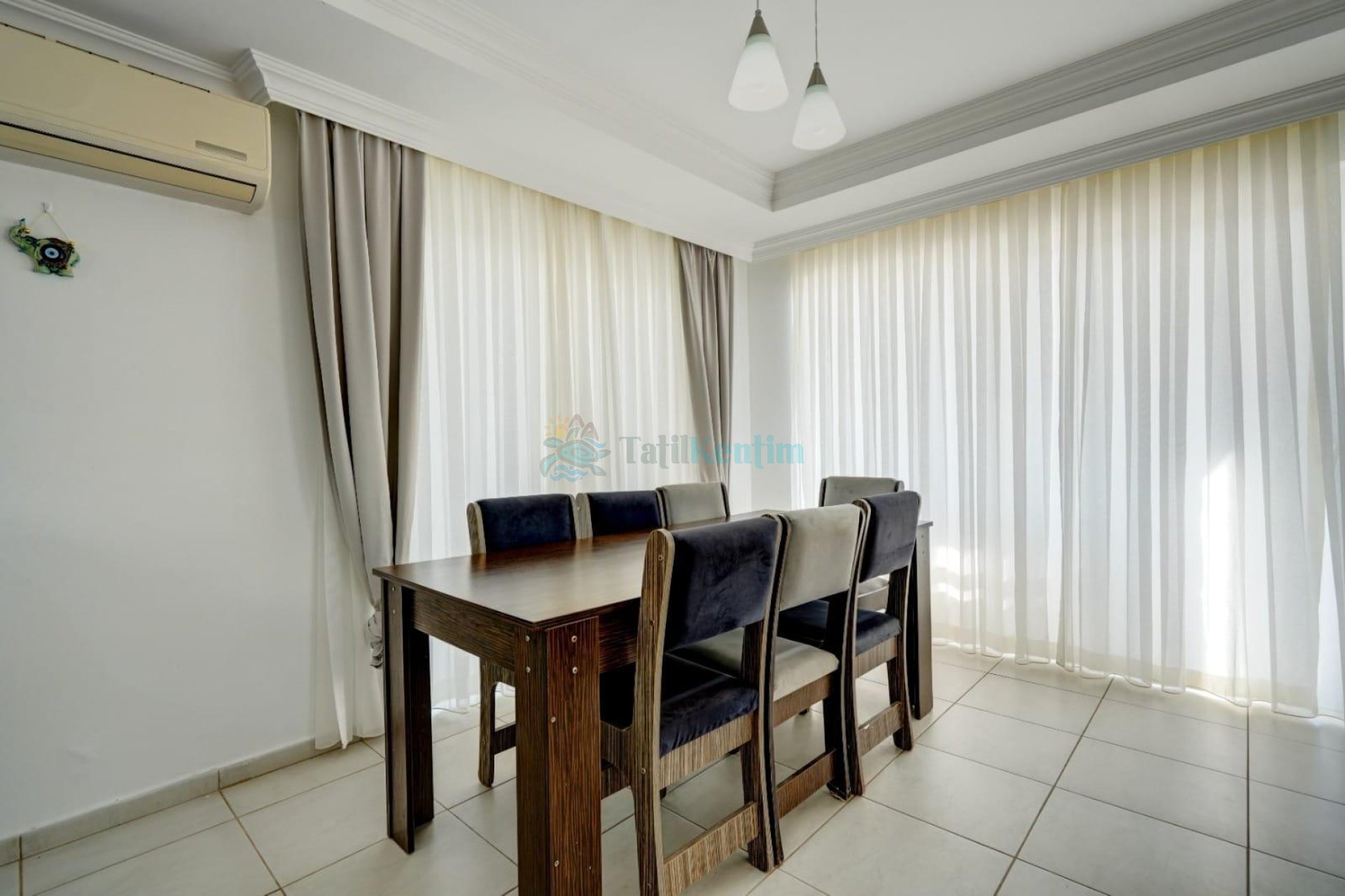 Mutfak: Modern Amerikan mutfakta; çamaşır makinesi, bulaşık makinesi, buzdolabı, ankastre fırın, mikrodalga fırın, ankastre 4’lü ocak, su ısıtıcı, makinesi, tencere ve tava takımı, yemek takımı, kaşık-çatal takımı ve bardaklar bulunmaktadır.