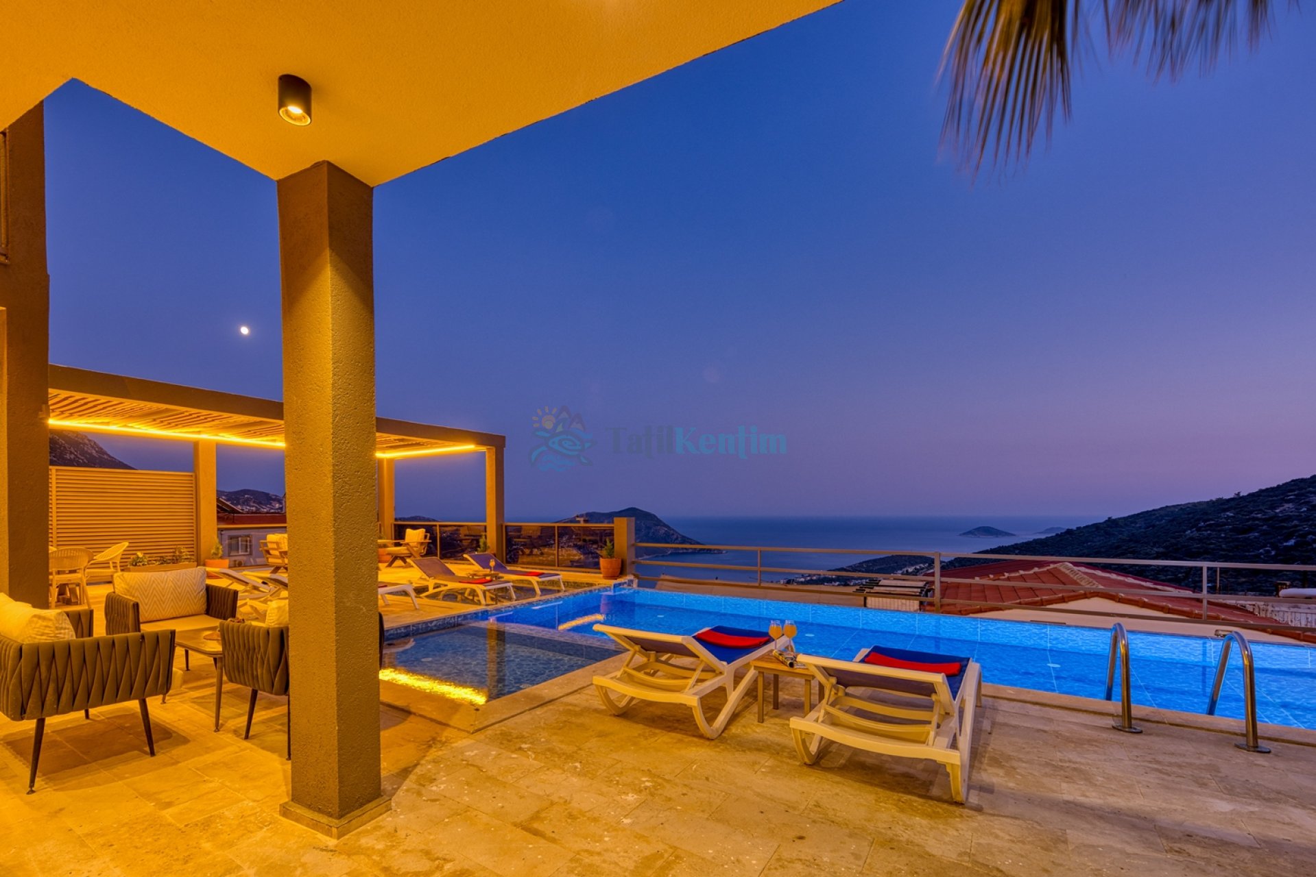 Villa Ocean Akbel, Kalkan Akbel Bölgesinde, Deniz Manzaralı, Özel Havuzlu, Jakuzili, Hamam Ve Saunaya Sahip, 10 Kişilik Kiralık Lüks Tatil Villası