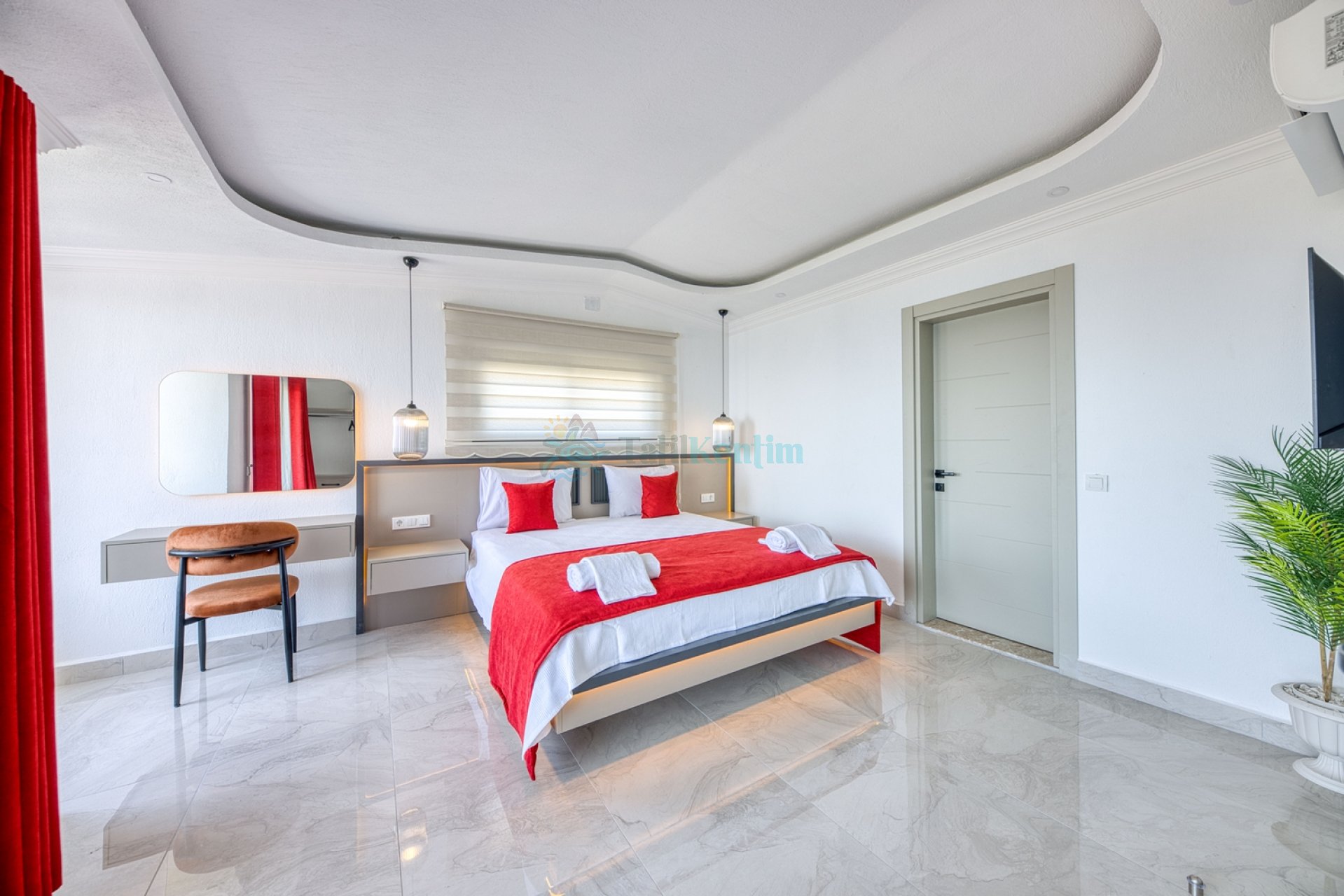 4.Yatak Odası: 1 adet çift kişilik yatak, klima, komodin, makyaj masası, elbise dolabı, banyo ve tuvalet bulunmaktadır.