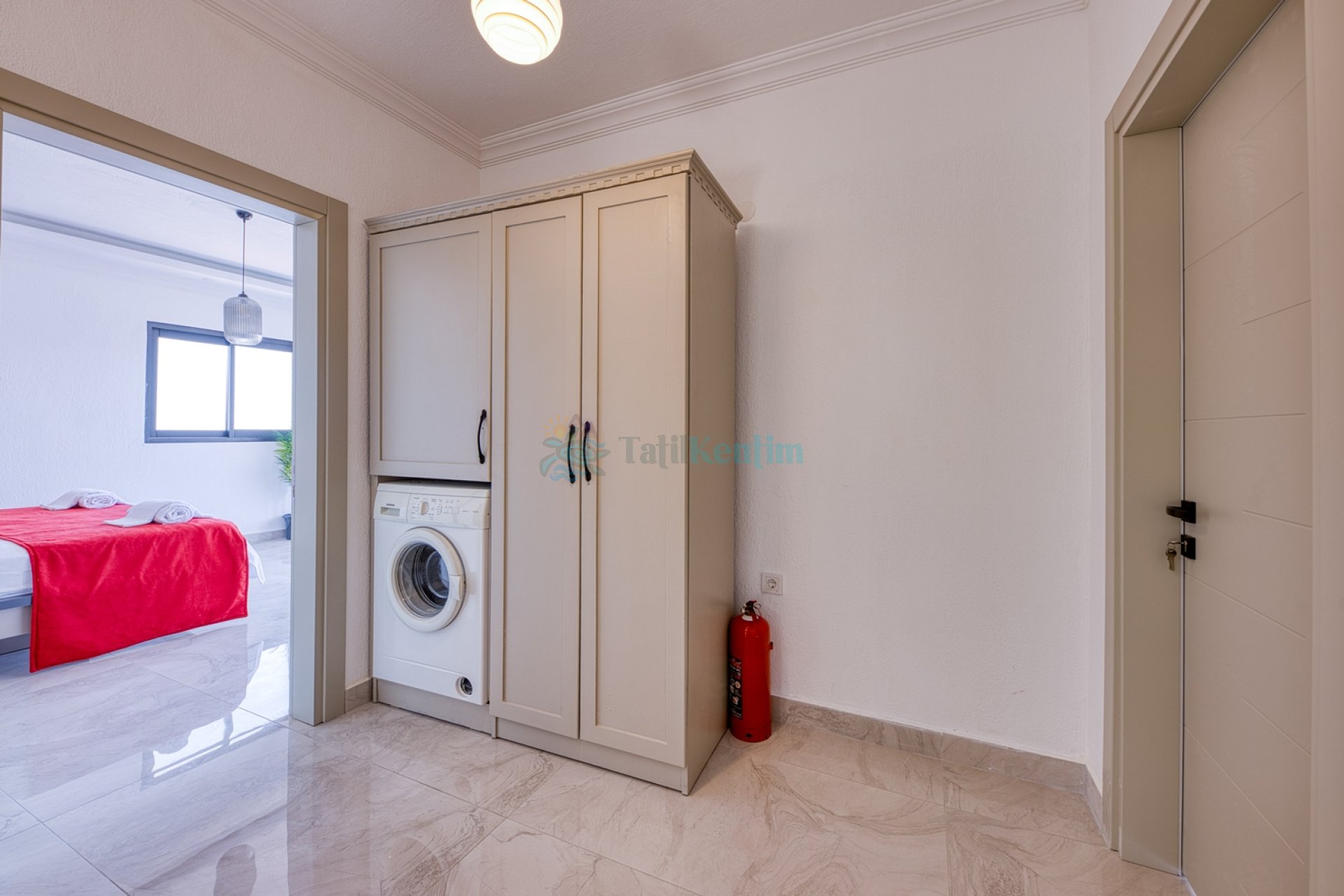 Mutfak: Modern Amerikan mutfakta; çamaşır makinesi, bulaşık makinesi, buzdolabı, ankastre fırın, mikrodalga fırın, ankastre 4’lü ocak, su ısıtıcı, ekmek kızartma makinesi, tencere ve tava takımı, yemek takımı, kaşık-çatal takımı ve bardaklar bulunmaktadır.