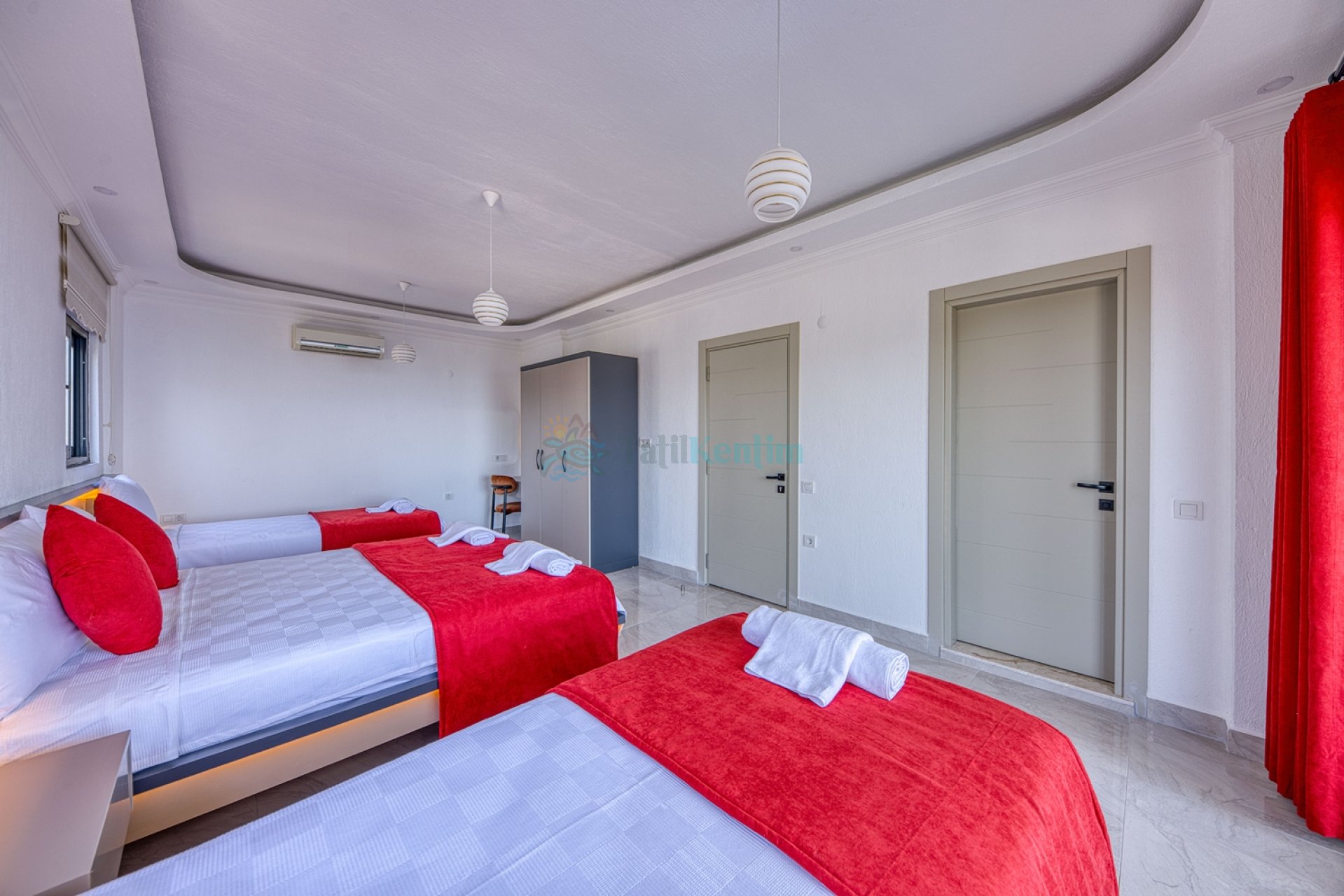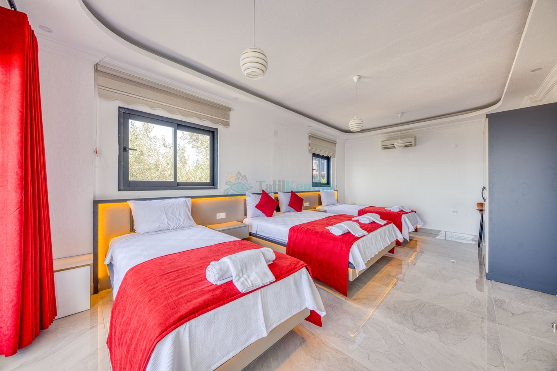 3.Yatak Odası: 1 adet çift kişilik, 2 adet tek kişilik yatak, klima, komodin, makyaj masası, elbise dolabı, banyo ve tuvalet bulunmaktadır.