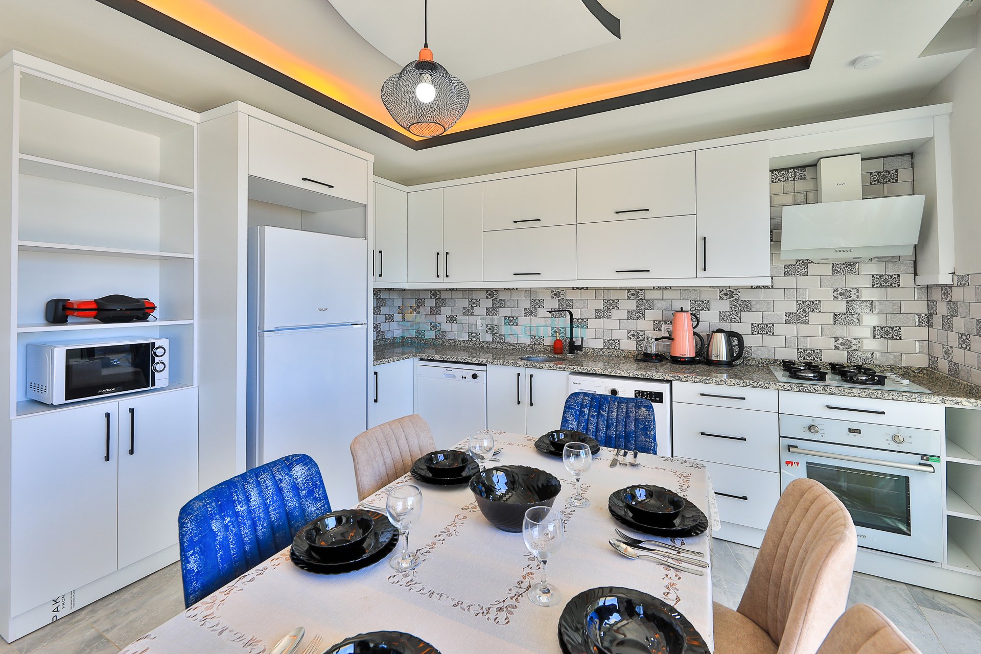 Mutfakta bulunması gereken tüm araç gereçler mevcuttur.