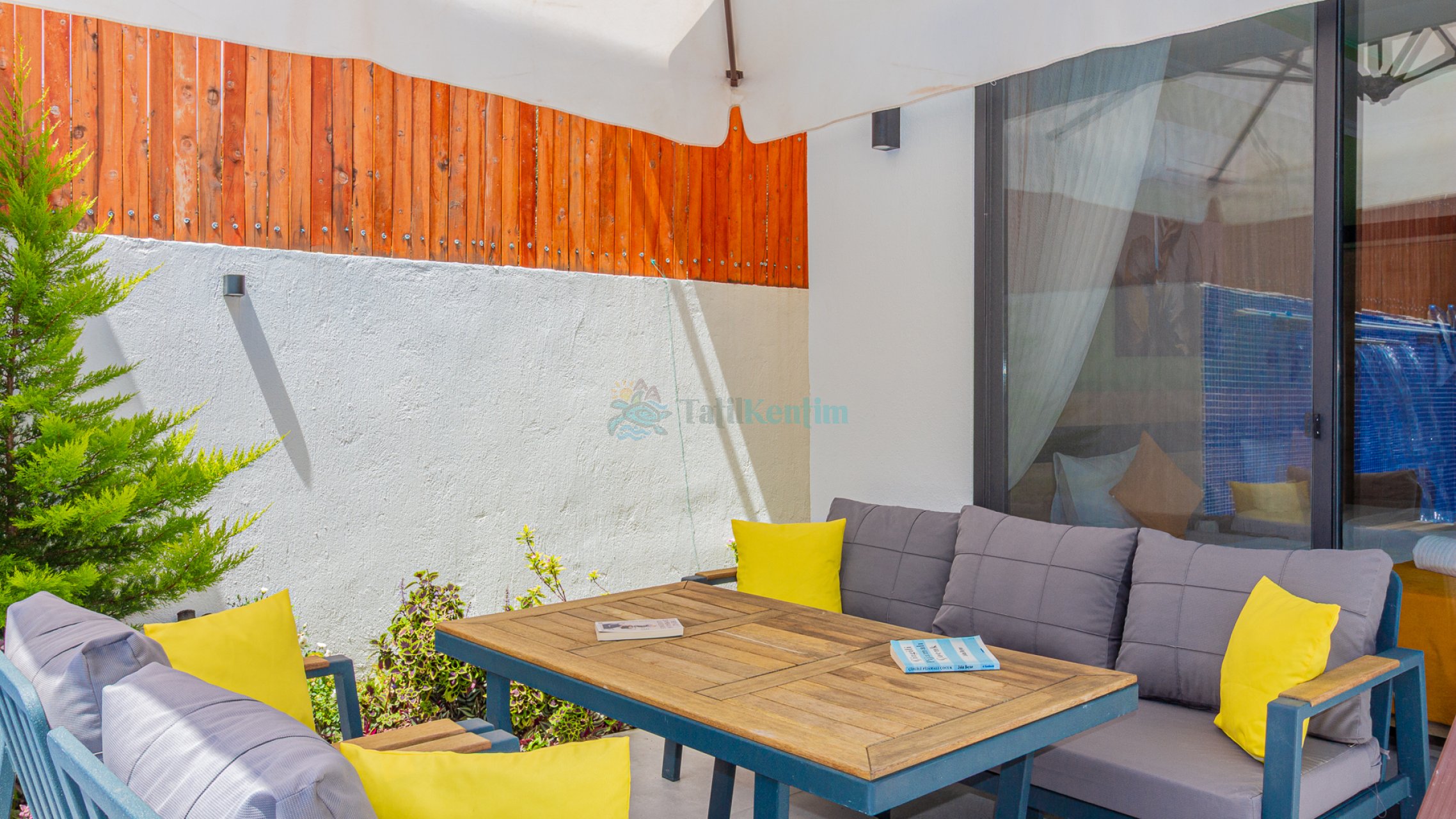 Villa Nar Çiçeği 2, Kalkan İslamlar mevkiinde konumlanmıştır, doğa ile iç içe, huzurlu ve gözlerden uzak bir tatil arayan misafirlerimiz için özel olarak tasarlanmış. 4 Kişilik konaklama kapasitesine sahip villamızda 2 yatak odası ve 2 banyo bulunmaktadır. Muhafazakar aileler için uygun olan villamız, korunaklı yapısı sayesinde rahat ve güvenli bir tatil imkanı sunar. Doğa manzarasına hakim villamızın özel yüzme havuzu çevresinde oturma grubu, yemek masası, salıncak ve keyifli vakit geçirmeniz için masa tenisi yer almaktadır. Geniş bahçe alanı, sevdiklerinizle birlikte doğanın tadını çıkarmanız için ideal bir ortam sunar. Villanın odalarından birinde bulunan jakuzi, tatilinize ekstra konfor ve ayrıcalık katarak günün yorgunluğunu atmanıza yardımcı olur.