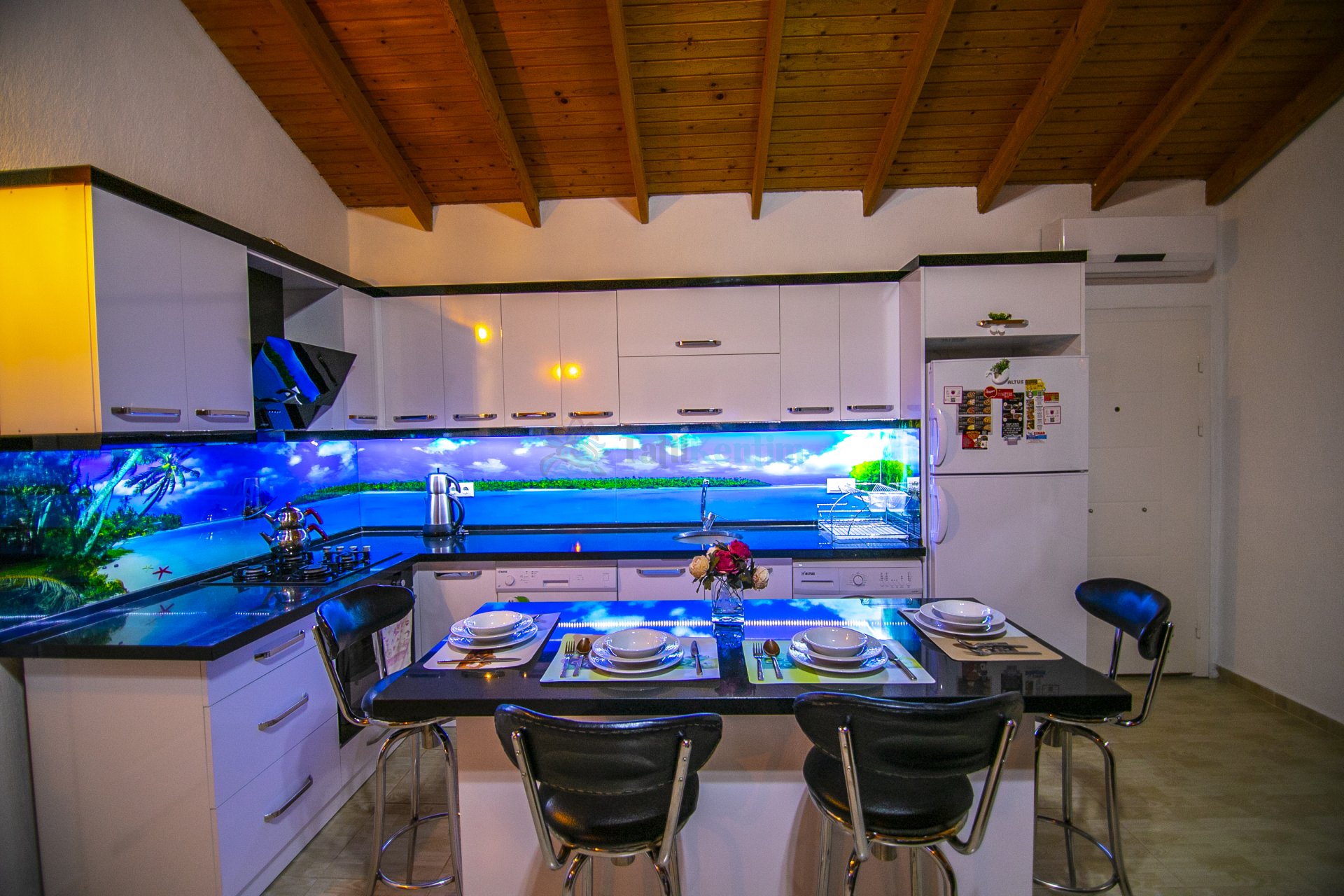 Amerikan mutfak içerisinde, buzdolabı, bulaşık makinası, çamaşır makinası, yemek masası, yemek takımı, ankastre fırın, tost makinası, ankastre ocak, çaydanlık, su ısıtıcısı, tava, tencere takımı ve gerekli olan tüm mutfak gereçleri yer almaktadır.