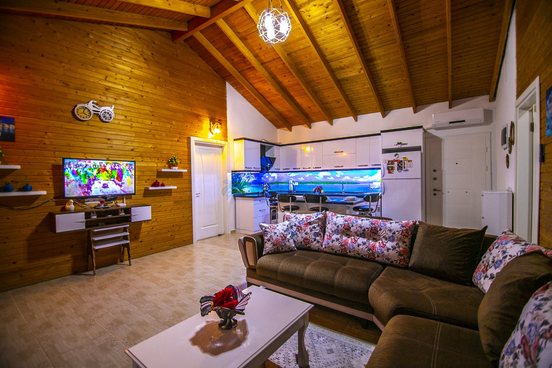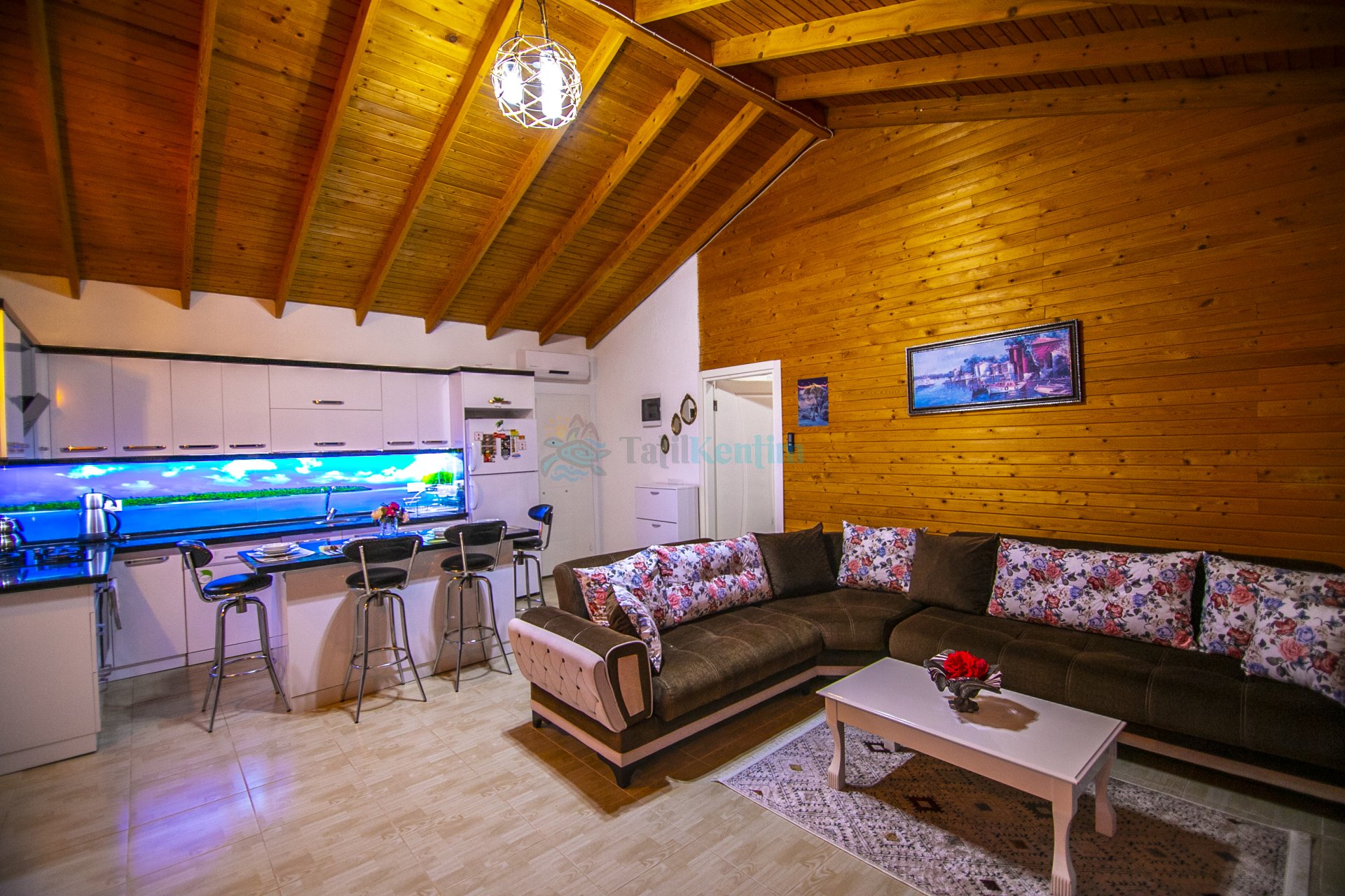 Villamızın salonu içerisinde, koltuk takımı, orta sehpa, TV, TV ünitesi, klima, uydu alıcısı yer almaktadır.