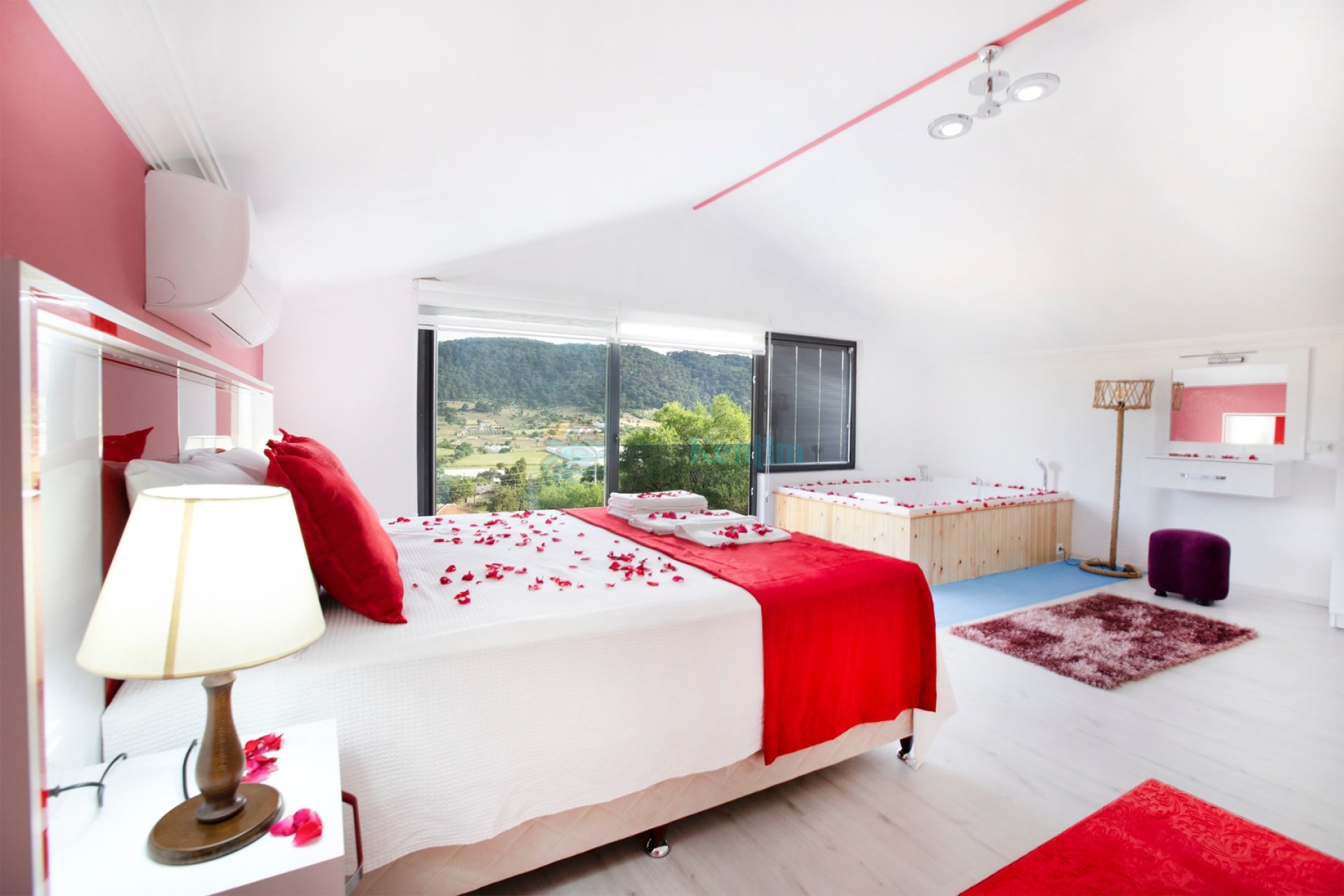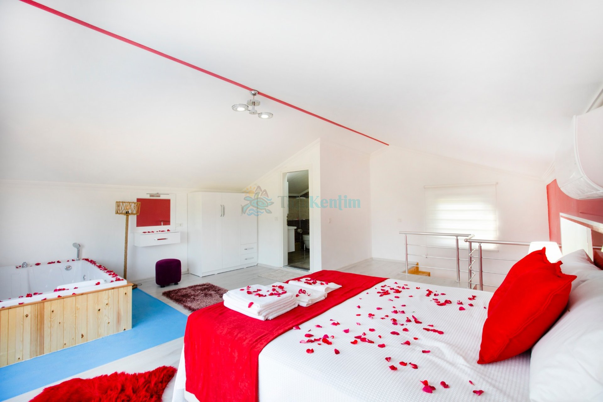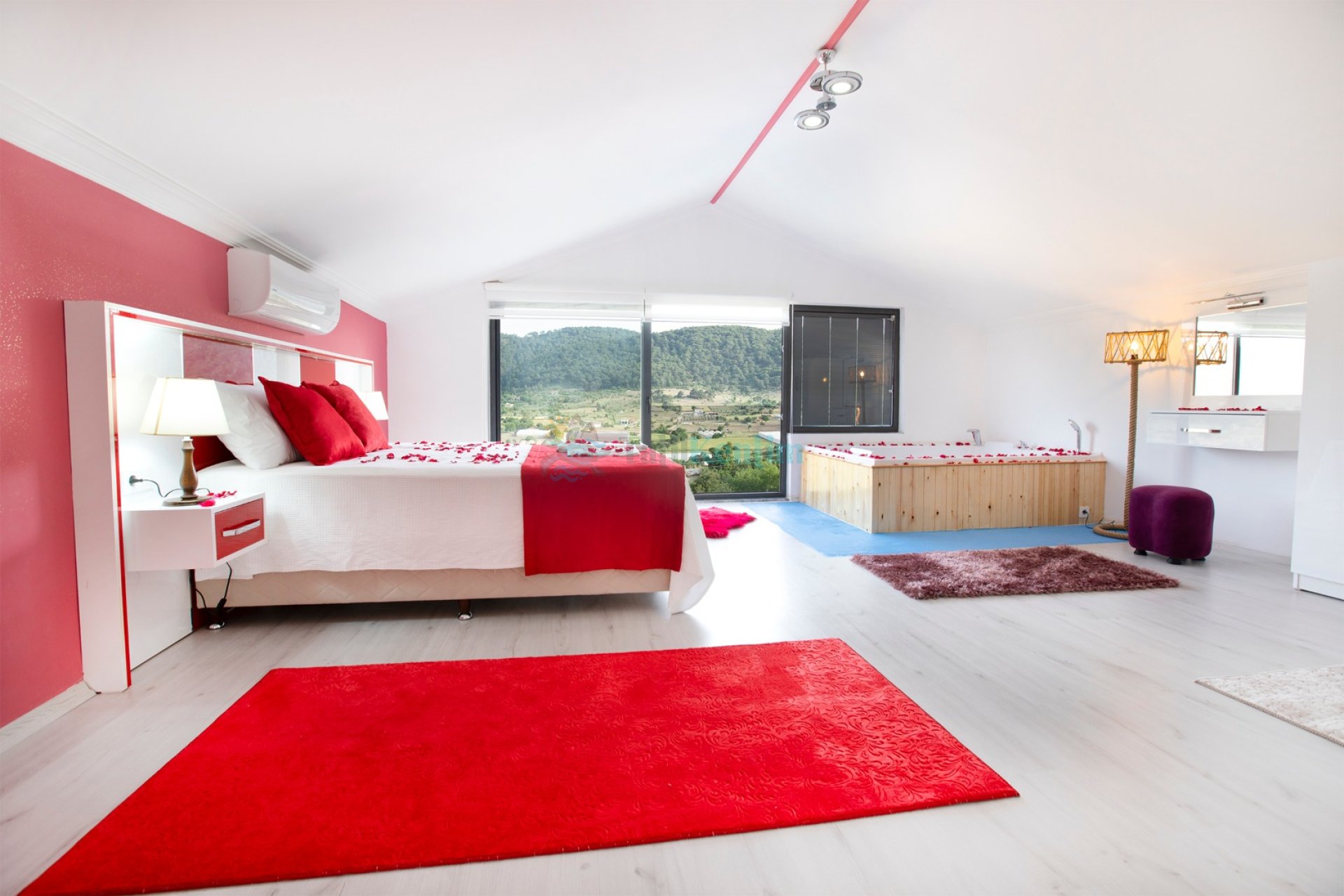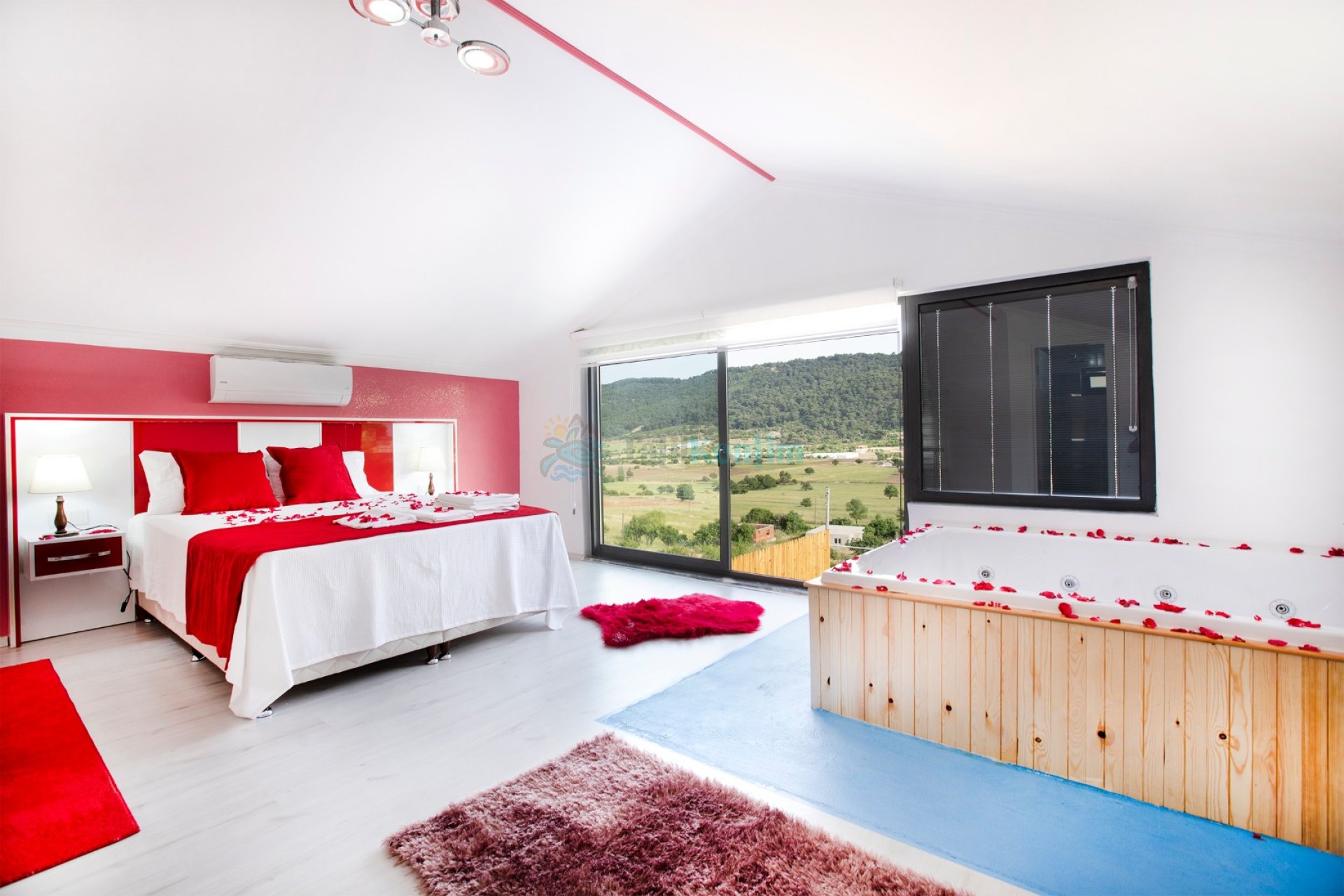 Yatak odası içerisinde, 1 adet çift kişilik yatak, klima, elbise dolabı, komodin, makyaj masası, jakuzi, banyo ve tuvalet yer almaktadır.