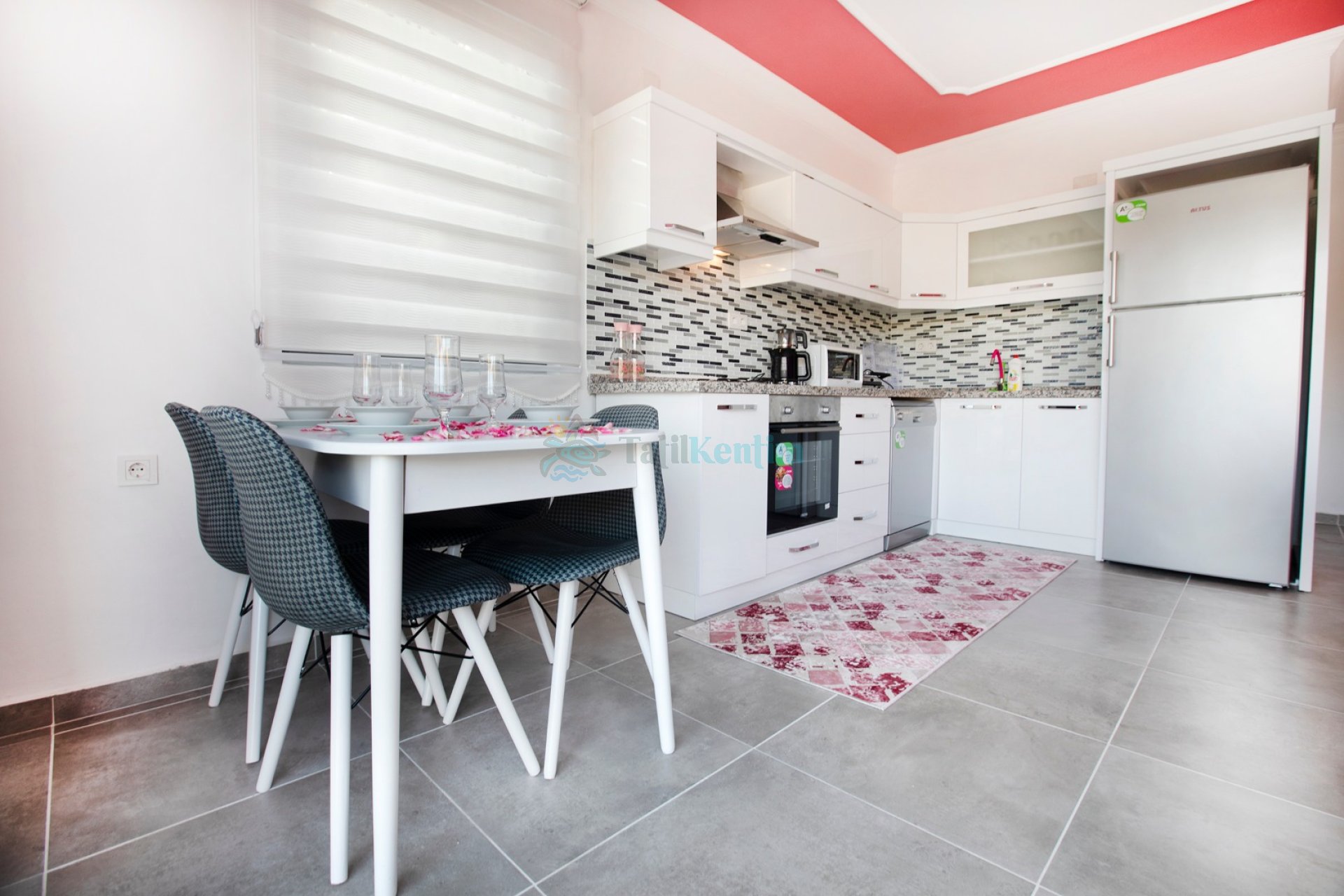 Amerikan mutfak içerisinde, buzdolabı, bulaşık makinası, çamaşır makinası, yemek masası, yemek takımı, ankastre fırın, tost makinası, ankastre ocak, çaydanlık, su ısıtıcısı, tava, tencere takımı ve gerekli olan tüm mutfak gereçleri yer almaktadır.
