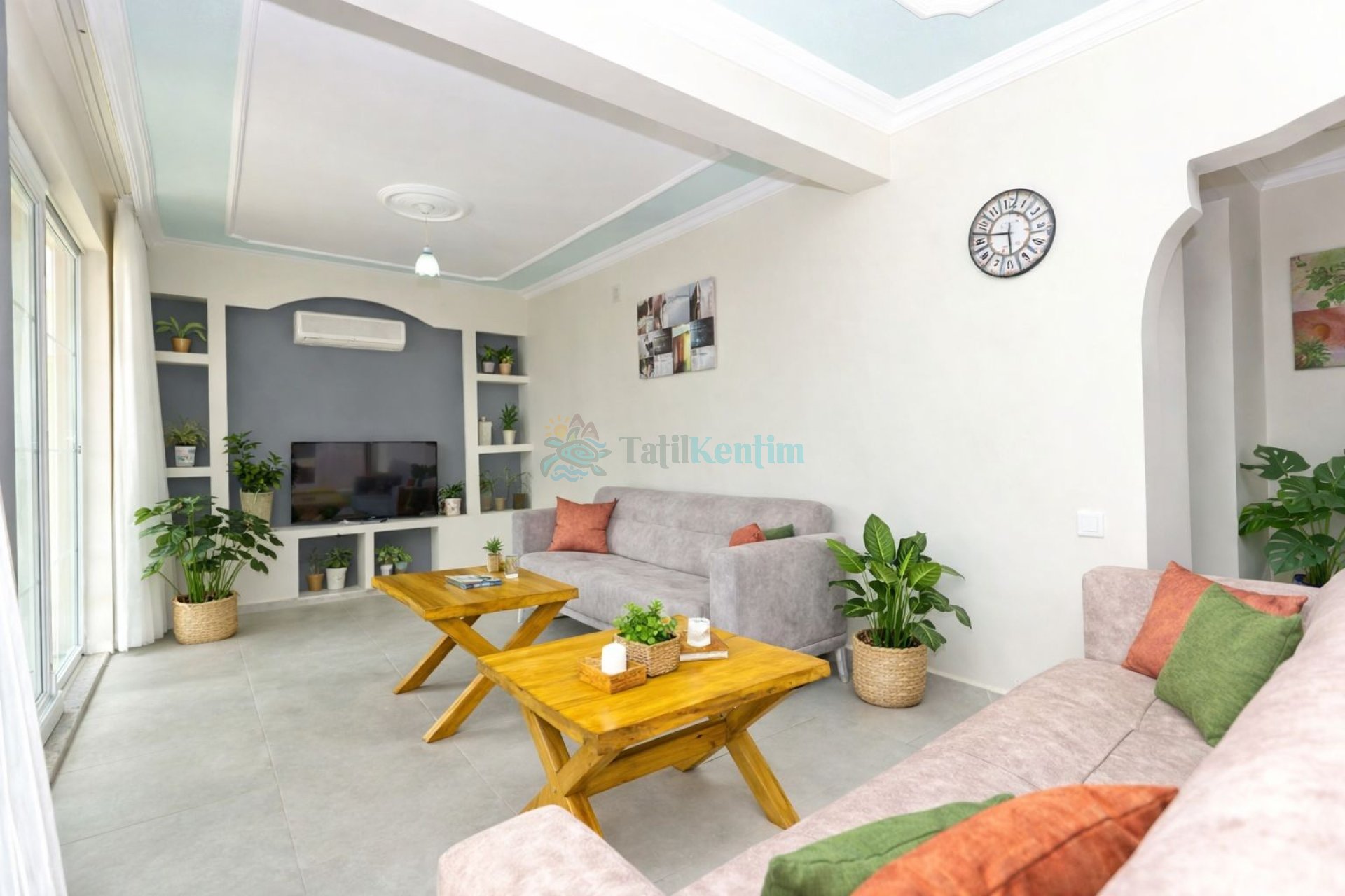 Villamızın salonu içerisinde, koltuk takımı, orta sehpa, TV, TV ünitesi, klima, uydu alıcısı yer almaktadır.