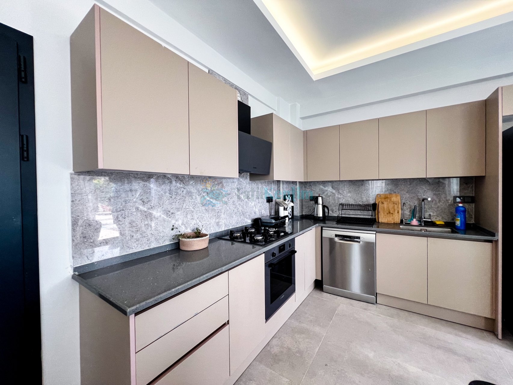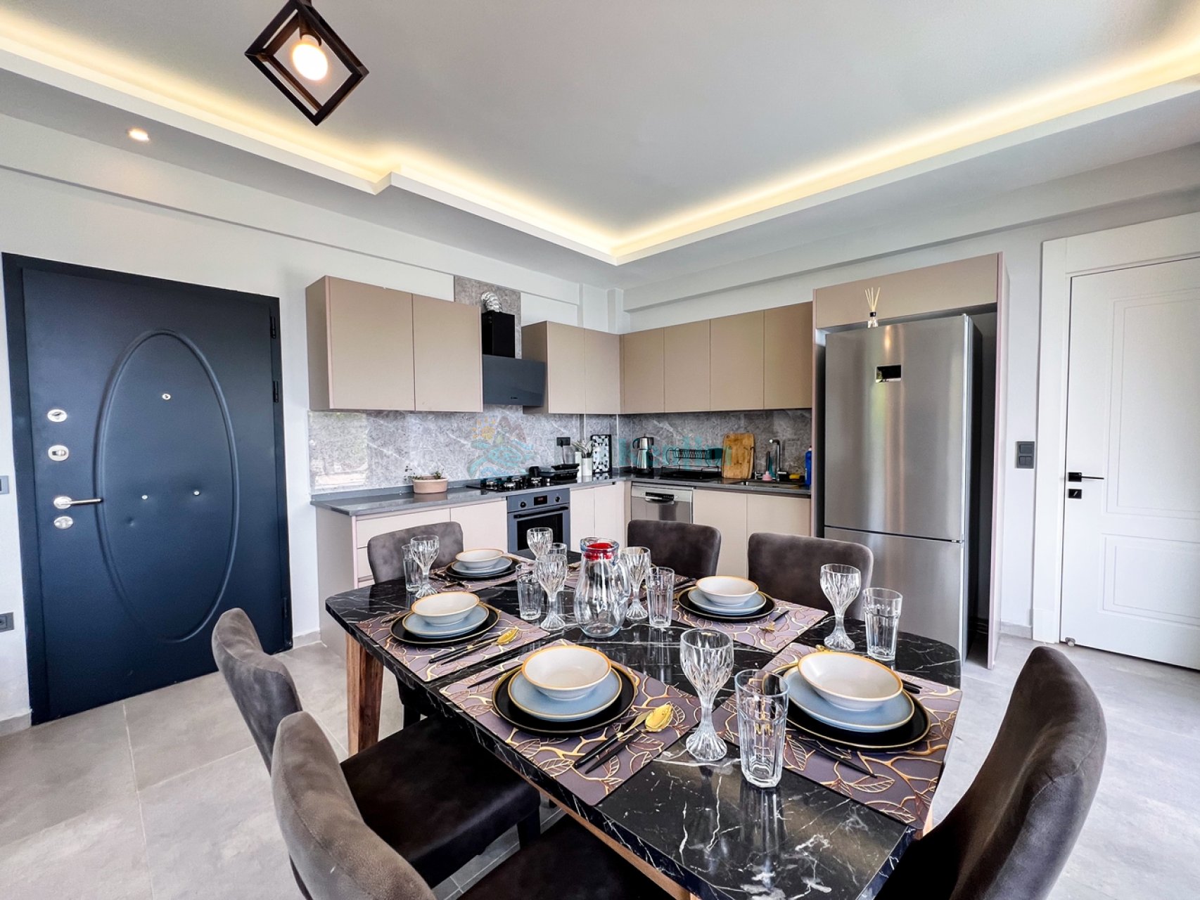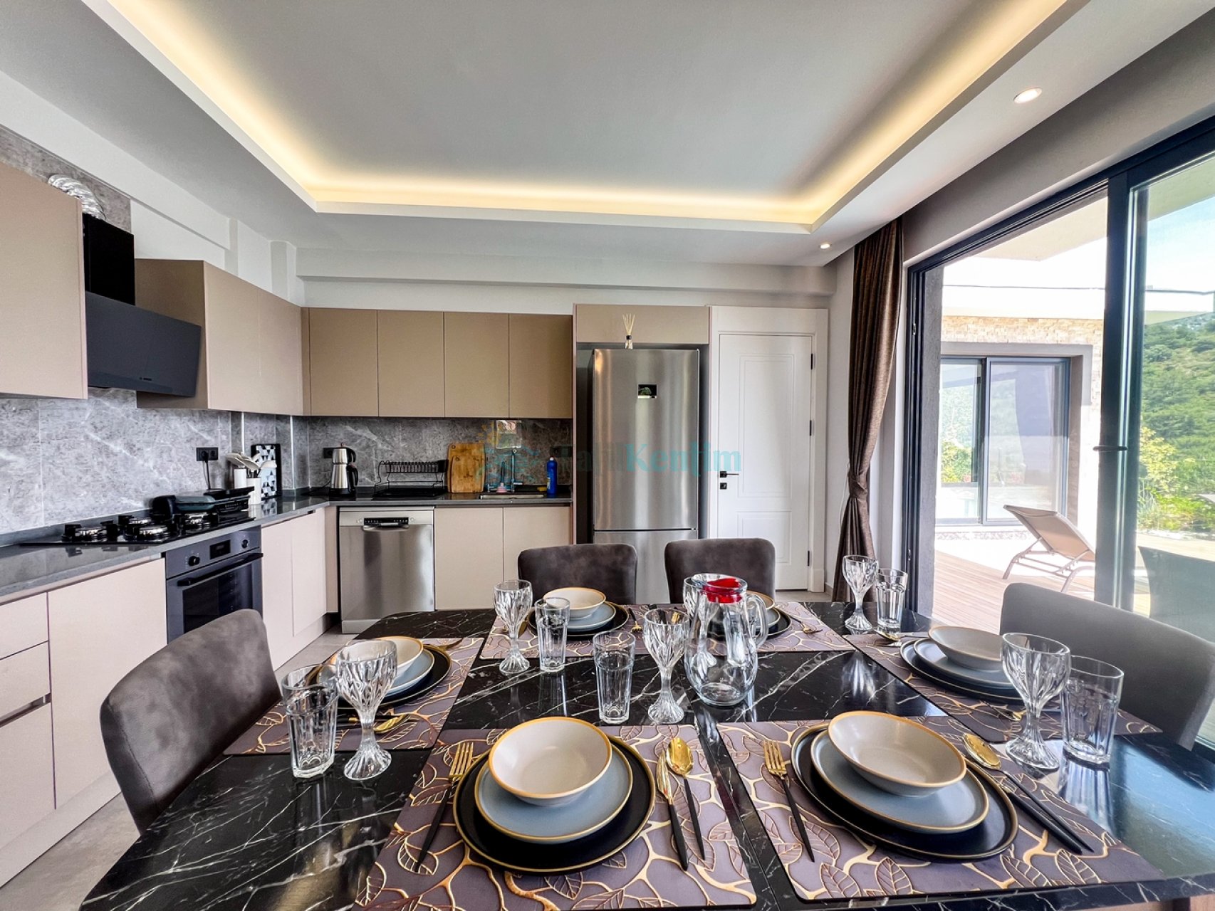 Mutfak: Amerikan mutfak içerisinde, buzdolabı, bulaşık makinesi, çamaşır makinesi, yemek masası, yemek takımı, ankastre fırın, tost makinesi, ankastre ocak, çaydanlık, su ısıtıcısı, tava, tencere takımı ve gerekli olan tüm mutfak gereçleri yer almaktadır.