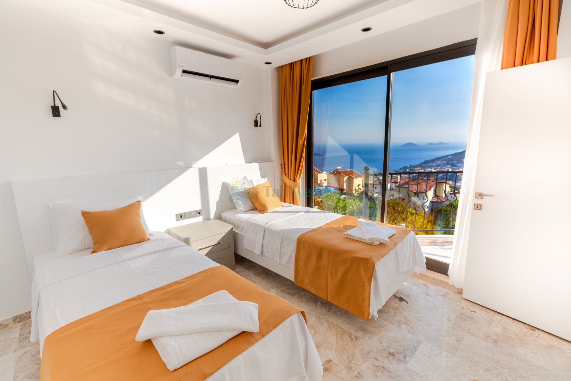 Yatak odası içerisinde, 2 adet tek kişilik yatak, klima, elbise dolabı, komodin, makyaj masası, banyo ve tuvalet yer almaktadır.