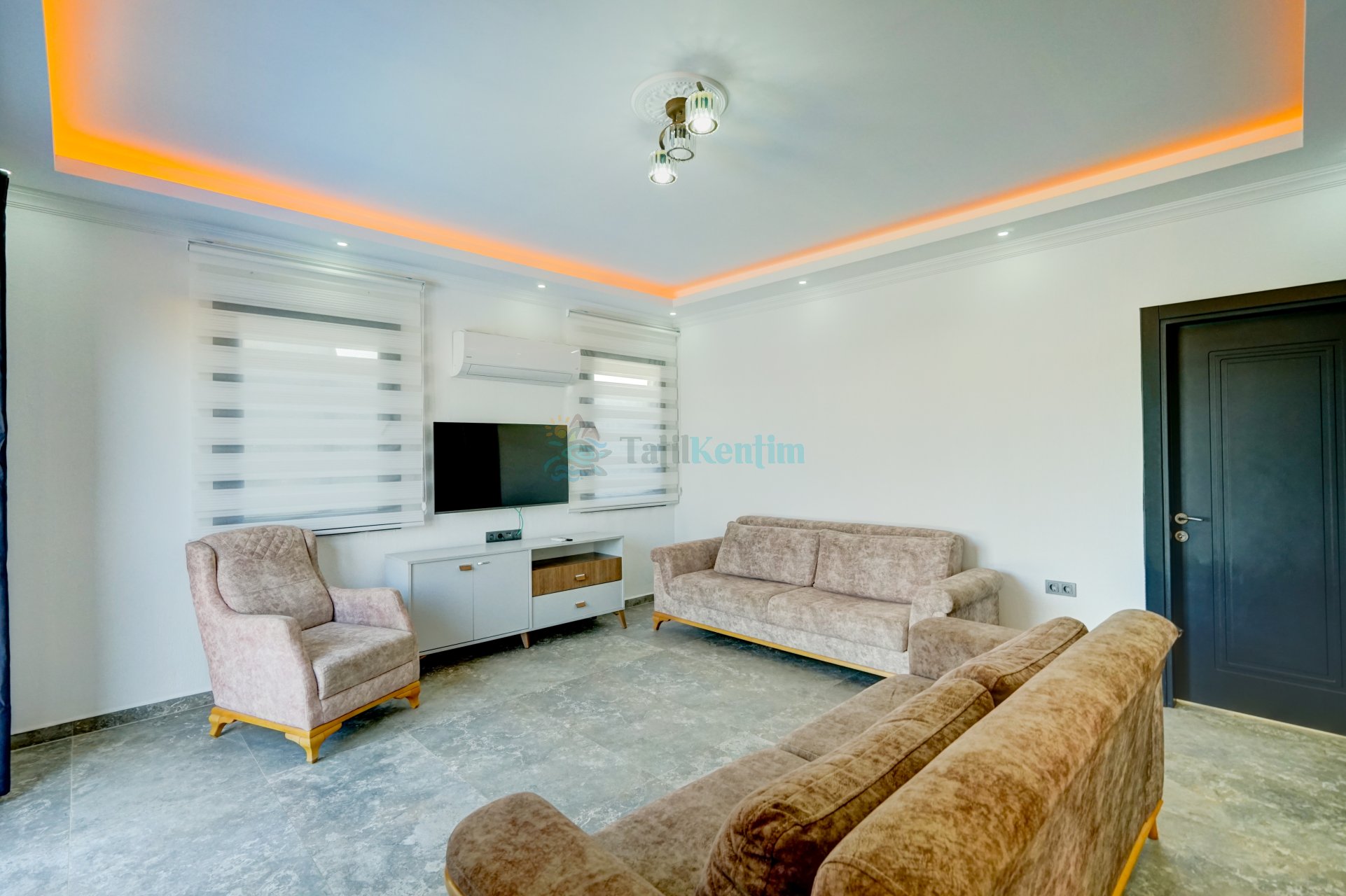 Villamızın salonu içerisinde, koltuk takımı, orta sehpa, TV, TV ünitesi, klima, uydu alıcısı yer almaktadır.