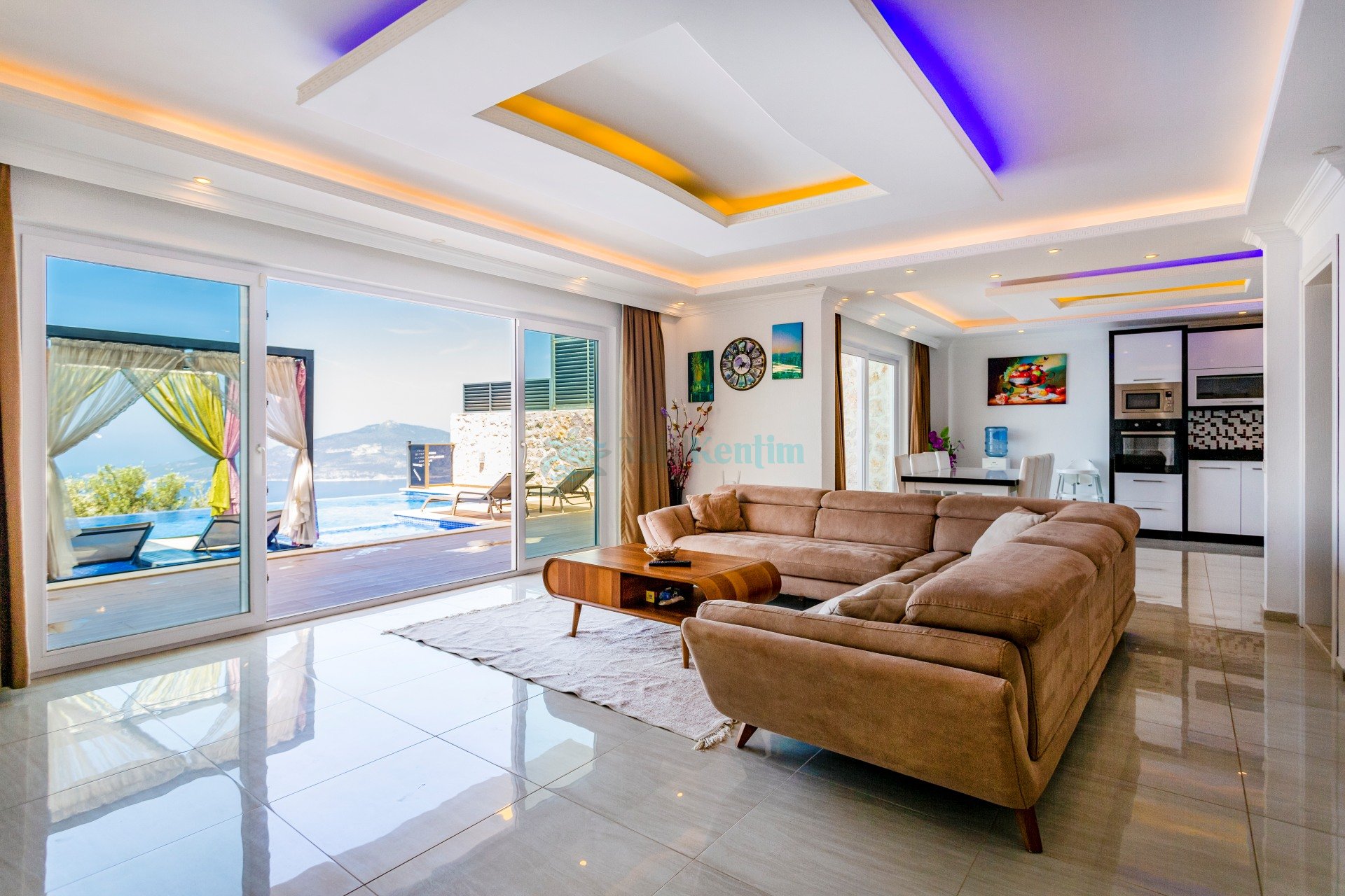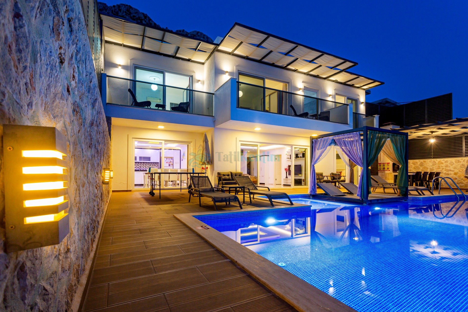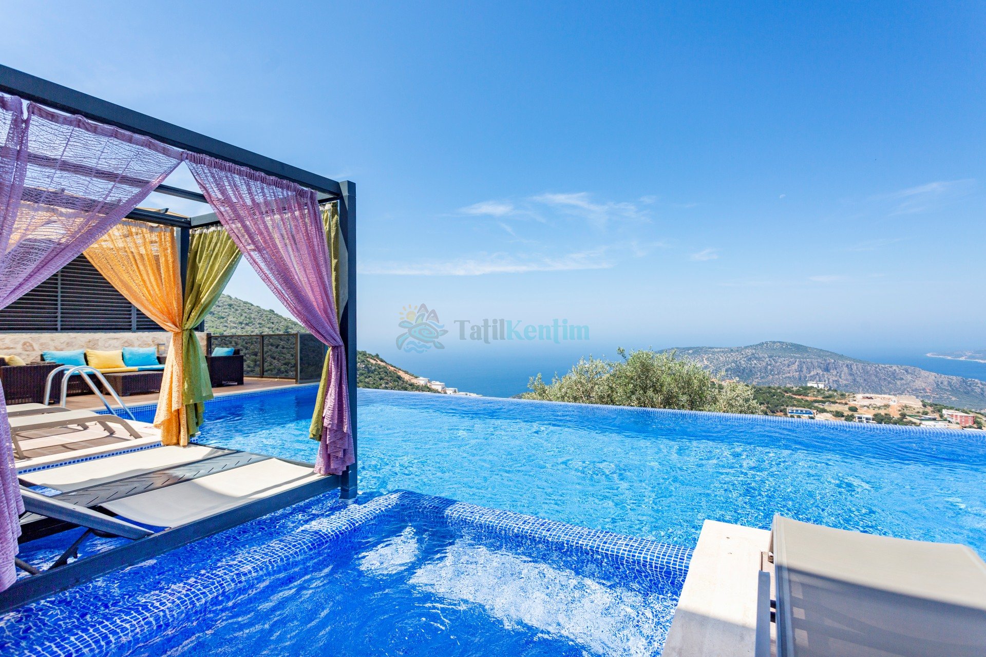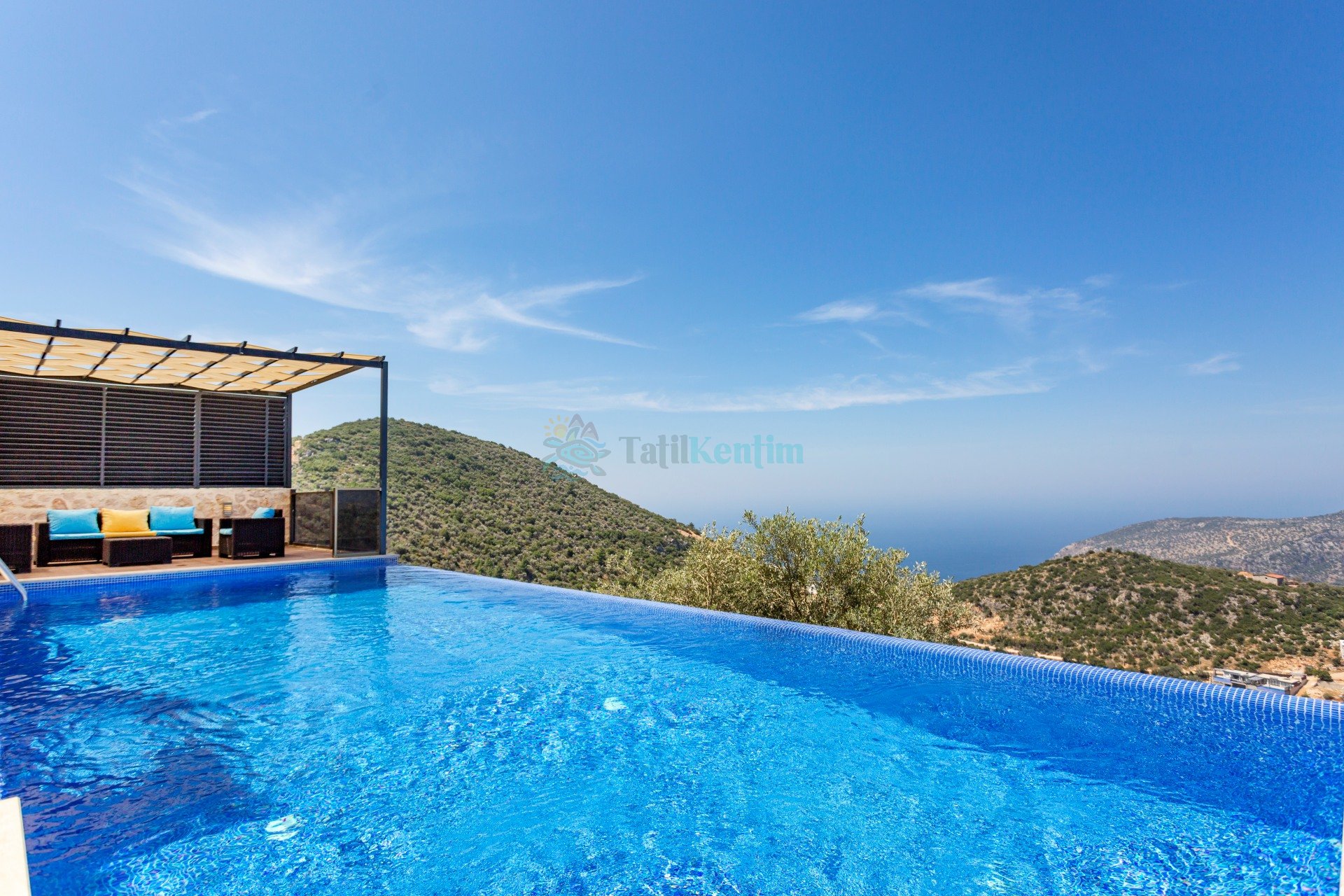 Kaş Kalkan Bölgesinde 10 Kişilik Konaklama Kapasitesine Sahip Sonsuzluk Havuzuna Sahip Kiralık Tatil Villası