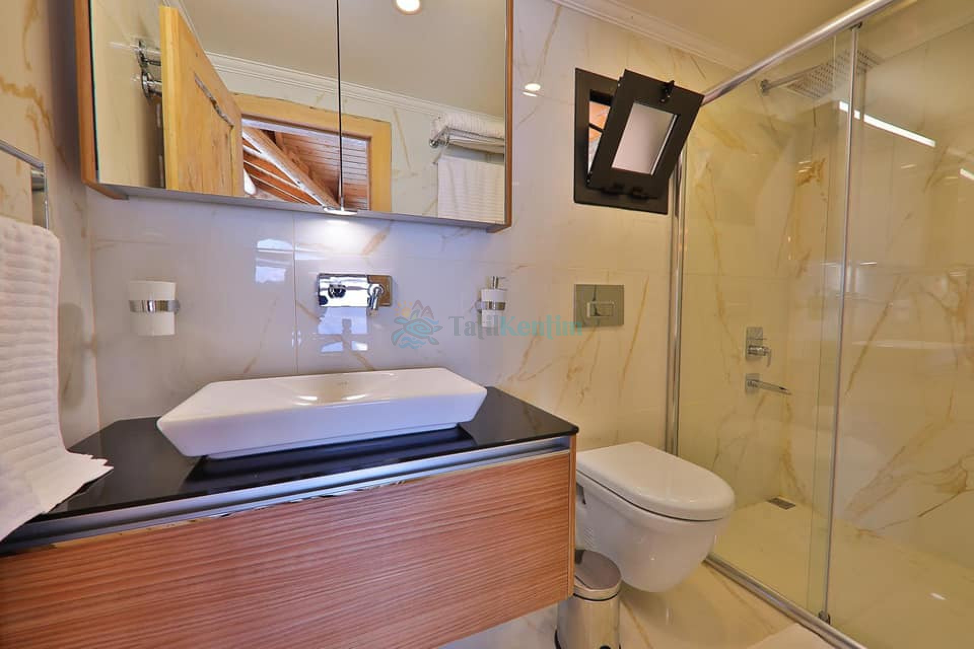 1 Adet çift kişilik yatak, komodin, elbise dolabı, jakuzi , klima, banyo ve tuvalet bulunmaktadır.