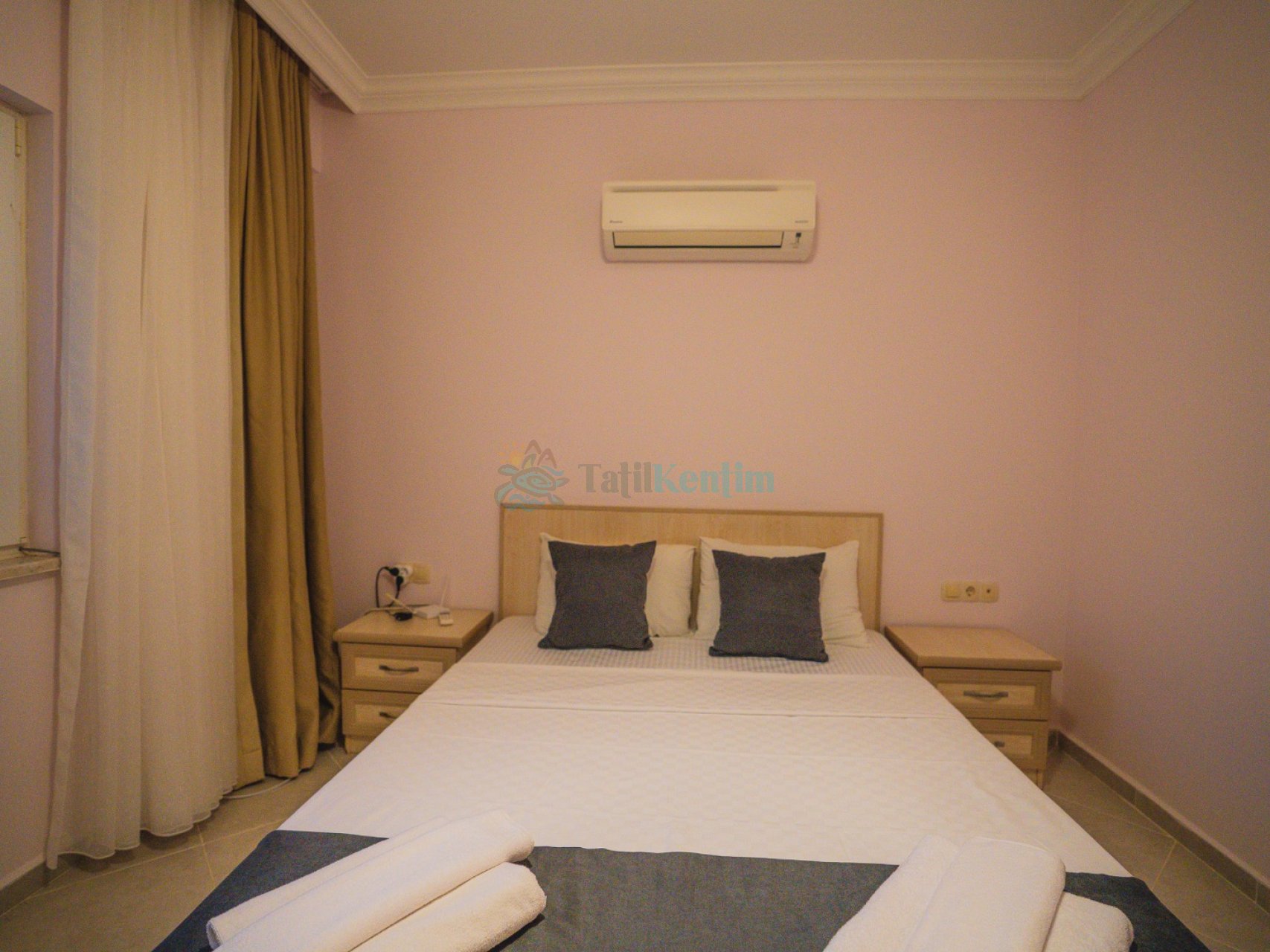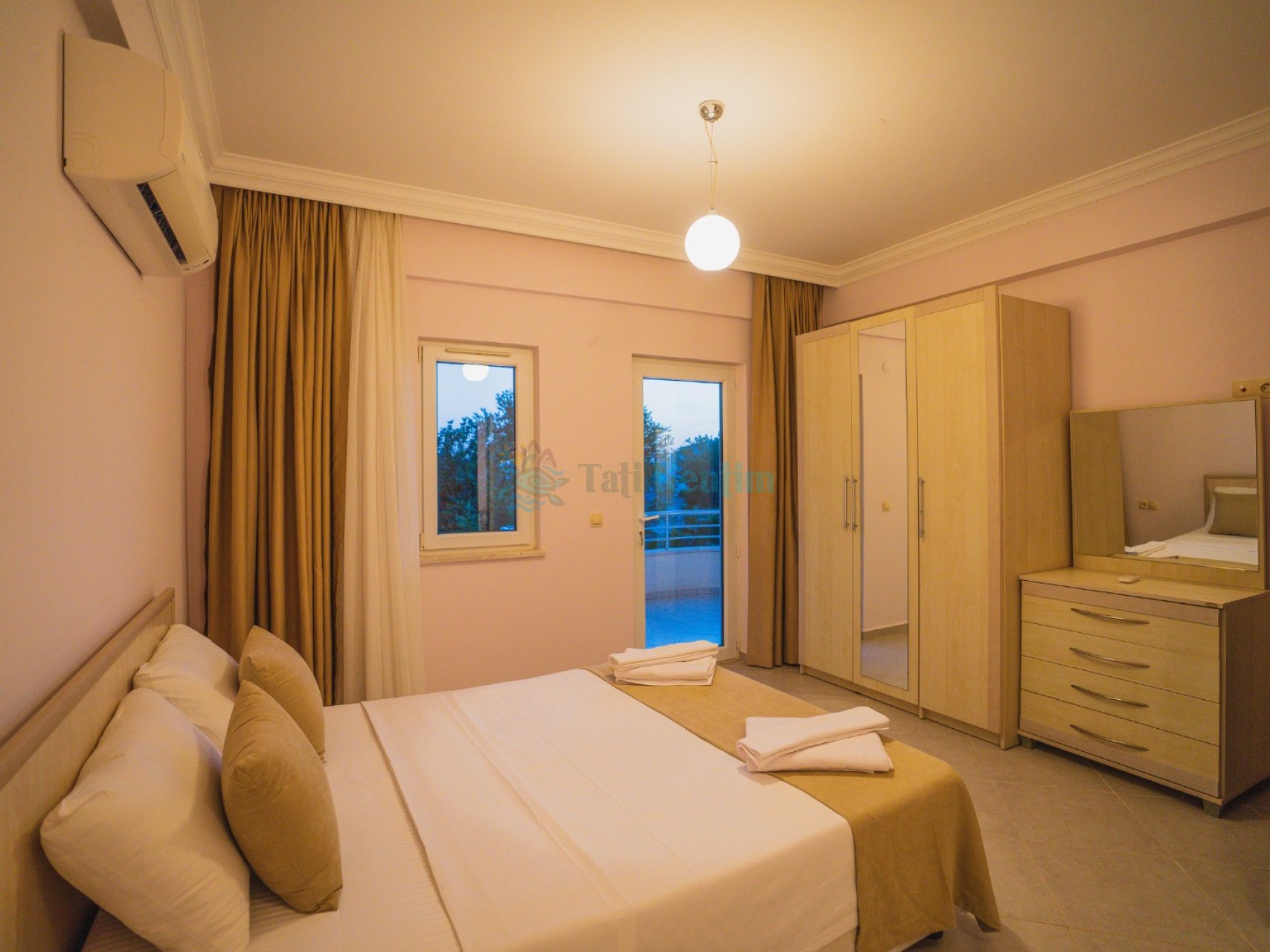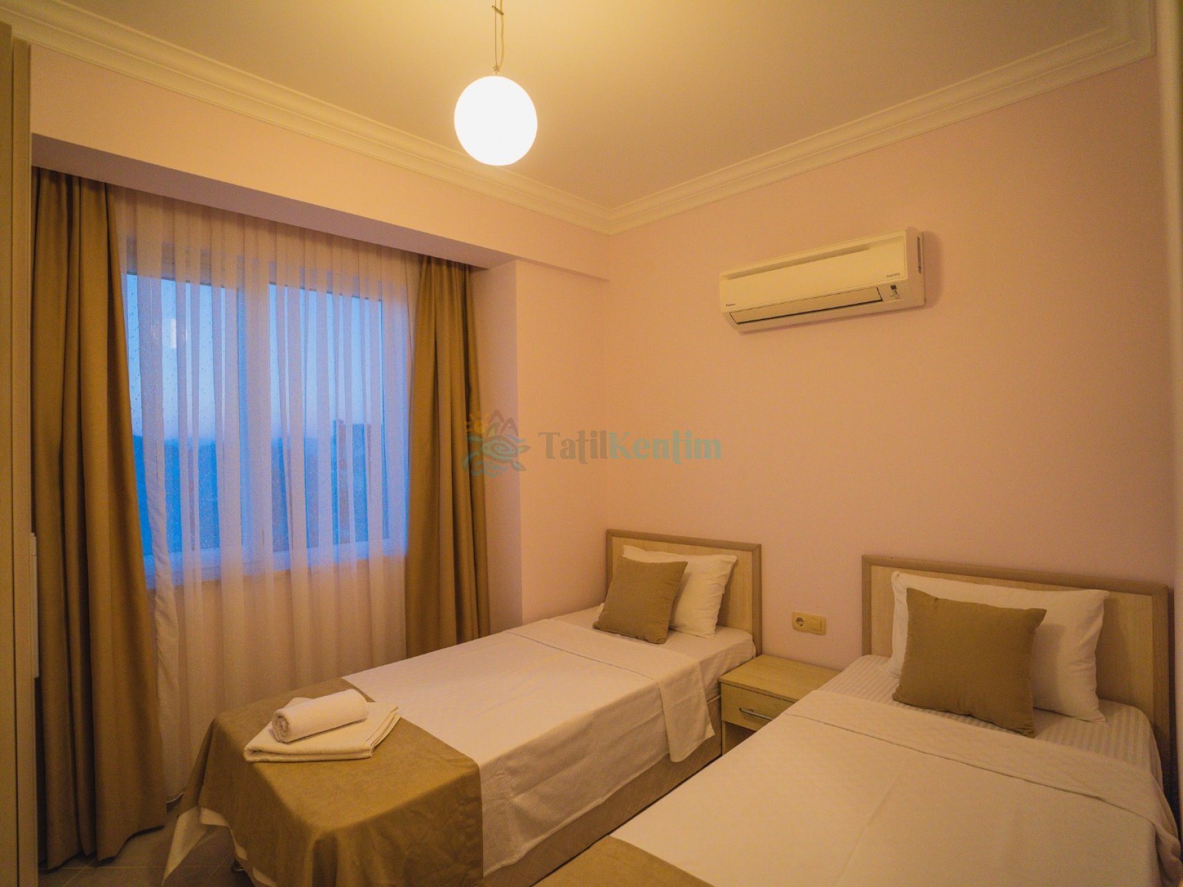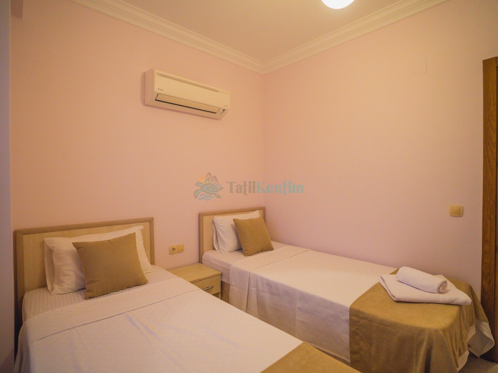 3.Yatak Odası: 2 adet tek kişilik yatak, elbise dolabı, makyaj masası, klima bulunmaktadır.