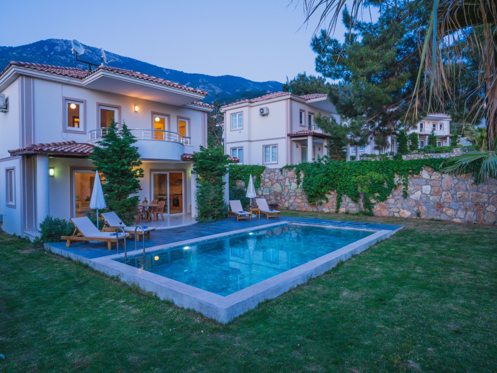 Villa Yiğit, Fethiye Ovacık Bölgesinde, Özel Havuzlu, Çift Jakuzili, Saunalı, Geniş Bahçeli, Isıtmalı Kapalı Havuzlu, 8 Kişilik Lüks Kiralık Tatil Villası