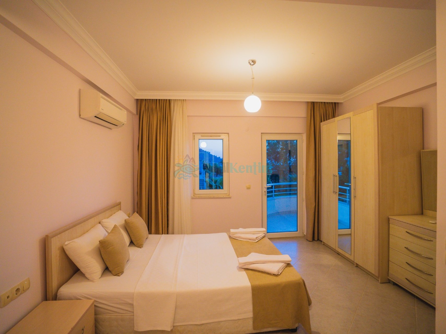 2.Yatak Odası: 1 adet çift kişilik yatak, elbise dolabı, makyaj masası, klima, banyo ve tuvalet bulunmaktadır.