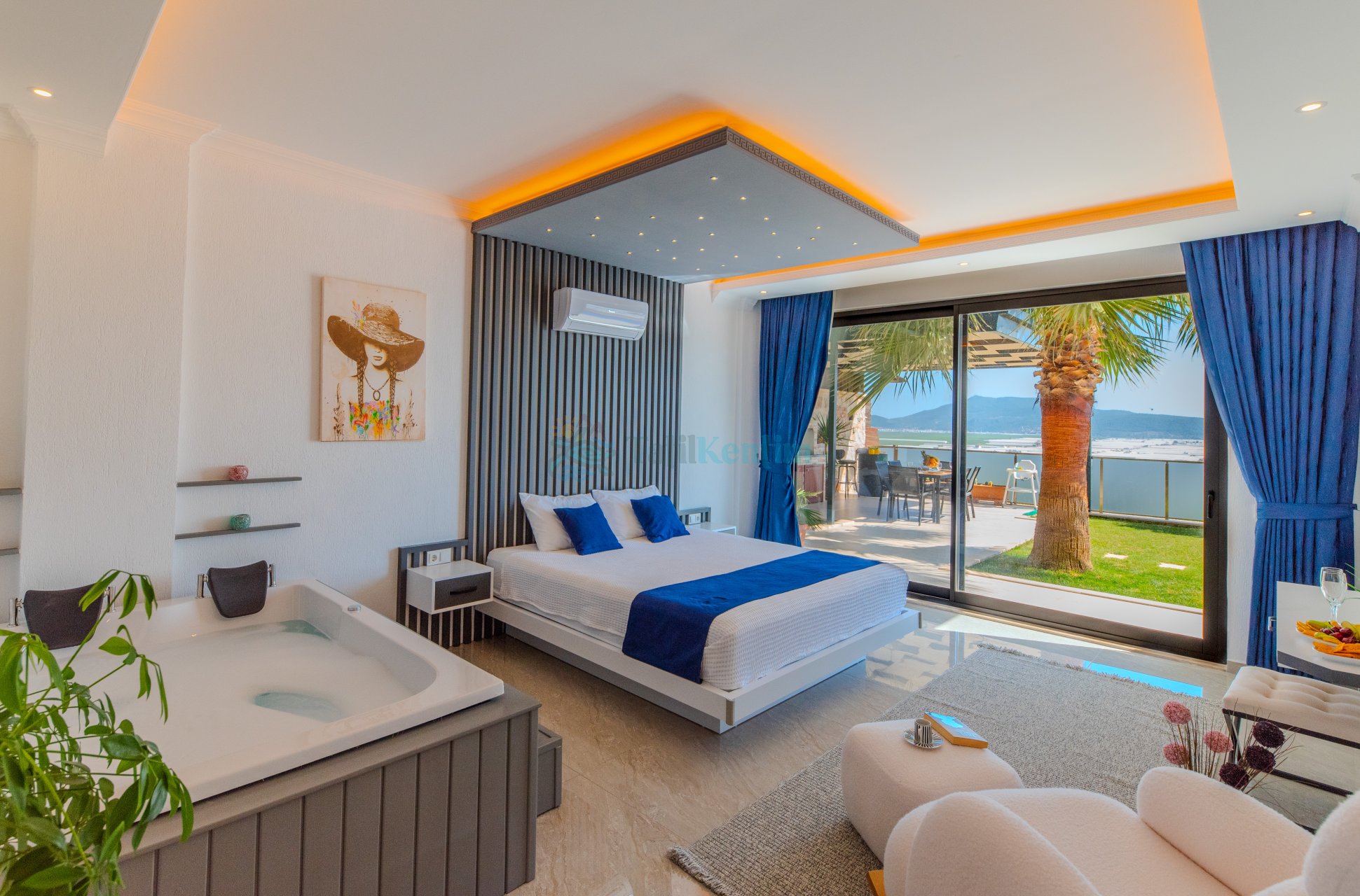 1 Adet çift kişilik yatak, komodin, jakuzi, elbise dolabı, jakuzi, televizyon, makyaj masası, klima, banyo ve tuvalet bulunmaktadır.