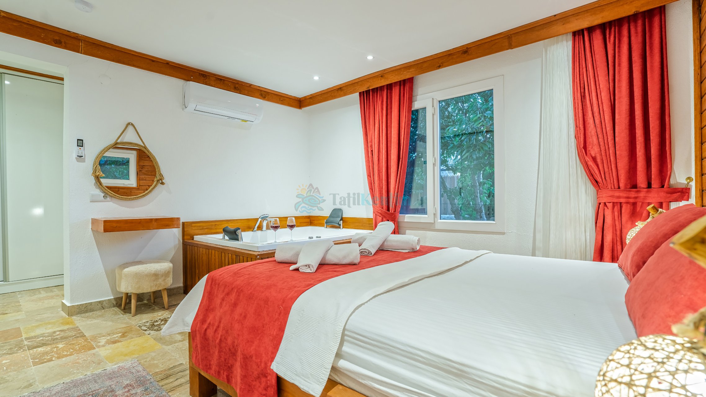 Villa Saraç Sarıbelen bölgesinde yer almaktadır. Balayı çiftler için ve Çekirdek Aileler için uygun tatil yerimiz. Doğayla iç içe, 4 Kişilik 2 yatak odası 2 banyo konaklama kapasitesine sahip. Villa popüler turistik alanlara yakın konumda bulunarak, tatilinizi daha verimli ve eğlenceli hale getirecek imkanlar sunmaktadır. Stresli şehir yaşamında uzaklaşarak huzur ve keyif anıları biriktirmek isteyenler için ideal bir tatil villasıdır. Kendi tatilini kendi yapmak isteyen ve özgürlüğüne düşkün misafirlerimiz için ideal tatil villamız. Sevdiklerinizle bir arada olmak isteyen ve kaliteli zaman geçirmek için bu villayı tercih edebilirsiniz, sizlere ve sevdiklerinize unutulmaz bir tatil deneyimi yaşatmak için sizleri bekliyor. Villa Saraç Kısmi korunaklı tasarımı modern ve şık dizaynı ile rahat ve konforlu bir tatil seçeneği sunmaktadır.