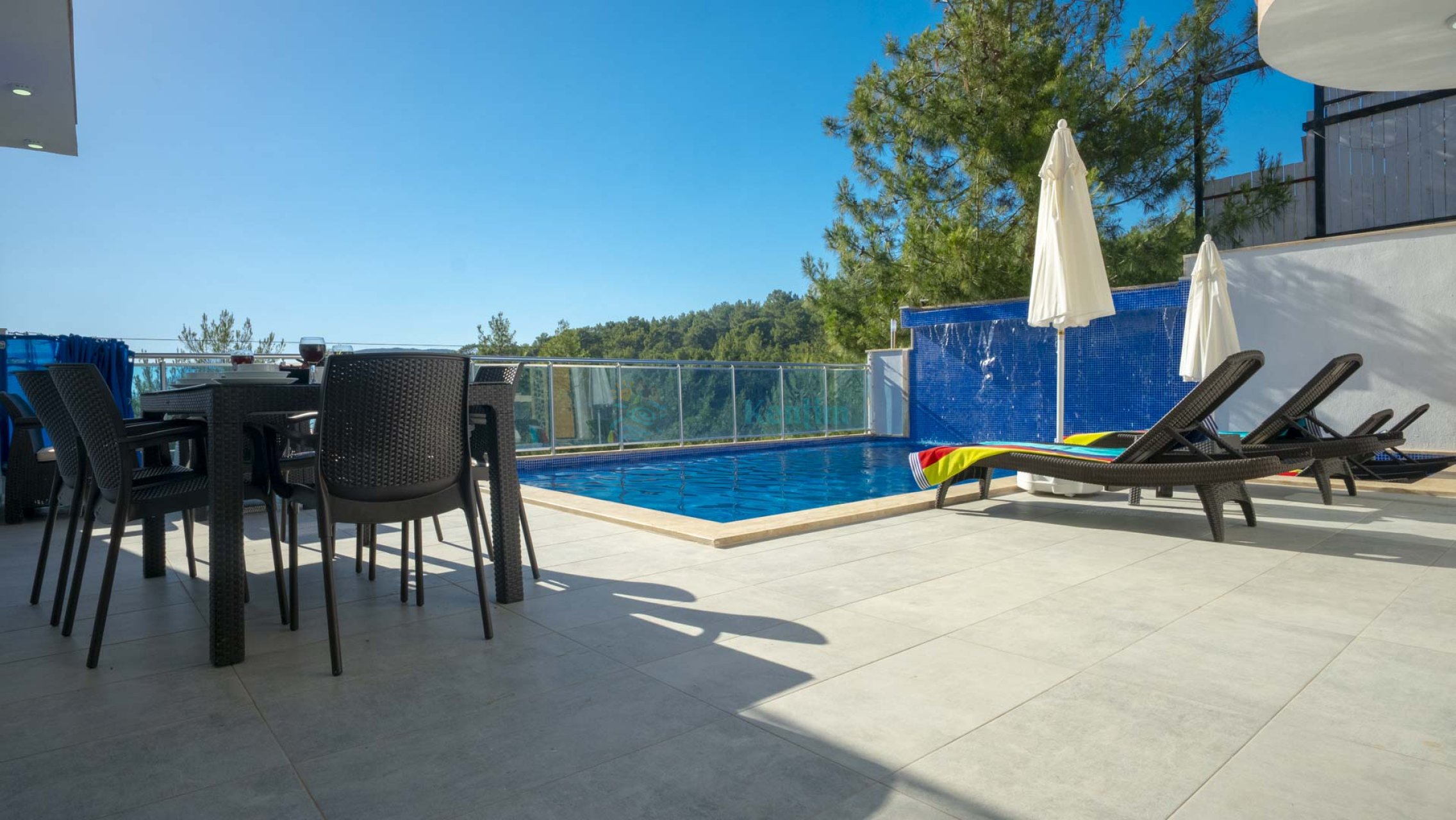 Villa Belinay, Deniz Manzaralı, Özel Havuzlu, Kısmi Korunaklı, 4 Kişilik Kiralık Tatil Villası.