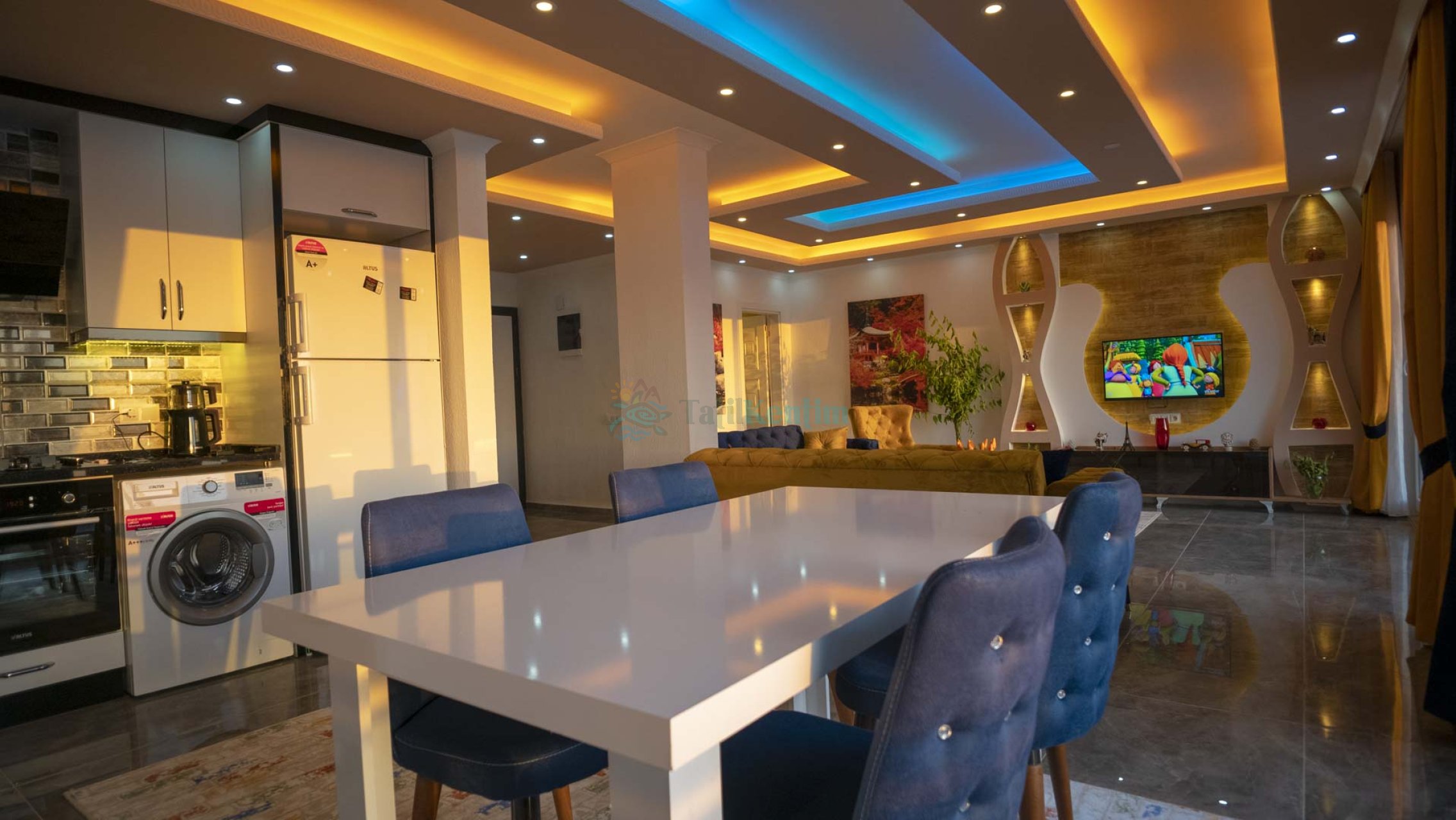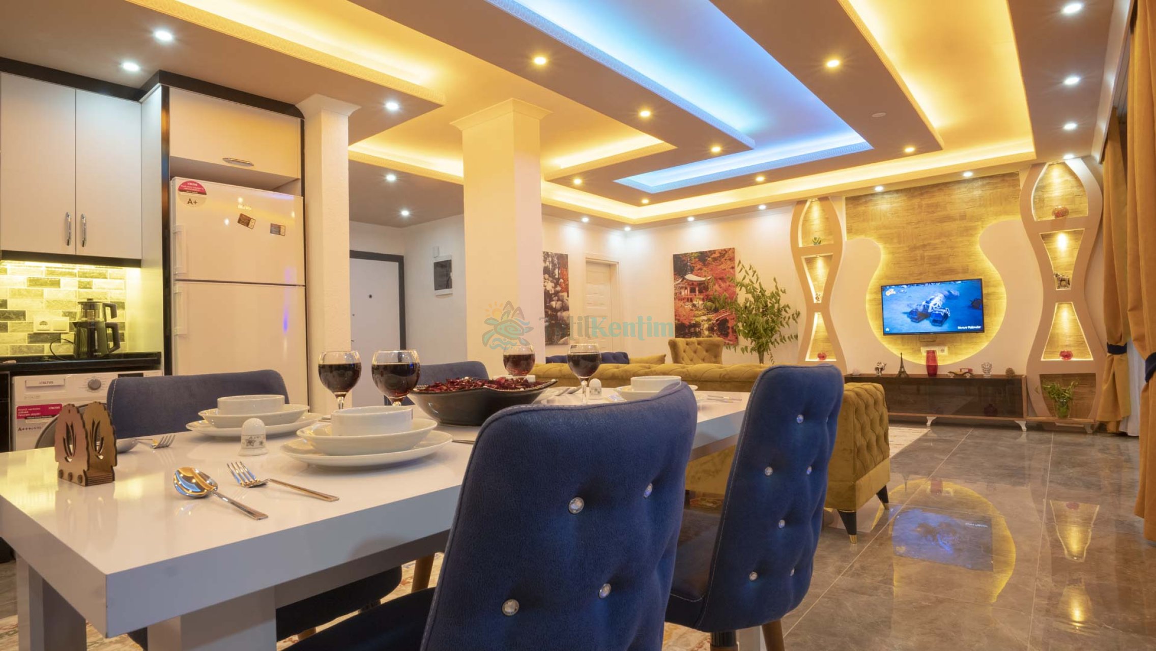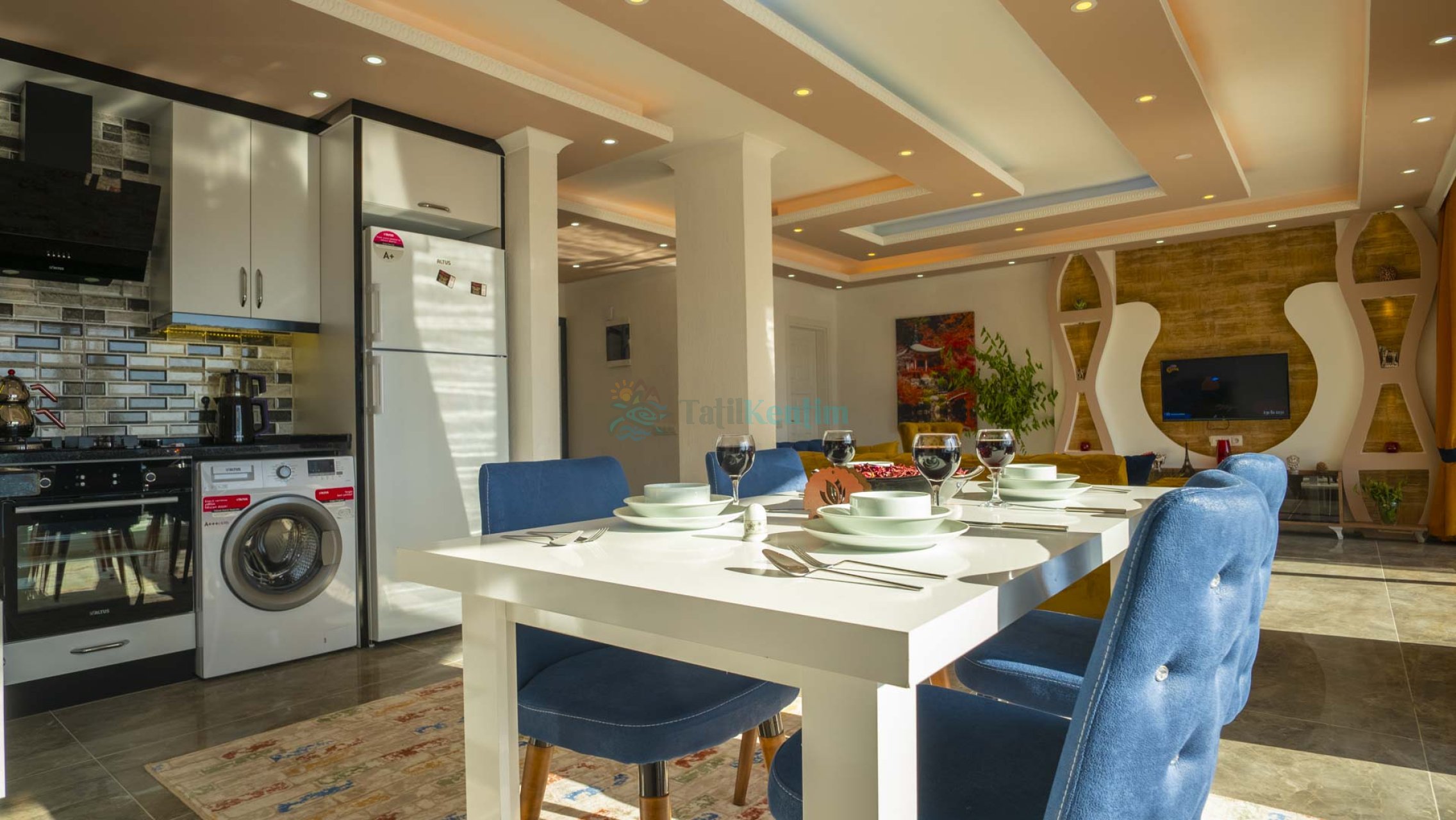 Amerikan mutfak içerisinde, buzdolabı, bulaşık makinası, çamaşır makinası, yemek masası, yemek takımı, ankastre fırın, mikrodalga fırın, tost makinası, ankastre ocak, çaydanlık, su ısıtıcısı, tava, tencere takımı ve gerekli olan tüm mutfak gereçleri yer almaktadır.