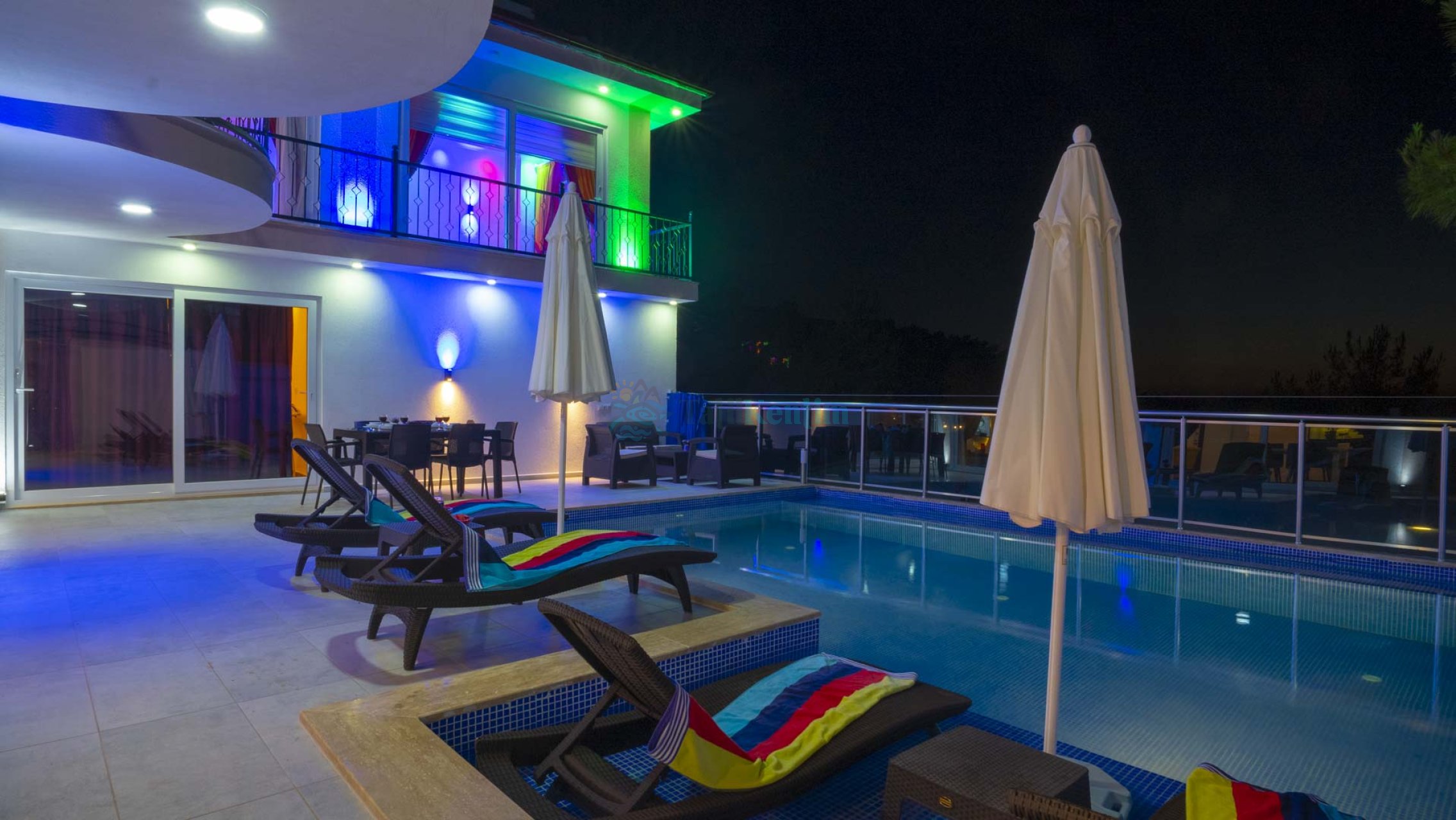 illa Saray, Antalya Kaş Kalkan'ın Akbel mevkiinde konumlanmış, panoramik deniz manzarasına hakim, 2 yatak odası ile 4 kişilik konaklama kapasitesine sahip, çekirdek ailelere ve balayı çiftlerine hitap eden kiralık tatil villasıdır. Villamızda bütün bir yılın stresini atabileceğiniz özel havuzu ve jakuzisi olup, geniş terasında tatilin tadını çıkarabileceğiniz barbeküsü bulunmaktadır. Villa Saray, korunaklı yapıda tasarlanmış, modern ve şık dizayn edilmiş, rahat ve konforlu bir tatil seçeneği sunmaktadır.