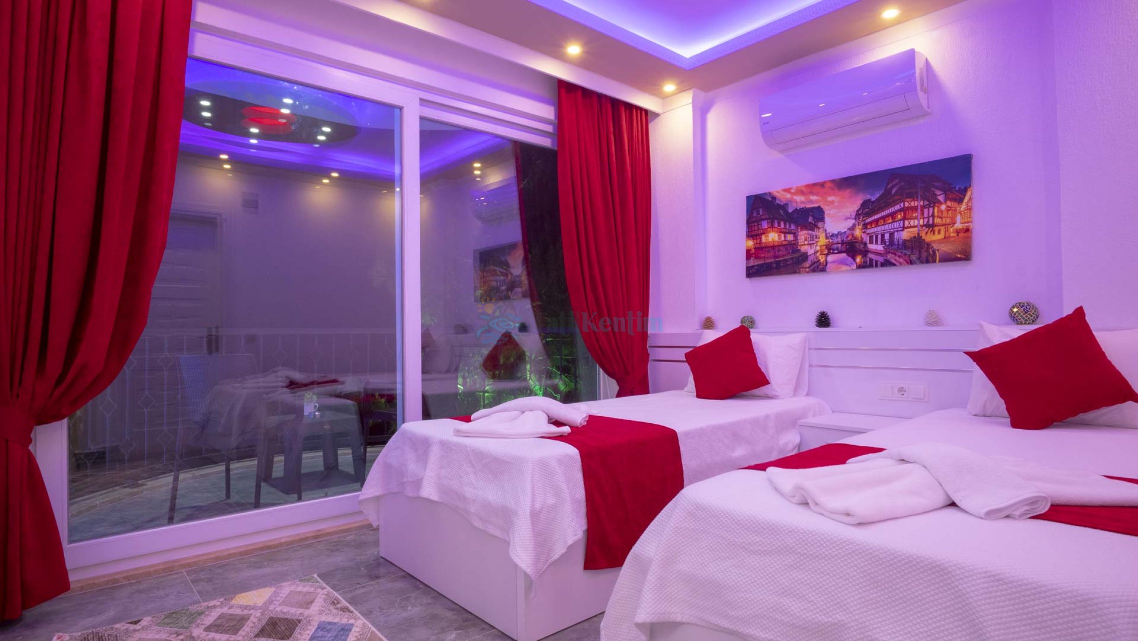 Yatak odası içerisinde, 2 adet tek kişilik yatak, klima, elbise dolabı, komodin, makyaj masası, banyo ve tuvalet yer almaktadır.