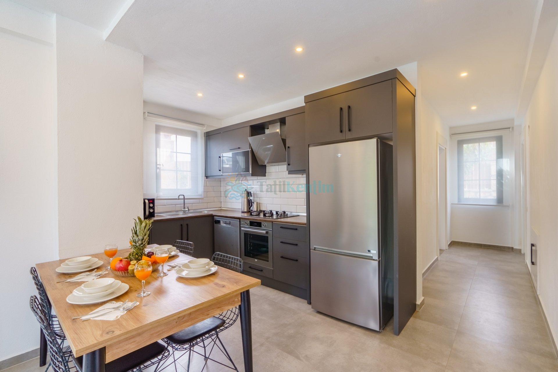 Mutfak : Villamızın geniş Amerikan mutfağı ile sizlere kendi evinizin mutfağı gibi hissettirecek. Ayrıca mutfakta klima, bulaşık makinası, buzdolabı, çamaşır makinası, mikrodalga fırın, su ısıtıcısı, fırın, 4'lü ocak seti ve 4 kişilik geniş yemek masası ile tava tencere vb. mutfak araç gereçlerini kullanma fırsatını sizlere sunuyoruz.