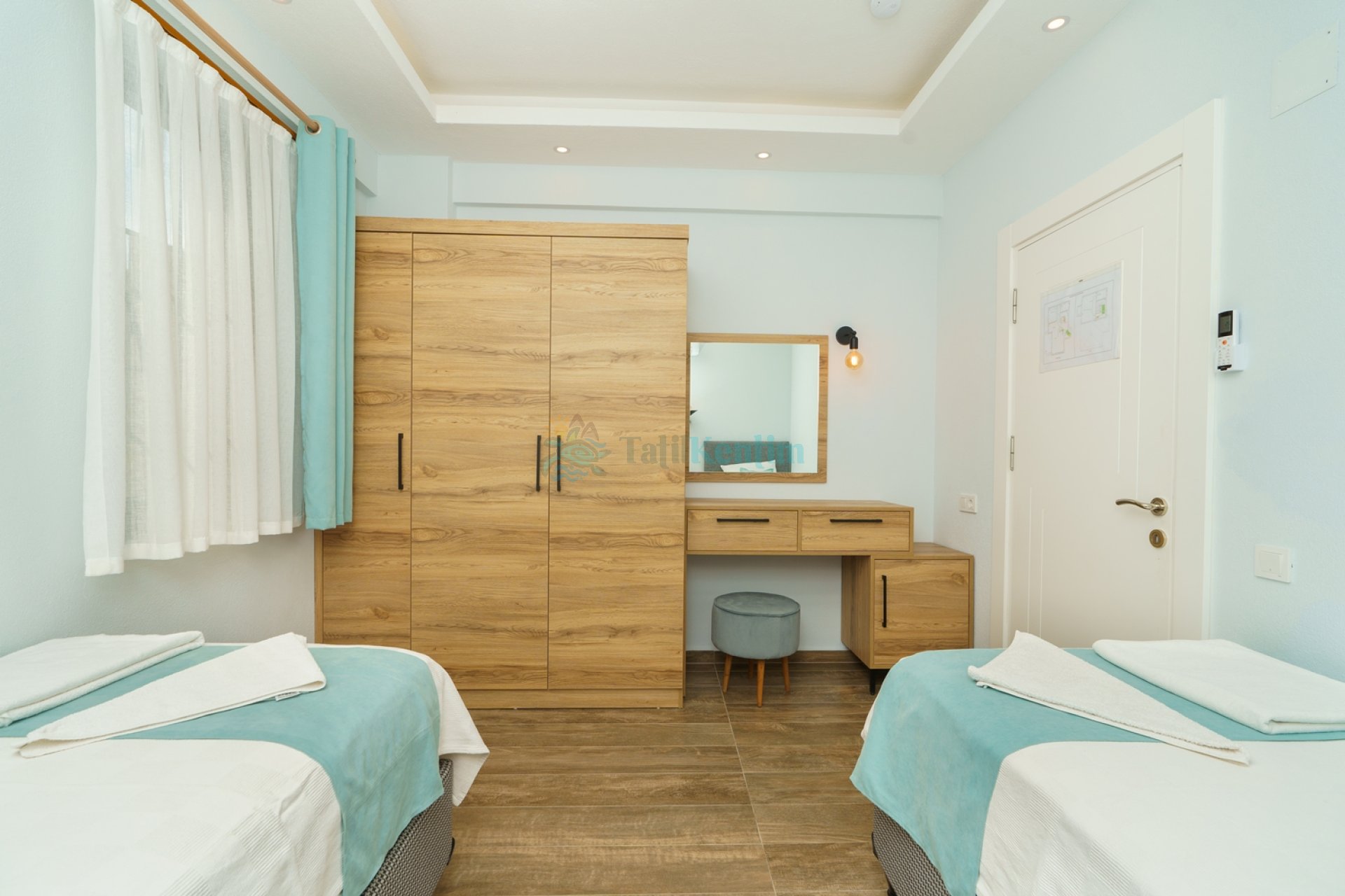 2. Yatak Odası : 2 adet tek kişilik yatak, klima, elbise dolabı, makyaj masası, komodin, banyo ve lavabo bulunmaktadır.