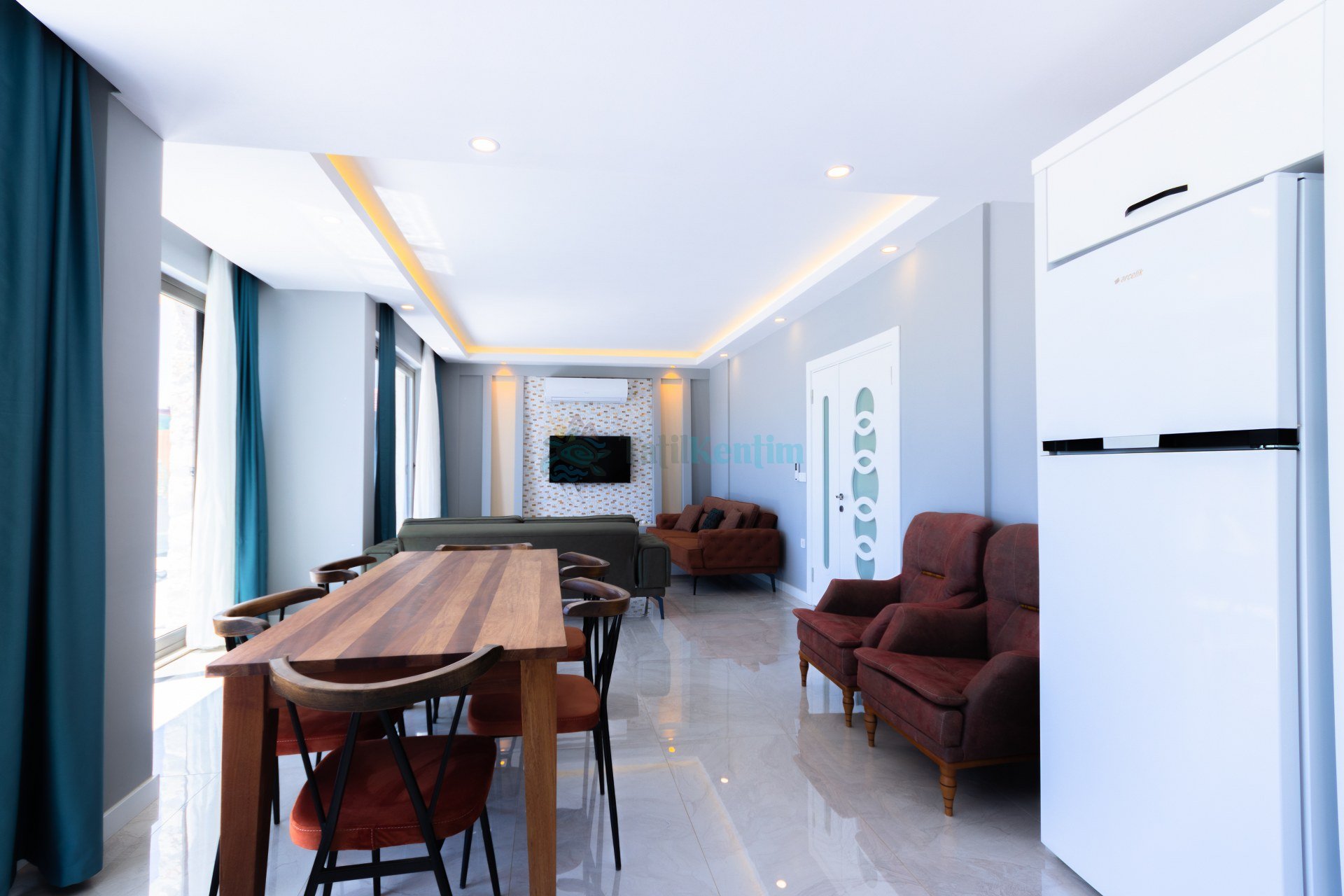 Villamızın salonu içerisinde, koltuk takımı, orta sehpa, TV, TV ünitesi, klima, uydu alıcısı yer almaktadır.