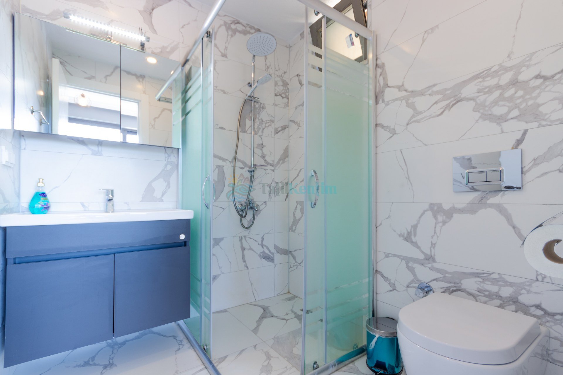 Villamızın bu odasında 1 adet çift kişilik yatak , klima , elbise dolabı, komodin, banyo ve tuvalet bulunmaktadır.
