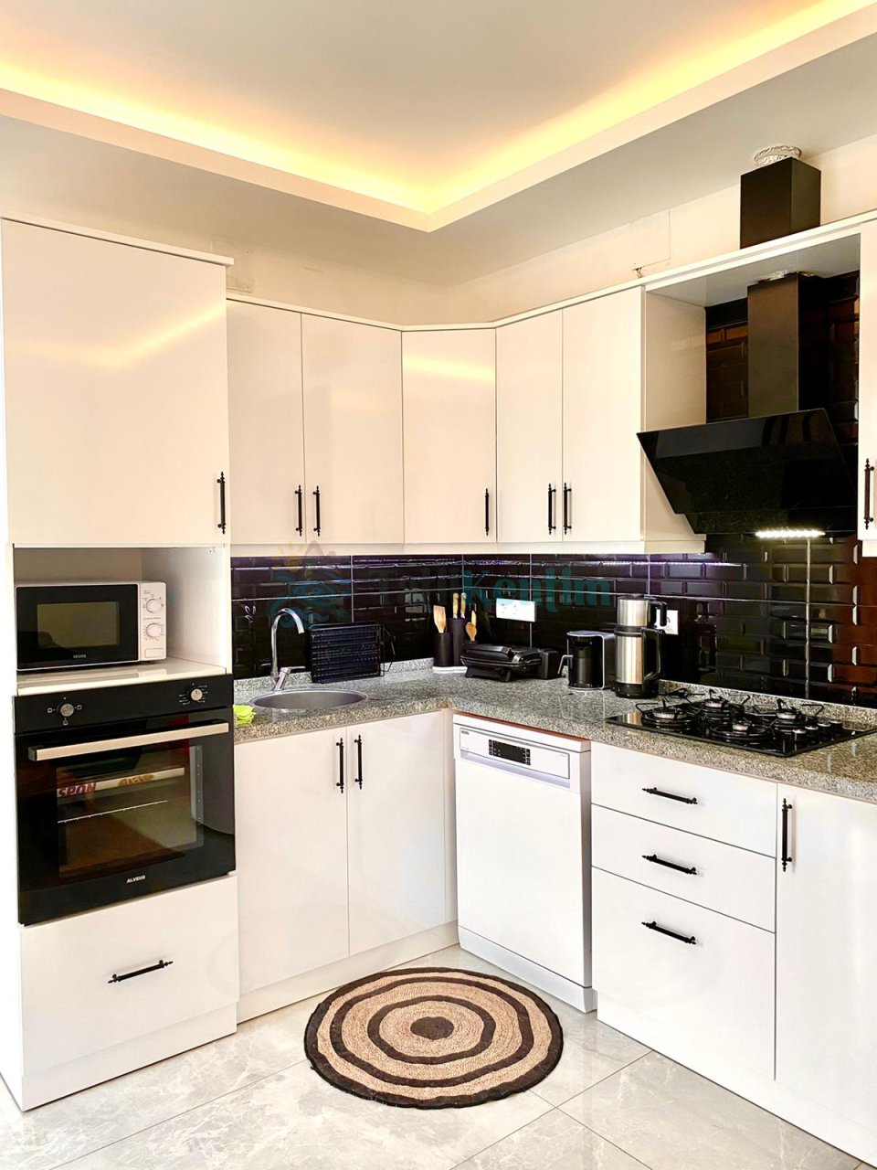 Mutfak : Modern mutfak içerisinde buzdolabı, mikrodalga fırın, bulaşık makinesi, 4’lü ocak, çaycı, fırın, yemek takımı, kaşık çatal takımı, tencere tava takımı ve bardaklar bulunmaktadır.