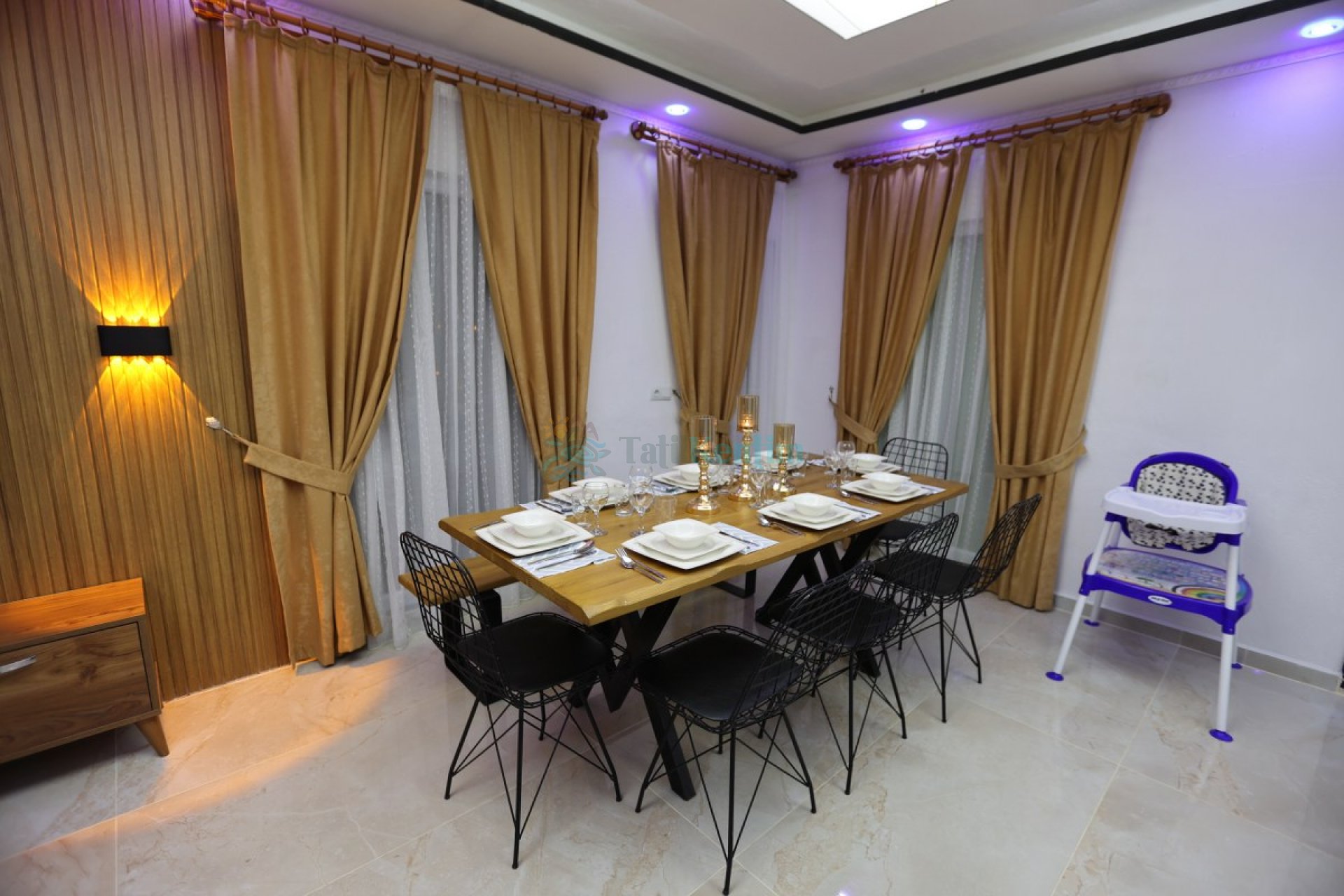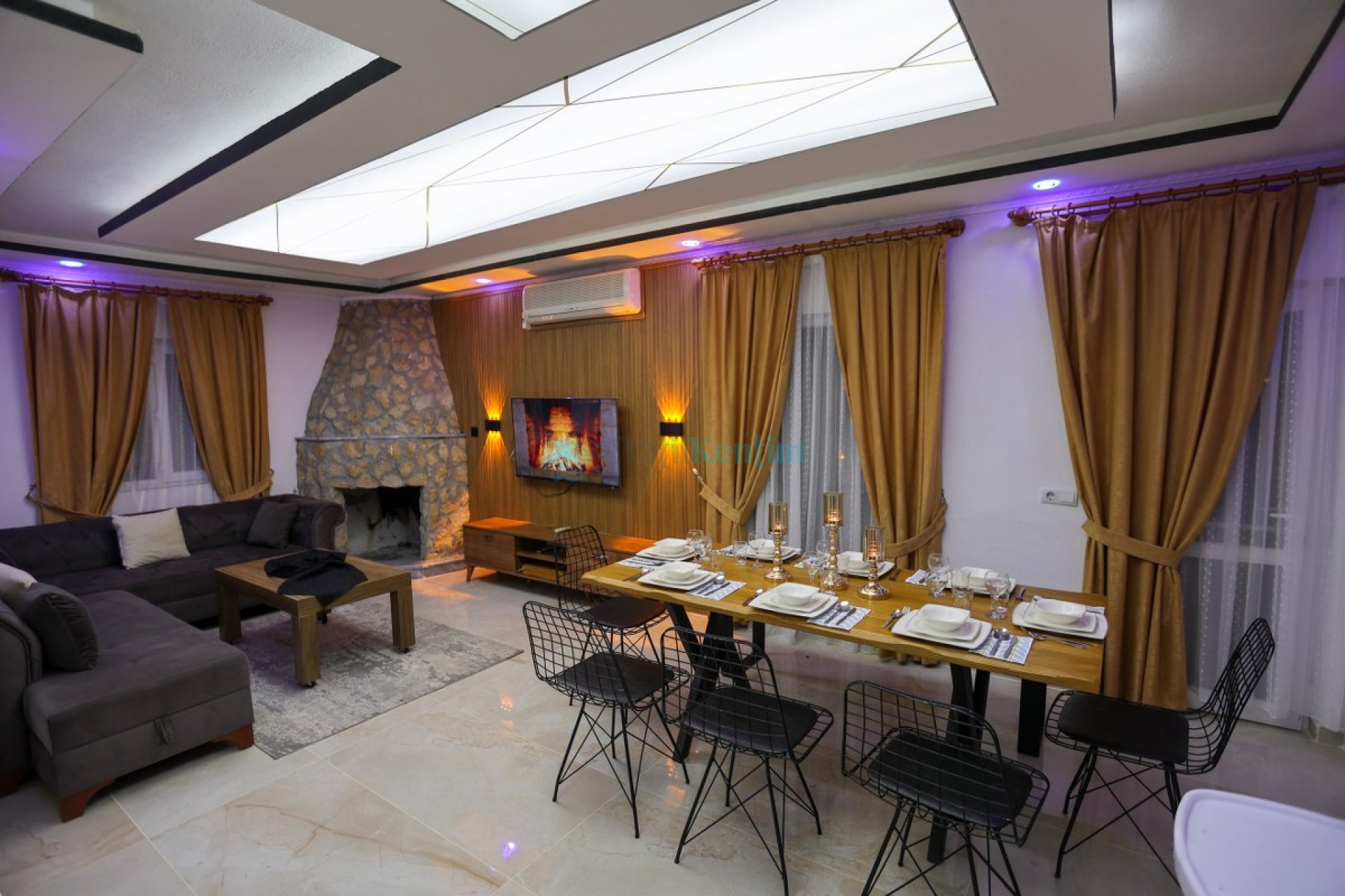 Salon: Koltuk takımı, orta sehpa, TV, TV ünitesi, klima, uydu alıcısı yer almaktadır.