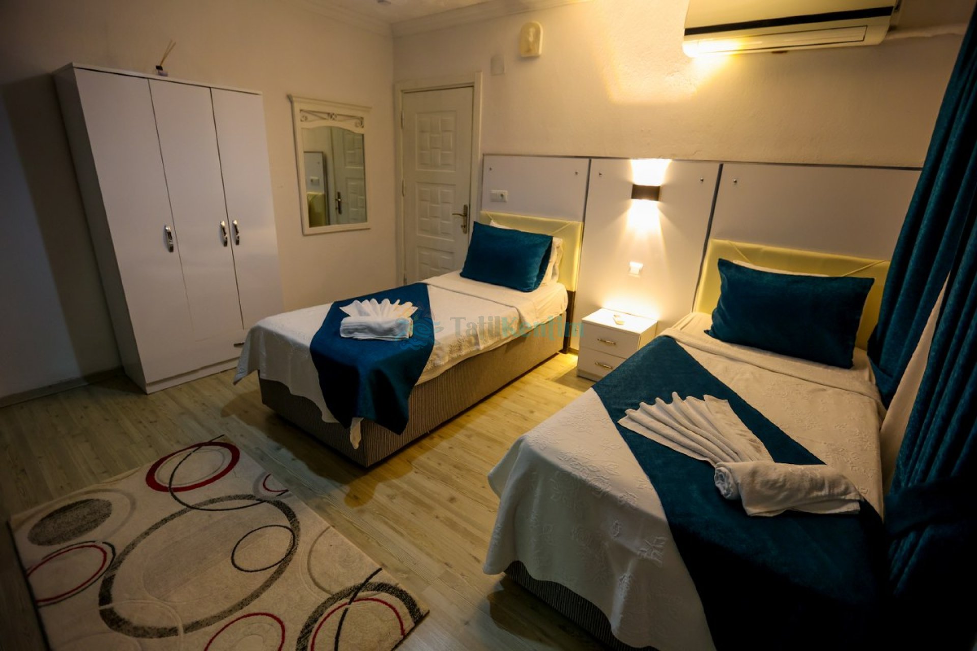 3.Yatak odası: Yatak odası içerisinde, 2 adet tek kişilik yatak, klima, elbise dolabı, komodin, makyaj masası, banyo ve tuvalet yer almaktadır.